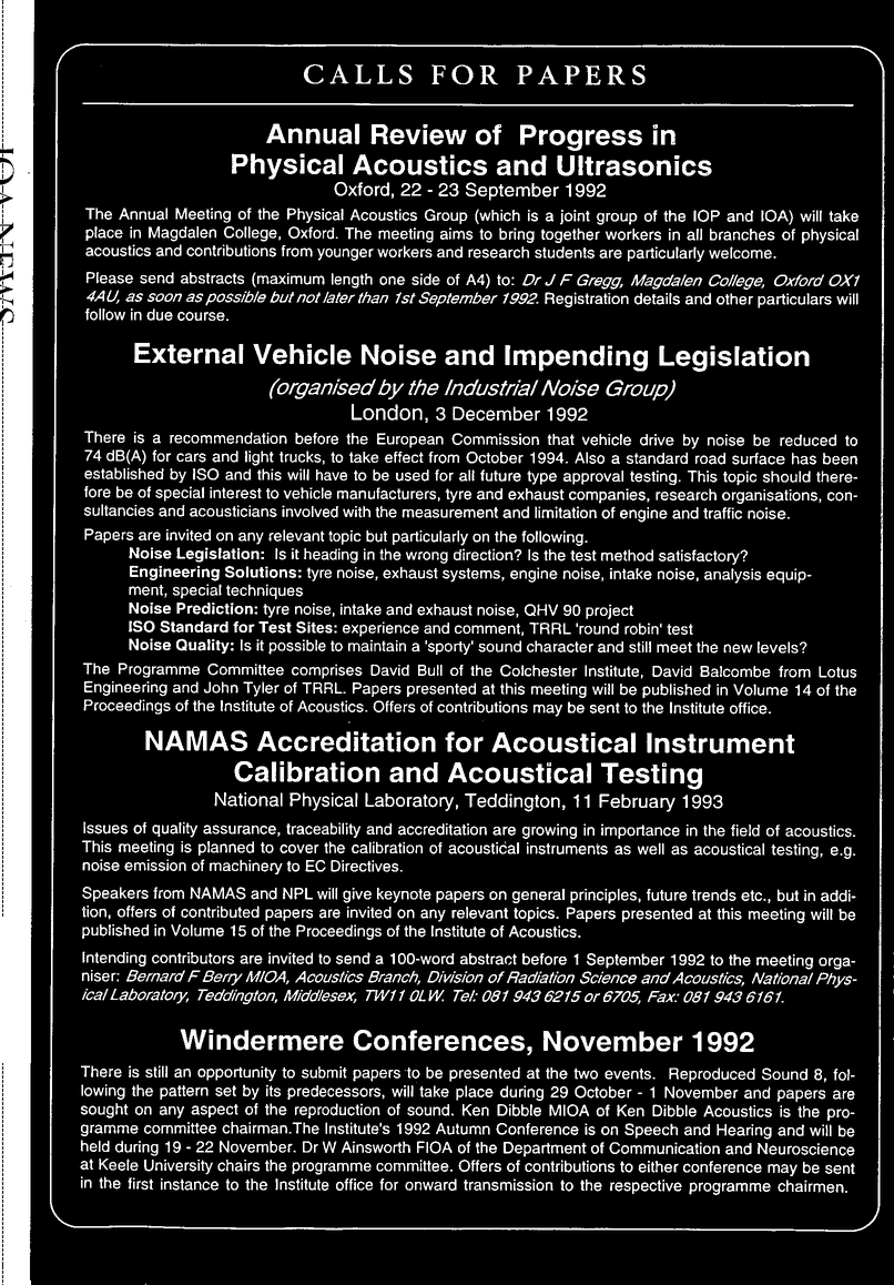 Published and produced by: The Institute of Acoustics Silbury Court, 406 Silbury Boulevard, Milton Keynes, Buckinghamshire MK9 2AF Tel: 0300 999 9675