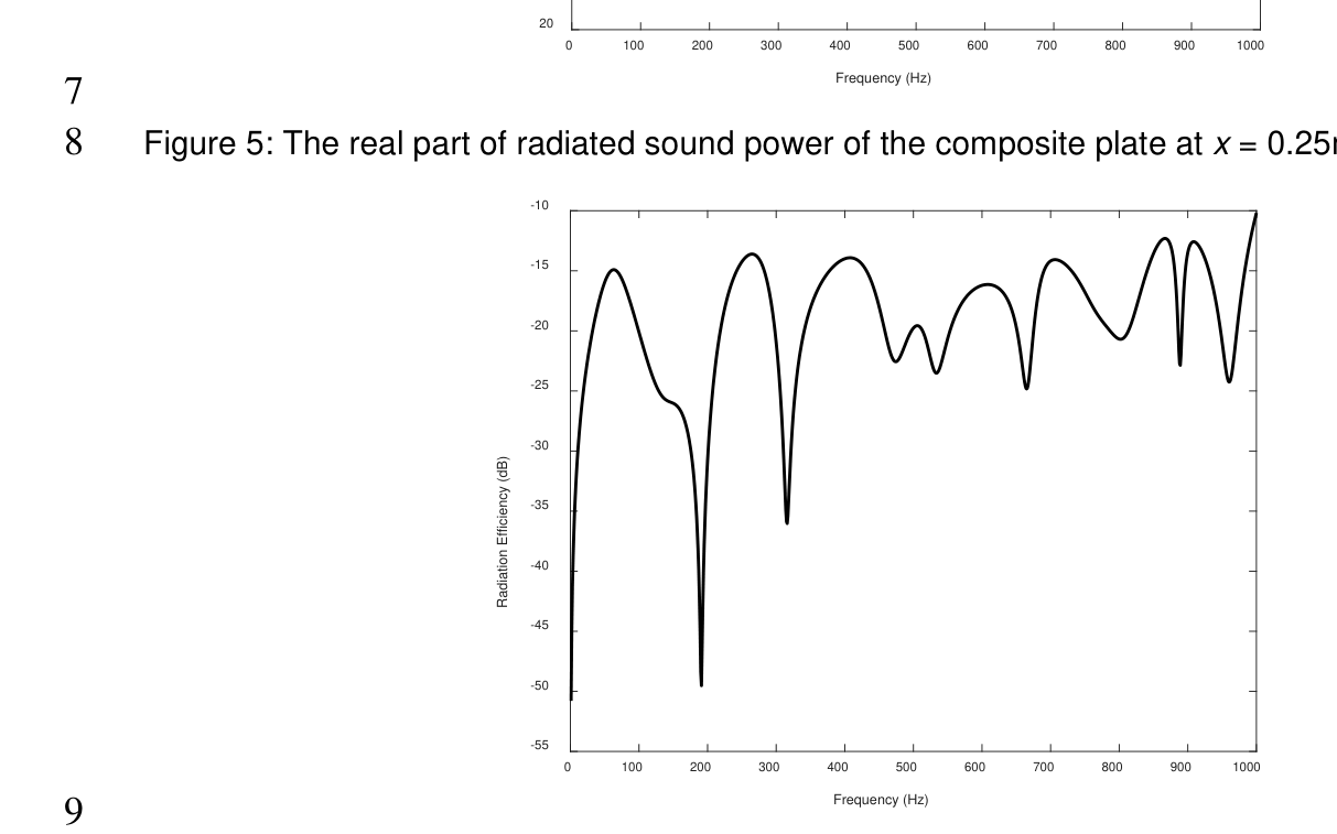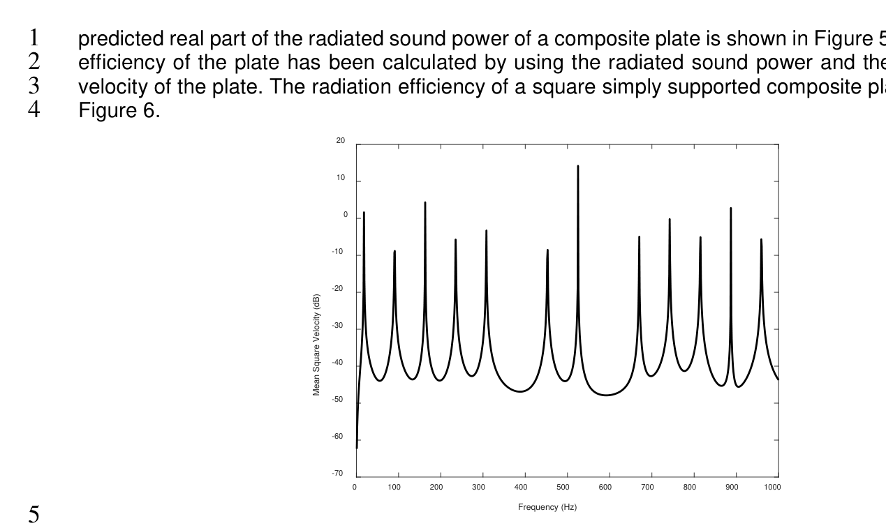 A A A Volume : 43 Part : 1 Proceedings of the Institute of Acoustics Sound radiation from composite plates 1 H Aygun London South Bank University, School of the Built Environment and Architecture, 103 2 Borough Rd, London, SE1 0AA, UK. aygunh@lsbu.ac.uk 3 4 1. Introduction 5 The vibrations of the structures that are made of isotropic and homogeneous materials has been an 6 important subject in the study of noise control, in the aeronautical industry, in the study of fluid-solid 7 interactions and in construction industry for double leaf partitions as building structures. When a sound 8 wave impinges on a structure, a part of acoustic energy is reflected back into source medium, a part is 9 dissipated in the structure and the rest of acoustic energy is transmitted through the structure into the 10 other medium. In building acoustics applications, the reflected acoustic energy builds up a reverberant 11 sound field in the source room that in turn vibrates the walls. The vibrations in the common walls radiate 12 sound directly into the receiver room. The vibrations in the other walls of the source room travel as 13 structure-borne noise to the all walls of the receiving room and radiate sound into the receiver room. 14 Complex structures may be modelled as systems that are made of individual plate like elements. The 15 theory of vibration of porous and non-porous structures is a well-known branch of engineering 16 mechanics. Previous works on classical theory of the plate [1-7] has investigated vibration of isotropic 17 and anisotropic plates for various boundary conditions. The vibration of porous plates can be described 18 using two coupled equations [8], which are based on Biot’s stress-strain relations [9, 10] and which 19 introduce two types of compressional waves (‘fast’ and ‘slow’) and a shear wave. They assumed that 20 the thickness of plate is smaller than the wavelength and that interaction can take place between the 21 slow waves and the bending waves in the plate. They also ignored the amplitude of the fast wave. 22 Galerkin’s variational techniques were applied to porous plates [11-13], taking into account a classical 23 set of trial functions obtained from the linear combination of trigonometric and hyperbolic functions for 24 various boundary conditions. The effects of fluid loading on the vibration of rectangular porous plates 25 and on their radiated sound power was investigated by including an extra term into the equations for 26 the porous plate vibration, corresponding to the additional external force acting on the plate [14]. 27 Previous study on low frequency vibration of porous plates [15] has demonstrated the existence of low 28 frequency absorption coefficient resonance in configurations consisting of clamped poroelastic plates 29 with an air cavity between the plates and a rigid termination. An analytical model that takes into account 30 the effect of perforations and the effect of the flexural vibrations in the plates has been formulated and 31 used to calculate the insertion loss in the absence, and in the presence of air flow [16, 17]. 32 Important progress in predicting acoustic radiation from baffled structures including plates and beams 33 has been made in the last three decades. Many previous studies have focused on the calculation of the 34 radiation efficiency of these structures [18-21] and the radiation of sound from a baffled, rectangular 35 plate with edges elastically restrained against deflection and rotation [22-23]. The models used for the 36 radiation efficiency of plate-like radiators, ranged from very simple ones based on modal average 37 expressions to refined calculations of the radiation impedance matrix with cross-modal coupling have 38 been evaluated, and developed a new approach based on Taylor’s expansion of the Green’s function 39 [24]. Variational method that is based on the Rayleight-Ritz model, can be used to determine the 40 radiation of sound from the plates that are immersed either in a light fluid or in a heavy fluid by reducing 41 the quadruple integral into a double integral using a specific change of variable and by integrating the 42 double integral with a numerical method using Gaussian quadrature formulae [25-28]. 43 Recently, Aygun and McCann [29] has studied composite recycled glass bead panels in order to assess 44 their suitability for civil engineering application, especially in noisy urban environments, either as 45 structural panel components that also offer acoustic insulation or as dedicated noise barriers for outdoor 46 applications. 47 The aim of this paper is to investigate the vibrational and acoustical parameters of thin composite plates 48 that are made of fibreglass, which are used for applications ranging from aerospace and automotive to 49 construction industry. To author’s best knowledge, vibroacoustical properties of composite plate have 50 been reported in this paper for first time. The deflection of composite plate has been predicted at 51 difference locations on the plate using the classical theory of the vibrating plate for simply supported 52 and clamped boundary conditions. Computational simulations have been carried out to determine 53 deformations of the plate in 3D for different frequency ranges for simply supported and clamped 54 Vol. 43. Pt. 1. 2021 Proceedings of the Institute of Acoustics boundary conditions. Here, vibroacoustic indicators including the radiation efficiency, the mean square 1 velocity, and the radiated sound power have been computed for a square composite plate. Furthermore, 2 the radiation impedance matrix has been predicted for simply supported boundary condition by using 3 equations for eigenfunctions and Green’s function without interpolation, convergence and without 4 reducing the quadruple integral into a double integral. 5 2. Theory of plate vibration 6 Wave motion in solid structures stores energy in shear as well as in compression. Many different 