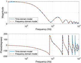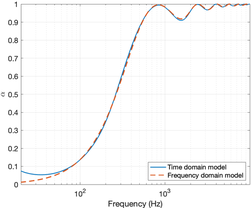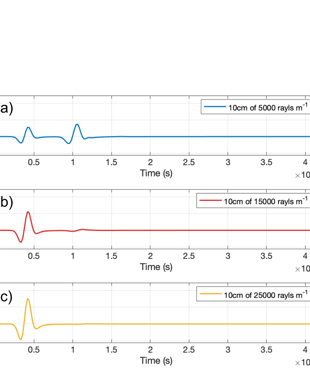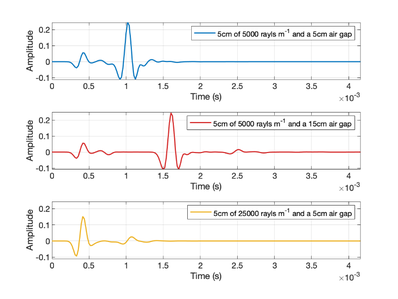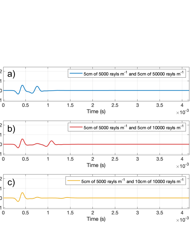 A A A Volume : 43 Part : 1 Proceedings of the Institute of Acoustics A TIME DOMAIN VERSION OF THE TRANSFER MATRIX METHOD K Steele University of Salford, Salford, UK JA Hargreaves University of Salford, Salford, UK 1 INTRODUCTION Porous absorbers are ubiquitous in acoustics applications. They are, for example, widely used to control reverberation in rooms and cavities, or to provide attenuation in ducts 1 . Because of this, they have attracted significant research effort to better understand and model their properties, typically informed by the material’s micro-structure. However, the complexity of these models, and the fact that many of the parameters they require are not readily measurable, means that simpler empirically- fitted models are still widely used in Room Acoustics applications. Probably the best known of these is the 1970 model by Delany and Bazley 2 . This is applicable for fibrous materials and estimates acoustic properties based solely on the material’s flow resistivity, which can be readily measured 1 . Like the vast majority of porous material models, this is a frequency- domain model that assumes all quantities are time-harmonic with some frequency. It returns the characteristic impedance and characteristic wavenumber of the material as an equivalent fluid, both of which are complex-valued functions of frequency. To obtain the surface impedance or reflection coefficient for a particular configuration of material layers, the Transfer Matrix Method (TMM) is used. This is also formulated in the frequency-domain based on a time- harmonic assumption 1 . This paper develops a time-domain version of this model, i.e., one that is free from the time-harmonic assumption and that can model the response of the material to transient acoustic signals. A key motivation for this is the increasing popularity of time-domain numerical models of Room Acoustics, such as Finite Difference Time Domain (FDTD) 3 . These algorithms find application in auralisation of spaces but require that material boundary conditions can also be implemented in the time-domain, usually as digital filters. Typically, this has been achieved by fitting a filter to the surface impedance 3 , or reflection coefficient, of the front face of the configuration of porous material. This is the simplest approach, but simple models can struggle with some common configurations. For example, Mondet et al showed that a simple model can reduce uncertainty in measurement 4 , but saw that it struggled to capture the interference pattern that occurs in fairly open materials on a rigid backing. The approach herein overcomes this issue because it uses filters to represent individual processes – propagation through a material layer and reflections at interface – rather than attempt to the final surface impedance, which includes the cumulative effect of several processes. This produces a network of filters, but it is anticipated that each filter can be simpler and lower order without impacting accuracy. The filters fitted are low order Infinite Impulse Response (IIR) filters, which can produce a long impulse response – as is required for strong frequency dependence – with minimal computation and storage cost. This is also a key advantage of filter fitting over inverse fast Fourier transform of frequency domain results. The latter would produce Finite Impulse Response (FIR) filters, which have much higher computation and storage costs for the same frequency domain behaviour. Other time-domain models of acoustic properties of porous materials exist but have been based on different mathematical models of the material. Many of these are focussed on modifying the differential equations that are then simulated numerically using an FDTD scheme. Zhao et al. adopted a similar approach to ours in 2018, using IIR filters to represent bulk modulus and effective density 5 , but their filters are fitted to measurement rather than being derived from a material model. The 2007 method of Wilson et al begins from a time-domain material model based on relaxation processes 6 , Vol. 43. Pt. 1. 2021 Proceedings of the Institute of Acoustics and then discretised these to yield an FIR filter that can be used within an FDTD model of the material. A similar numerical strategy was used by Umnova and Turo in 2009 to implement their time-domain model 7 . Usually in these papers the aim is to produce an FDTD scheme in 2D or 3D where the user can specify how the material properties vary versus position. The method presented here also uses FDTD to model propagation within the material but does so in a simpler way mimicking the TMM. Herein, the aim is to replace the TMM with a network of filters, so the FDTD blocks are 1D ‘pipes’ that only support unidirectional propagation. The most similar approach to ours is probably the 2005 method by Fellah et al for double-layered porous media 8 , which uses transmission and reflectance filters at interfaces between layers with different properties, as is developed herein. Our method differs to that of Fellah et al , however, because it simulates layers in a more modular fashion and is based on Delany and Bazley model 2 , due to its popularity in Room Acoustics. However, this model must be modified before it can be transferred to the time domain. The first of these modifications was by Miki 9 in 1990, who repeated the fit to experimental data while ensuring that the models are physically realisable. But in 2014, Dragna and Blanc-Benon 10 showed that even Miki’s variant is not passive for a rigidly-backed layer, prompting them to propose further modifications. It is their ‘Modified Miki model’ that is the basis of the method presented herein. Section 2 presents the detail of the model and its implementation, including the filter network (section 2.1), the material model and it’s approximation by a digital filter (section 2.2) and incorporation into a 1D unidirectional FDTD model (section 2.3). Section 3 p