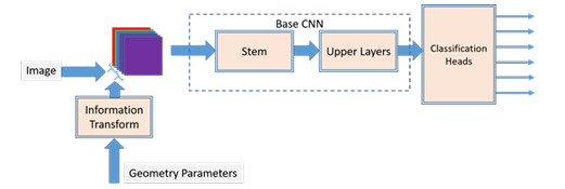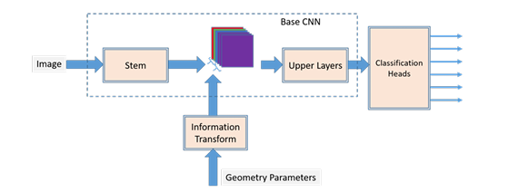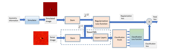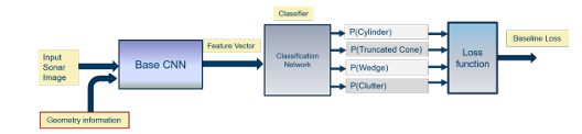 A A A Volume : 47 Part : 1 Utilizing imaging geometry meta-data in classification of synthetic aperture sonar images with deep learning Narada Warakagoda and Øivind Midtgaard Citation: Proc. Mtgs. Acoust. 47, 070011 (2022); doi: 10.1121/2.0001607 View online: https://doi.org/10.1121/2.0001607 View Table of Contents: https://asa.scitation.org/toc/pma/47/1 Published by the Acoustical Society of America ARTICLES YOU MAY BE INTERESTED IN Improving the realistic rendering of artificial sonar images using Cycle Generative Adversarial Networks Proceedings of Meetings on Acoustics 47, 070010 (2022); https://doi.org/10.1121/2.0001598 Three inventions to clean ship hulls, decontaminate hospital floors, and treat wounds, using air, sound and water Proceedings of Meetings on Acoustics 47, 032001 (2022); https://doi.org/10.1121/2.0001606 Optimization of underwater acoustic detection of marine mammals and ships using CNN Proceedings of Meetings on Acoustics 47, 070012 (2022); https://doi.org/10.1121/2.0001608 Modelled sonar and target depth distributions for active sonar operations in realistic environments Proceedings of Meetings on Acoustics 47, 070013 (2022); https://doi.org/10.1121/2.0001610 Accuracy of numerically predicted underwater sound of a ship-like structure Proceedings of Meetings on Acoustics 47, 070001 (2022); https://doi.org/10.1121/2.0001565 Comparison of two different methods to include a beam pattern in parabolic equation models Proceedings of Meetings on Acoustics 47, 070006 (2022); https://doi.org/10.1121/2.0001593 Utilizing imaging geometry meta-data in classification of synthetic aperture sonar images with deep learning Narada Warakagoda Department of Underwater Robotics, Norwegian Defence Research Establishment: Forsvarets forskningsinstitutt, Kjeller, Akershus, 2017, NORWAY; ndw@ffi.no Øivind Midtgaard Norwegian Defence Research Establishment: Forsvarets forskningsinstitutt, Kjeller, Viken, NORWAY; oivind.midtgaard@ffi.no Classification of objects in synthetic aperture sonar (SAS) images is a vital task in underwater automatic target recognition (ATR) and deep learning has proven highly successful in this task. Typical deep learning systems used for processing of SAS images are inspired by results in the domain of optical images. However, unlike the common optical images, SAS images can be supplemented with additional meta-information such as the imaging geometry, spatial resolution and signal-to-noise ratio. This paper explores techniques to exploit imaging geometry as an additional source of information for improving the classification performance of SAS images with deep neural networks. One intuitive way of utilizing the imaging geometry parameters, mainly the ground range and the sensor altitude, is to use them as additional inputs to the system. We have conducted experiments to study this and the paper presents the results of these experiments. An alternative approach is to consider imaging geometry as a constraint on the space of the input images and hence on the search space of the training problem. We consider different ways to impose this constraint and report the results of the experiments carried out to investigate the merits of the approach. 1. INTRODUCTION Classification of objects in synthetic aperture sonar (SAS) images is a vital task in underwater automatic target recognition (ATR) and deep learning has proven highly successful in this task.5,7,8 Typical deep learning systems used for processing of SAS images are inspired by results in the domain of optical images such as Imagenet.1 However, unlike the common optical images, SAS images can be supplemented with additional meta-information such as the imaging geometry, spatial resolution and signal-to-noise ratio. This sort of additional information can provide important clues about the scene which could be useful in SAS image processing tasks such as segmentation, classification and object detection. This paper explores techniques to exploit imaging geometry as an additional source of information for improving the classification performance of SAS images with deep neural networks. We consider this issue in the context of classifying bottom objects into the classes of cylinder, truncated cone, wedge and clutter. Several parameters including ground/slant range, sensor altitude, seafloor slope and object pose are required to fully define the SAS imaging geometry. Out of these, only the range (ground/slant) and sensor altitude are readily available, and other parameters are needed to be estimated. One intuitive way of utilizing the imaging geometry parameters is to use them as additional inputs to the system. This will increase the dimensionality of the inputs and can help reduce the disentanglement of different classes in the input space. However, at the same time, increased dimensionality leads to increased complexity of the classification problem, which can counter the advantage of easier disentanglement. We have conducted experiments to study these effects and the paper presents the results of these experiments. An alternative approach to exploitation of imaging geometry parameters is to consider imaging geometry as a constraint on the space of the input images or subsequent feature maps. This will in effect restrict the the search space of the training problem. Training with such a constraint can be seen as a manifold regularization problem and the constraint can be included as a term of the loss function. We consider different ways to impose this constraint and report the results of the experiments carried out to investigate the merits of the approach. 2. BACKGROUND A. DEEP LEARNING Deep Learning has been immensely successful in many tasks related to artificial intelligence including computer vision. There are a number of well known Deep Convolutional Neural Network (DCNN) archi- tectures that are pre-trained with optical images and usually available in the public domain. Most of these DCNNs have become fam