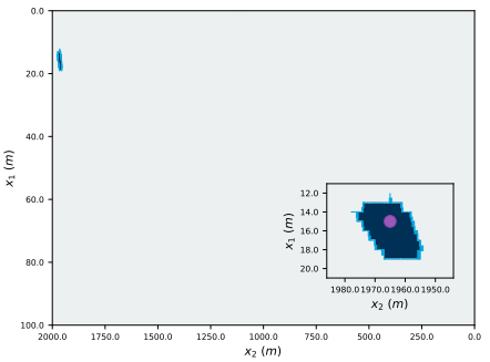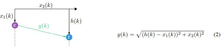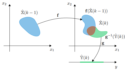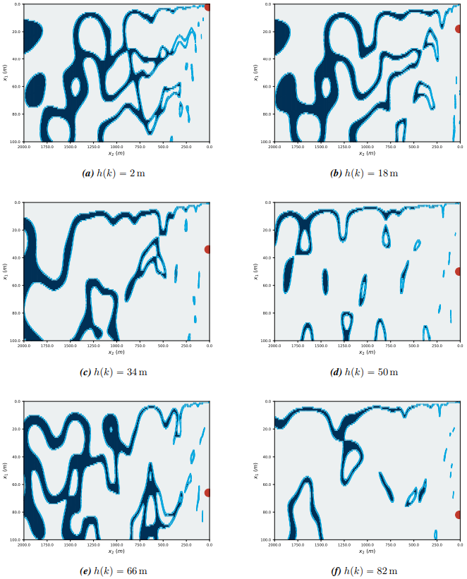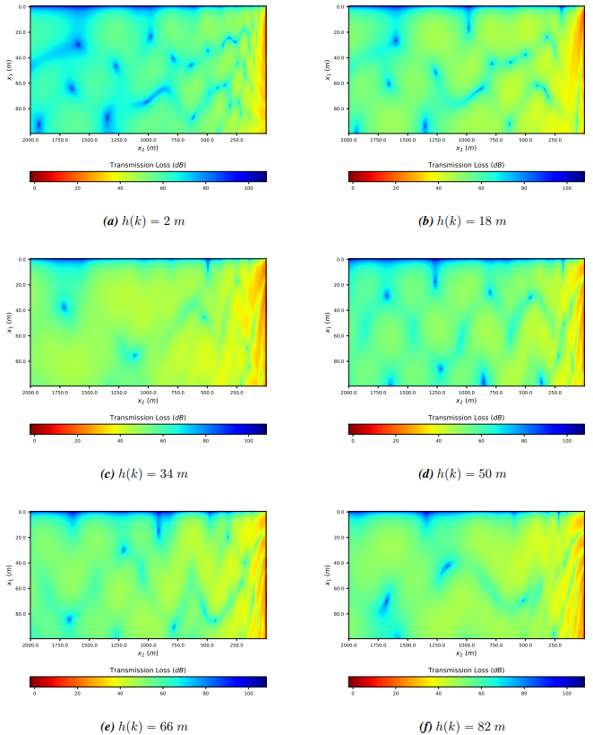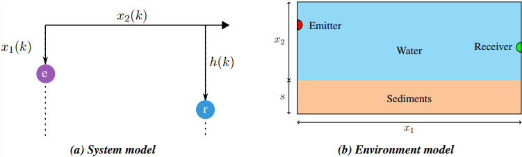 A A A Volume : 47 Part : 1 Acoustic source localization in underwater environment using set methods Quentin Brateau , Luc Jaulin and Benoit Zerr Citation: Proc. Mtgs. Acoust. 47 , 070023 (2022); doi: 10.1121/2.0001643 View online: https://doi.org/10.1121/2.0001643 View Table of Contents: https://asa.scitation.org/toc/pma/47/1 Published by the Acoustical Society of America ARTICLES YOU MAY BE INTERESTED IN Modelled sonar and target depth distributions for active sonar operations in realistic environments Proceedings of Meetings on Acoustics 47 , 070013 (2022); https://doi.org/10.1121/2.0001610 Stevens Passive Acoustic Detection System (SPADES-2) and its prospective application for windfarm underwater noise assessment Proceedings of Meetings on Acoustics 46 , 070001 (2022); https://doi.org/10.1121/2.0001626 Measurements of shipping, fin whales, earthquakes and other soundscape components at the Lofoten- Vesterålen Observatory, Norway (2018-2019) Proceedings of Meetings on Acoustics 47 , 070017 (2022); https://doi.org/10.1121/2.0001619 The SOUNDS project: towards effective mitigation of underwater noise from shipping in Europe Proceedings of Meetings on Acoustics 47 , 070021 (2022); https://doi.org/10.1121/2.0001638 Sonar array beampattern bounds and an interval arithmetic toolbox Proceedings of Meetings on Acoustics 47 , 055002 (2022); https://doi.org/10.1121/2.0001613 Estimation of uncertainties in underwater sound measurements of ships Proceedings of Meetings on Acoustics 47 , 070002 (2022); https://doi.org/10.1121/2.0001571 Acoustic source localization in underwater environment using set methods Quentin Brateau , Luc Jaulin and Benoit Zerr LAB-STICC, ´ Ecole Nationale Sup´erieure de Techniques Avanc´ees Bretagne, Brest, Bretagne, 29200, FRANCE; quentin.brateau@ensta-bretagne.org ; lucjaulin@gmail.com, benoit.zerr@ensta-bretagne.org The study of underwater acoustic wave propagation provides solutions to localization and underwater nav- igation problems. In these cases, simulation can be a powerful tool for a better understanding of acoustic propagation. These simulations are based on models that rely on simplifying assumptions allowing the nu- merical resolution. Simulation is also used to solve more specific problems in underwater environments. For instance, acoustic source localization using receivers in an underwater scene is still a challenging problem and has both civil and military applications. Classical methods are based on the use of acoustic receiver arrays placed in the environment. Assuming a normal modes model for the propagation, collected data are then processed, for example, by singular value decomposition or matched field processing based approach, which provides probabilistic results. The proposed approach to solve this problem is to use set methods. This method allows enclosing all source positions compatible with the recorded hydrophone signal. In ad- dition, possible sets for source position compatible with each receiver can be intersected to increase the certainty of the source location. Besides requiring a good knowledge of the scene, this method requires simulating the acoustic propagation as well as possible to correctly solve this localization problem. 1. INTRODUCTION State estimation is a field that aims to estimate the state of a system using its output. There are mainly two approaches to solve state estimation problem: probabilistic methods1 and set methods .2 Among probabilistic methods , one can mention Luenberger state observers or Kalman filters , which are designed to output the most probable state of the system with its associated probability. Among set methods , one can cite set state estimator , which is designed to enclose all possible states for the system. Both these approaches are based on the same type of two-step algorithm, composed of a prediction step and of a correction step, which will be repeated to estimate the state of the system over time. The prediction step aims to predict the next state of the system using the current state and the evolution function , while the correction step will correct this prediction using the system’s output.1 Probabilistic methods are powerful in state estimation for linear systems.1 In the nonlinear case, model system equations have to be linearized which induces rough approximations. With nonlinear systems, set methods for state estimation are more robust. Underwater acoustic propagation is a field that provides a lot of information about the environment. However, it involves nonlinear partial derivative equations which when combined with complex scenes can lead to complex dynamics. Valuable data extraction from underwater acoustic propagation is therefore a challenging problem. The localization of acoustic sources from hydrophones is a well-known problem named Matched Field Processing. This method is based on the full field structure of the acoustic signal propagation analysis to estimate source localization as well as the estimation of the ocean waveguide’s parameters.3 For this purpose, a normal mode propagation model is assumed for the ocean’s waveguide to be able to solve the inverse problem. The use of probabilistic methods in solving this type of problem can be challenging because the state estimator has to deal with the non-linear aspect of the problem. In this case, we will show that it is possible to solve this problem efficiently using set methods . More generally, this problem of underwater acoustic source localization is a state estimation problem involving an inversion problem. The purpose of this problem is to estimate the state of the scene, i.e. the position of the transmitter relative to the receiver, knowing that there is in most cases no simple analytical expression between the recorded acoustic level by the receiver and the state of the system. 2. SET STATE ESTIMATION A. INTRODUCTION This part deals with the formalism used in the rest of the paper. First, state equations are pr