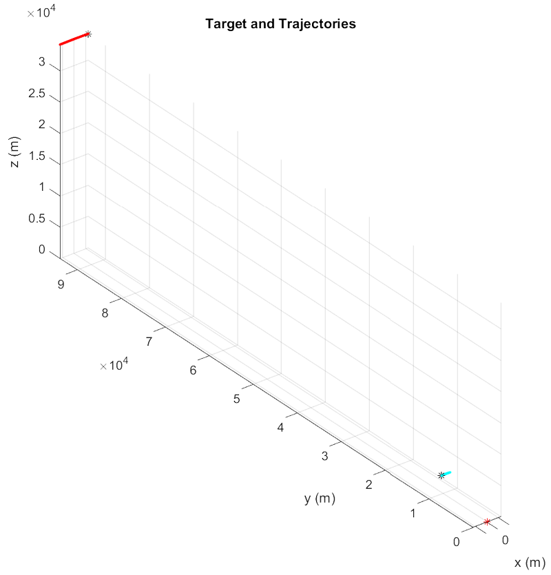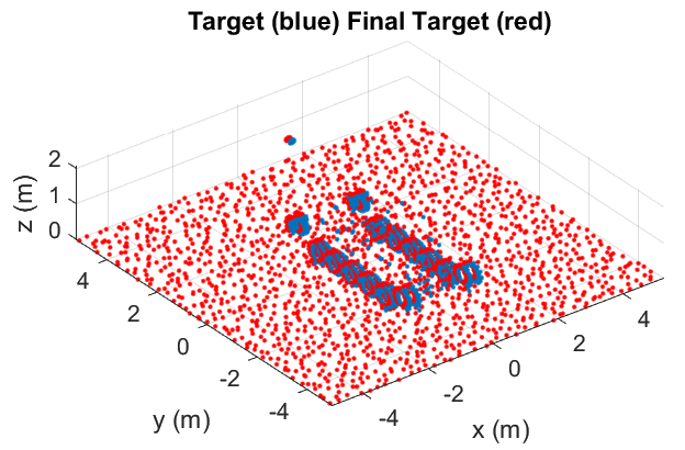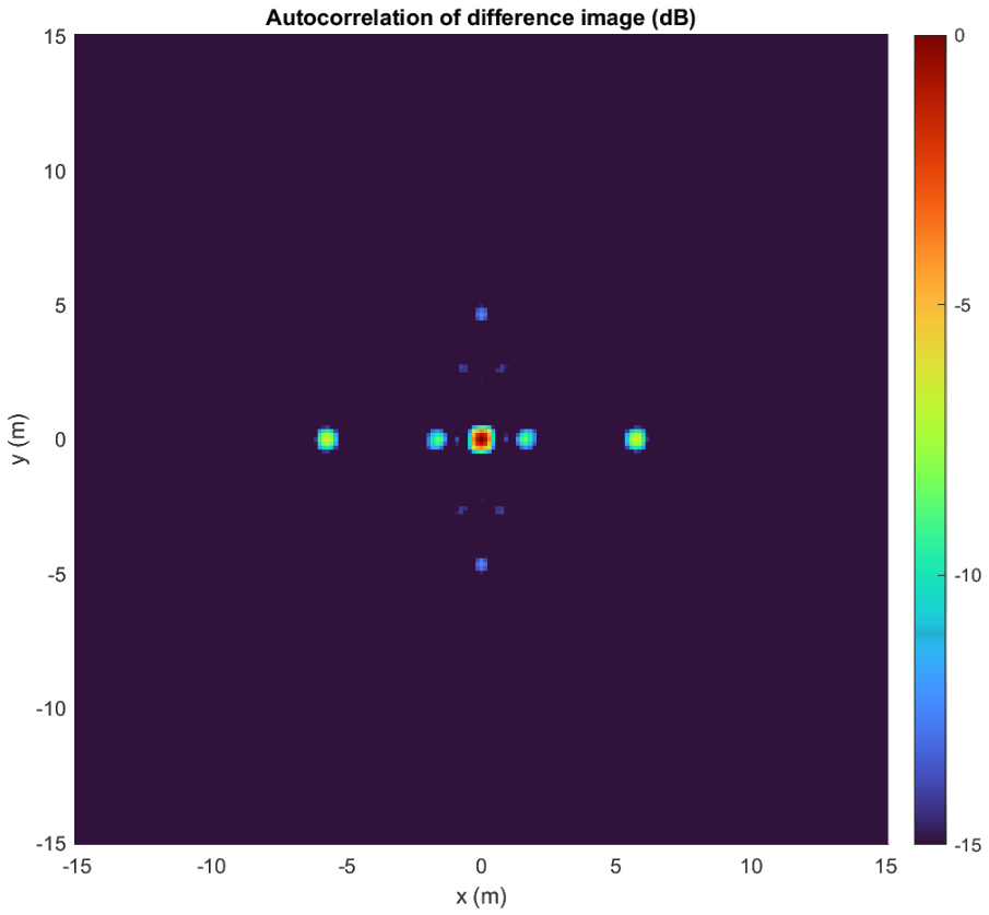 A A A Volume : 45 Part : 1 Proceedings of the Institute of Acoustics Reverse-path multistatic SAR for moving target detection in clutter D. Andre, Centre for Electronic Warfare, Information and Cyber, Cranfield University, Defence Academy of the United Kingdom, SN6 8LA, UK F. M. Watson, Department of Mathematics, The University of Manchester, Oxford Road, Manchester, M13 9PL, UK 1 INTRODUCTION Synthetic Aperture Radar (SAR) is a side looking remote sensing radar imaging mode. Due to the SAR image formation process being based on the assumption of a stationary scene, it is well known and observed that target motion causes defocusing and displacements1. In particular, targets with motion towards the radar, i.e. moving in a direction perpendicular to the radar trajectory, and with a velocity which has a constant radar range direction component only, appear both focused and displaced in azimuth in corresponding SAR images. While blurring due to azimuthal motion may be focused and used to estimate the azimuthal component of velocity2, the displacement can present a difficulty to image analysts, as it is then unclear where the target actually is or what its radial speed is, especially when its signature is below the ground clutter signal level. Note that the direction of this displacement depends on both whether the target is incoming or outgoing from the radar, and which direction the radar itself is moving in, which we later exploit in this paper. Multistatic SAR is often considered as a means to improve image resolution and target recognition3, due to the multiple bistatic source/receiver configurations increasing the extent of k-space covered. More generally, multistatic configurations may provide enhanced spatial, temporal (range), or spectral (Doppler) resolution4. As a special case, we propose a multistatic configuration which provides no benefit to the spatial image resolution, but does provide motion resolution of moving targets. This is achieved by the use of a reverse-path multistatic radar configuration, consisting of one co-located transmitter/receiver travelling with azimuth angular velocity ωM about the scene centre, and a second receiver travelling in the opposite direction with angular velocity ωR = -3ωM about the scene centre, at same grazing angle and with the centre of each aperture approximately co-located. The monostatic and bistatic apertures then cover close to the same extent in K-space5, but have obtained the collection in a different order from one-another during the simultaneous collections. This results in a pair of images which have SAR moving target displacements in opposite directions, and are also well suited to coherent subtraction of ground clutter, allowing detection and imaging of range-moving targets against strong background clutter. Range direction target speed can then be readily estimated either by inspection or through windowed autocorrelation of the difference image in the cross-range direction. An equivalent data collection can be carried out by having the transmitter at a greater range than the bistatic receiver, reducing its speed required to create the same equivalent mono-static aperture. An operationally relevant collection might be a stand-off platform with high-powered radar, with a stand in slower-moving receive-only UAV. This can be generalised further to other multi-static configurations in which the extent of k-space coverage is approximately the same, but the azimuth order in which it is collected is different, demonstrating a special case of gaining temporal resolution, instead of finer spatial resolution, using multistatic SAR configurations. This approach differs from the Ground Moving Target Indication (GMTI) mode6,7, in that GMTI used several radar phase centres and provides only coarse azimuth real radar beam-based resolution detections / indications. Generally, these coarse GMTI detections are overlayed on conventional high resolution SAR images, thus providing useful information of where moving targets are, and their speed, but not of a sufficient resolution to allow visual identification. We present here numerical experiments into the effectiveness of the method in detecting weak targets against strong speckle clutter. The simulation is described in section 2, the results in section 3, and finally the discussion and conclusion in section 4. 2 SIMULATION A SAR simulation was developed to demonstrate the multistatic reverse-path technique. The simulation employs a scattering scene comprising a collection of point-scatterer targets, and calculates the complex scattering amplitude from the scene, given the transmitter and receiver positions, and the radar frequencies sampled. The simulation is performed for bistatic synthetic aperture radar trajectories, with some of the scatterers in the scene – the target – moving during the radar collection. The SAR geometry is shown in Figure 1, with the target scene at the origin, a monostatic collection trajectory at 100 km range and 20º grazing angle (red) moving to the right (positive x-direction), and a receiver collection trajectory at 10 km range and 20º grazing angle (cyan) moving to the left (negative x-direction). The sensed frequency range is 300Mhz bandwidth with centre frequency of 5 GHz. The monostatic collection aperture extent is 3º, whereas the receiver aperture extent is 9º, travelling in the opposite direction at three times the azimuth angular speed as the monostatic collection. The two apertures are horizontal and centred about the same direction from the target scene. The two radar collections – monostatic and bistatic – cover approximately the same region of K-space within the same time period, but in opposite azimuthal directions, which is the crucial requirement for the proposed approach. When considering the bistatic collection, it is helpful to consider the bistatic equivalent monostatic phase centre motion, which in this case can be roughly approximated
