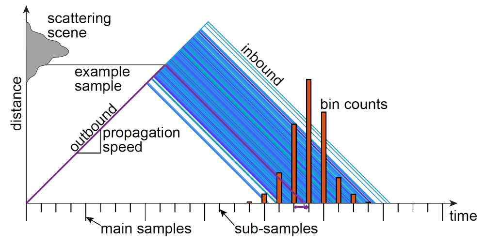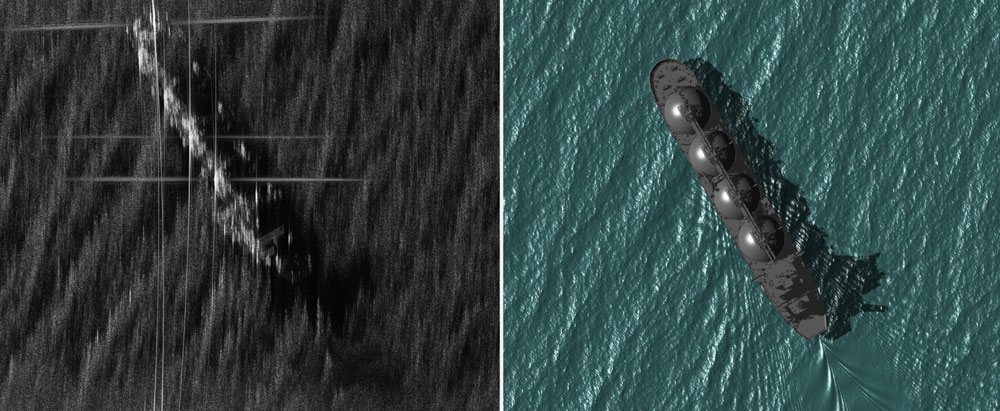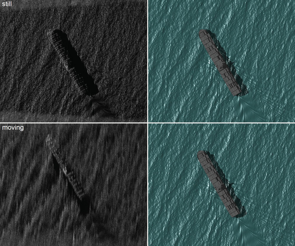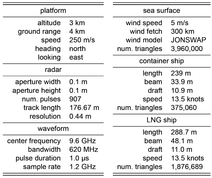 A A A Volume : 45 Part : 1 Proceedings of the Institute of Acoustics SeaSAR: High-fidelity simulations of maritime SAR images DJ Pate, Georgia Tech Research Institute, Atlanta, Georgia, USA 1 INTRODUCTION SeaSAR is a SAR simulation program written in C++ & CUDA for fast computation on a graphics processing unit (GPU). A scene comprising terrain, objects, vehicles, sea surface, etc. is represented by triangulated surfaces, in which the triangles are small enough to capture the physical details that are important to the particular SAR wavelength. The received scattered signal (i.e., the phase history data) is computed by summing over the contributions from every illuminated triangle via physical optics. Because physical optics requires sub-wavelength sampling, X-band radar simulations for appreciable scenes are very computationally intensive, requiring many millions of triangles, depending on scene size and content. SeaSAR features several advanced algorithm and software techniques to quickly and efficiently calculate physical optics scattering on a GPU, such as a bounding volume hierarchy commonly found in computer graphics rendering software. This work focuses on the intersection of physics, signal processing, and GPU programming to allow for efficient high-fidelity SAR simulation over a full scene. A detailed review of the ship wake SAR simulation literature was recently provided by Rizaev et al.1, and so only a brief summary is provided here. In general, SAR simulations use the Two-Scale Model (TSM), in which the scattering is divided into two regimes: “the quasi-specular scattering mechanism caused by large-scale gravity waves and the Bragg scattering mechanism caused by small-scale capillary ripples,” as described by Linghu et al.2. This has also be referred to as a “semi-deterministic” scheme3. The sea surface is modeled coarsely, and each surface facet is assigned a scattering strength based on its orientation and the high-frequency portion of the gravity wave spectrum. Many prior works produce a SAR image directly from the scene by computing a normalized radar cross section (NRCS) for each sea surface facet. Portions of the image are then displaced in the along-track direction according to their radial velocity relative to the sensor to mimic effect that occurs during SAR image formation. This correction is called a “velocity bunching model”4,5,6. However, this bypasses the actual signal processing chain and misses the opportunity to model these effects. Alternatively, some authors have developed so-called “SAR raw signal simulators (or generators)” that compute the complex-value time samples for each received pulse7,8,9,10,11,12,13,14,15. This form of data is often called the SAR phase history data16. Similarly, SeaSAR computes the complex-valued time samples comprising the received signal for every SAR pulse. In this case, along-track displacement due to motion is an emergent effect due to directly computing the time of arrival as the scene evolves over time. The SAR simulation literature remains an active topic of research17,3,18,19,20,21,22,23,4,24,25. 2 PHYSICAL OPTICS FOR ELECTROMAGNETIC SCATTERING SeaSAR uses physical optics26 (PO), also called the Kirchhoff approximation27,28, in which the surface current at any point is assumed to be equal to the surface current that would be present on a hypothetical infinite tangent plan. Physical optics requires integrating the scattered electromagnetic field over the entire surface with sub-wavelength sampling, except those regions that are shadowed. The requirement to sample the sea surface with sub-wavelength spacing is extremely burdensome, though that burden is largely alleviated by fast parallel computations with a graphics processing unit (GPU). Physical optics can be extended to capture multiple scattering, though SeaSAR currently does not include this. Multiple scattering is especially important for capturing dihedrals, which can alter polar ization, and trihedrals. The program XPATCH uses the shooting-and-bouncing-rays (SBR) technique as well as the physical theory of diffraction to capture multiple scattering29,30. Weinmann extends this to include the propagation of diffracted rays31. In general, the multiple scattering problem with physical optics is reminiscent of the global illumination problem in computer graphics32,33 that is solved via the rendering equation34. This suggests the application of modern computer graphics techniques to electromagnetic scattering, which was considered by Willis et al.35. Another challenge is properly modeling complex textures beyond that of a polished perfectly electric conducting surface. This is captured in XPATCH via material reflection coefficients29. Lastly, regardless of the fidelity of the scattering model, the fidelity of the full simulation can be no better than the representation of the scene, which can often be the limiting factor. Maritime scenes, though, typically comprise only the sea surface, ships, and ship wakes, which is more manageable. SeaSAR includes wind-driven waves36,37,38,39,40,41,42, Kevlin wakes43,44,19,22, and turbulent wakes45,19. 2.1 Scattering Equations This description of the physical optics scattering equations follows that of Pathak and Burkholder26,46,47. The sensor is located at p and the differential scattering element dA of surface S is at q with normal vector , and with p and q measured relative to a common origin O, as depicted in Figure 1. Figure 1: Vector arrangement for the scattering integral. The relative position vector is r = q − p with length R = || r || and direction = r / R. The incident electric field vector E i is related to the corresponding magnetic field vector as H i = × E i / Z0, where Z0 ≈ 376.73 is the impedance of free space. The incident electric field is determined by the radar aperture, which is currently modeled as a uniform rectangular aperture. The scattered electric field E s at q is calculated as The ph
