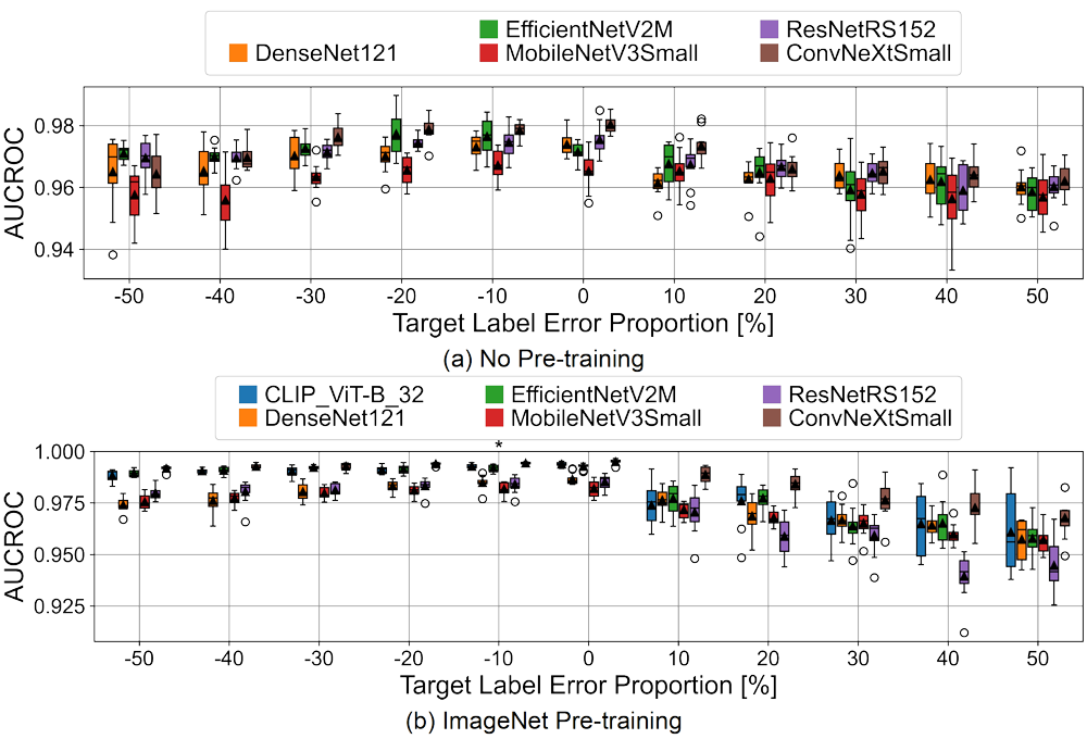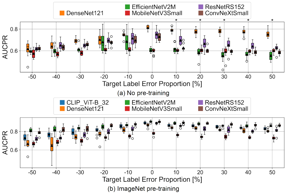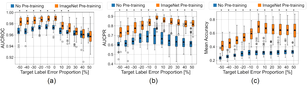 A A A Volume : 45 Part : 1 Proceedings of the Institute of Acoustics Exploring the impact of erroneous labels on synthetic aperture sonar classifier performance I. D. Gerg, Penn State Applied Research Laboratory, State College, Pennsylvania, USA B. E. Cowen, Penn State Applied Research Laboratory, State College, Pennsylvania, USA Corresponding author email: isaac.gerg@psu.edu 1 INTRODUCTION Synthetic aperture sonar (SAS) is a standard imaging modality used to generate high-resolution imagery of the seafloor. Often, this imagery is used by analysts and automated systems to locate objects of interest. Deep learning is the state-of-the-art approach to automated SAS image analysis, but it requires abundant labeled data to yield acceptable performance. Acquiring ground-truth SAS image labels is expensive as it requires the coordination of divers and surface ships. Instead, labels are typically created by topside analysts manually examining the SAS imagery sometimes requiring the consultation of additional collated modalities to resolve object ambiguity1. Overall, this process can result in bad labels making it into the training dataset of a deep learning algorithm. This work aims to determine the effects of training with erroneous labels on SAS classifier performance. Motivation. To gain insight into the robustness and reliability of deep learning SAS classifiers when faced with corrupted labels during the training phase, a common real-world scenario. Contributions. We conduct extensive experiments using multiple deep learning models, including state-of-the-art convolutional neural networks (CNNs) and a vision transformer (ViT), where we artificially corrupt the labels of an existing real-world SAS dataset to measure the resilience of each method to label errors. We evaluate two model parameter initialization schemes: ImageNet pre-training (training a neural network on the ImageNet dataset2 before using it for this task) and no pre-training (model parameters are initialized randomly). To ensure a robust assessment, we train each model ten times to account for the variability in the results due to the randomness of selecting the training data of the train/validation split and the random initialization of model parameters (used in the no pre-training scenario). Following the training process, the models are evaluated on SAS data containing no label errors allowing us to assess their generalization capabilities and resilience to label noise. On a real world SAS dataset, we show that (1) ImageNet pre-training increases model resilience to erroneous labels, (2) the area under the receiver operating characteristic curve (AUCROC) and the area under the precision-recall curve (AUCPR) have different failure modes when erroneous labels are present, and (3) network architecture plays a significant role with some architectures exhibiting more resilience to erroneous labels than others. Figure 1: Sample SAS images from our dataset are shown, with images (a)-(c) illustrating objects of interest, images (d)-(e) illustrating background features, and images (f)-(h) illustrating confusers. Confusers are particularly challenging as they can be easily mistaken for objects of interest when labeling the data based solely on sonar imagery without any in situ ground-truth information1. This underscores the importance of accurate ground-truth labels in the development and evaluation of SAS classification models. 2 PREVIOUS WORK The impact of erroneous labels on synthetic aperture sonar (SAS) classifier performance has yet to be extensively investigated in the literature, to the best of our knowledge. However, the effect of label noise on classifier performance is a well-known challenge in image-based machine learning3including the sub-fields of remote sensing4 and medical image analysis5. Researchers have explored the impact of erroneous labels on classification performance and have proposed methods to address this issue. One approach has been to develop robust classifiers that can tolerate a certain level of label noise. For example, some studies have investigated the use of robust loss functions and training schemes6,7,8,9,10,11, which can identify and down-weight the contribution of noisy samples during the training process. By reducing the influence of mislabeled samples, these classifiers can achieve better generalization and improved performance on clean test data. Another line of research has focused on detecting and correcting erroneous labels in the training data before classifier training. This can be achieved through various techniques, such as unsupervised algorithms explicitly modeling label noise12, and implicit methods using a pre-trained autoencoder13. By correcting or filtering out mislabeled samples before training, the classifier can be trained on a cleaner dataset leading to improved performance. 3 METHODOLOGY 3.1 Dataset and Preprocessing The training and test datasets consist of image chips of background and targets from the MUSCLE system14. The chips were generated by scanning SAS images with the Mondrian detector15 and saving chips that obtained a sufficient detector score. Each chip is 335×335 pixels in size. The images were collected by MUSCLE from 2008 - 2018. We divide the dataset roughly in half and assign the training/validation data as the first five years of the collection and use the remaining five years as the test data. The training/validation set comprises 27,748 images of which 1,385 are targets. The test set is composed of 21,188 images of which 639 are targets. We use a 50:50 random split to create training and validation sets for network training. Before training, all imagery was autofocused using a parametric quadratic phase error model optimized for maximum contrast (i.e., mean-normalized standard deviation) using a grid search. We perform data augmentation on-the-fly during the training of each network. It consists of random crops of the image to 256×256 pixels and random 
