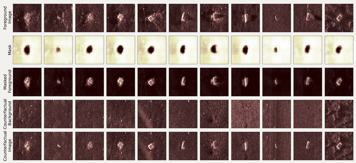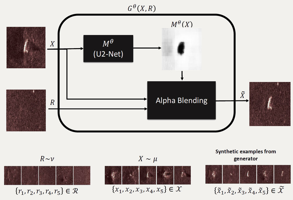 A A A Volume : 45 Part : 1 Proceedings of the Institute of Acoustics Weakly supervised automatic object masking for synthetic aperture sonar MS Emigh, Naval Surface Warfare Center, Panama City, FL, USA H Baker, University of Delaware, Newark, DE, USA CH Mendoza-Cardenas, University of Delaware, Newark, DE, USA AJ Brockmeier, University of Delaware, Newark, DE, USA 1 INTRODUCTION Automatic object masking can be defined, in the context of sonar seafloor imagery, as the process of generating a pixelwise mask that separates objects from the seafloor. It is a challenging problem because conventional segmentation techniques require drawing and labeling masks, which is extremely time-intensive. Segmentation training sets consist of tens of thousands of hand-labeled images. We propose a weakly supervised approach by exploiting the relatively large number of labels contained within a typical synthetic aperture sonar (SAS) automatic object recognition dataset. These datasets typically provide the object center location and object type, but do not contain pixelwise labels. We learn the object masks by optimizing a deep network to mask a subset of pixels in an object image such that when the un-masked part is replaced with a seafloor-only image, the result is statistically indistinguishable from an actual object image. The network is trained using a cost function that estimates the statistical divergence between the real and “counterfactual” images generated by the masks. Notably, this approach ignores the dependence between the statistics of the object and the surrounding seafloor. Nonetheless, it will allow us to gather joint statistics on objects and the seafloor they lie on. Accurate object masking allows the gathering of statistics of objects versus the seafloor they lie on, estimation of signal-to-noise ratio (SNR), and estimation of objects’ dimensions. It also allows for synthetically generating new object imagery on other seafloors. This has the potential of augmenting object recognition datasets. 2 RELATED WORK Although no works directly related to weakly or unsupervised sonar object masking have been found, a number of related approaches have recently been applied to natural imagery. Remez et al.1 proposed a GAN-based, weakly-supervised approach to segment objects output by the faster R-CNN object detector. The GAN generator attempts to learn a mask which is then used to cut and paste the object to a different location. The discriminator then attempts to distinguish between real images and the ones generated by the cut-and-paste masks. They train an independent model per class (e.g., car, person). To prevent degenerate solutions, they added a pre-trained classifier with a classification loss to ensure the object is still in the copy-paste image. Bielski et al.2 proposed a GAN-based, unsupervised approach. They trained a GAN to produce mask, foreground, and background images and then alpha-blended the foreground and background based on the mask. To prevent degenerate solutions (e.g., an empty mask), they perturbed the masked foreground by randomly shifting it before blending the images. Finally, they trained an autoencoder model where the generator served as a decoder to segment images. Their method, however, is class dependent and the performance degrades when training the model for more than two classes (e.g., horses and cars). Similarly, Yang et al.3 used layered GANs-based to generate foreground, mask and background images. They trained a segmentation network based on the generated data by the GAN model. Savarese et al.4 proposed a method to segment foreground and background through masking in order to maximize the inpainting errors in both the region of foreground removed from the background and the complement. The inpainting is performed using a pre-trained inpainting network. The intuitionis that if correctly masked such that no background remains in the foreground and vice versa, the inpainter will fill the regions with distinct imagery. Their initial masking method does not train a model, instead, it iteratively adjusts the mask using an optimization procedure for each image, assuming the initial mask is a small centered square. They then explore using the image and estimated mask pairs that resulted in the highest inpainting error (assuming they are correct) to train a masking neural network; this achieved moderate improvements. 3 METHODOLOGY We consider the set of probability distributions PI over the domain I. Let µ, ν ∈ PI denote probability measures on I. Here, we consider I to be a subset of d-dimensional real-valued vector space I ⊆ d, i.e., the space of SAS images with d pixels. The measures µ and ν represent distributions of different SAS image types, e.g., various seafloor textures or objects. Let X ∼ µ and Y ∼ ν denote random variables X, Y ∈ I representing SAS images distributed according to µ and ν. A statistical divergence is a function that quantifies the dissimilarity between two probability distribu tions. Let D(µ, ν) denote a divergence D: PI × PI → [0, ∞). It is a distance metric (a probability metric) if all of the following statements hold: (i) µ = ν ⇒ D(µ, ν) = 0, (ii) D(µ, ν) = 0 ⇒ µ = ν, (iii) D(µ, ν) = D(ν, µ), (iv) D(µ, ν) ≤ D(µ, ξ) + D(ν, ξ). In this paper, we consider variants of the Wasserstein metric. It is a divergence, and as should be clear from its name, satisfies the requirements to be a distance metric. The Wasserstein-2 distance W2 (µ, ν) is where Γ(µ, ν) defines the set of all joint distributions with marginals µ and ν. Wasserstein-2 distance is a type of “earth-mover’s” distance; if distributions µ and ν are visualized as piles of dirt, it measures the cost to transform one distribution into the other in the most efficient way possible. Unfortunately, computation of Wasserstein distance is too demanding in high-dimensional spaces such as SAS imagery. The sliced Wasserstein 