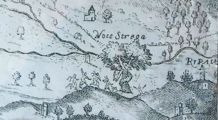 A A A Volume : 44 Part : 2 Proceedings of the Institute of Acoustics Acoustic search for ‘The Witches Valley’ Antonella Bevilacqua, University of Parma, Parma, Italy Cobi van Tonder, University of York, York, UK Ilaria Lombardi, University of Campania Luigi Vanvitelli, Aversa, Italy ABSTRACT Benevento is famous as the ‘city of witches’ according to folklore dating from the 13th century. There exists much mystery and variation around the origin of the legend of ‘The Witches Valley’. Various writers, composers, poets and artists have referred to it, including the chief physician of Benevento, Pietro Piperno, who in 1639 in his book entitled ‘De Nuce Maga Beneventana’ traced the legend of the witches back to Lombards invaders in the seventh century, who gathered south of the city to dance and perform rituals under a magical walnut tree somewhere in the valley of the river Sabato, in a long narrow gorge. This paper aims to confirm the place of this legend based on acoustic properties and suggests two possible locations in the valley of the river Sabato: The Strait of Barba and Wolf Rock, that due to their acoustic properties could have been the place of the legend. A campaign of acoustic measurements has been performed using firecrackers recorded with a Brahma microphone. The acoustic analysis confirms that both these places are characterized by a development of sound reflections, a phenomenon that can explain why a drum roll was perceived as a very reverberant and ‘magical’ sound. 1. INTRODUCTION History shows a long trail of how sound is connected to the sublime, whether deliberately manipulated by shamans, oracles, priests or witches in their rituals or whether determining the choice of sacred (magical) sites for spiritual activities. In prehistoric times the phenomena of sound propagation and reflection was unknown; as such, our primitive ancestors associated the presence of supernatural divinities to the rocks where the sound was reflected. In France and Spain in a few Paleolithic caves the images of hunting with quadrupedal animals have been discovered, detected in the areas where the reverberation is considerable, while scenes with feathered animals were discovered in the areas where the reverberation is not perceivable [1-3]. Shamans selected reverberant sites such as caves or narrow valleys to amplify their sounds, (which would often be the beating of drums) and intensify an atmosphere of mystery and otherworldly power in order to impress the participants. Additionally, series of echoes and reflections generated the effect of mysterious voices – the voices of gods. Examples can be found ranging from the pre-Columbian societies of Latin America [4], to ancient Greece [5] that show how reverberant sound was associated with supernatural phenomena: the echoes were believed to be the voices of spirits. In literature, there are various articles on the acoustics of caves and on the acoustics of valleys from which one can draw inspiration for the acoustic study of similar places and with modern acoustics techniques it is possible to investigate the propagation of the sound field in places where one believes they may have been used for sacred rites or functions. This paper deals with the acoustic investigation related to the existence of valleys in the countryside of Benevento where the legend of witches was born. Specific places located in the valley of the river Sabato have been measured. This valley is still a natural amphitheater surrounded by woods and hills. 2. THE LEGEND OF THE WITCHES’ VALLEY In Piperno’s ‘De Nuce Maga Beneventana’, the legend of the witches is traced back to Lombards invaders in the seventh century [6]. Though formally converted to Catholicism these Lombards carried on with their pagan traditions. The Christians of Benevento would have considered their rites as that of witches. According to the legend, witches were considered women with magical knowledge who could cure diseases with the use of medicinal plants. There is a description of witches that gathered south of the city to dance and perform rituals under a magical walnut tree, locating the place of their rituals somewhere in the valley of the river Sabato, in a long narrow gorge. Figure 1 shows a historical representation of Benevento as reported in the book by Piperino. In particular, a tree wrapped by a snake with the witches dancing around is indicated on the right side of the river Sabato, identified as the place where the witches were used to have periodical meetings. Supposedly, Saint Barbatus cut down the sacred tree and tore out its roots leaving acoustic evidence as an alternative way to confirm where the rituals took place. The Lombards would have selected a place where the sound could be amplified by the natural conformation of the landscape in order to impress the participants. Two possible locations in the valley of the river Sabato - the Strait of Barba and Wolf Rock, due to their acoustic properties could have been the place of the legend. Figure 1: Representation of the Witches’ Valley. Drawings by Piperino in De Nuce Maga Beneventana. 3. A STRATEGIC PLACE THROUGHOUT THE HISTORY The countryside of the actual Benevento was occupied by the Samnite tribes before they were dominated by Romans. With the realization of the Appia road, Benevento had a strategic position to be in the middle of an important commercial axis linking the Tyrrhenian with the Adriatic Sea. The legend of the witches took place with the invasion of the Lombards (Germans), who migrated to Italy due to famine and wars in northern Europe. They occupied also a part of southern Italy, establishing their center in the city of Benevento around 570 [7]. The Lombards brought their traditions, religion and habits, including their devotion to the gods of nature to whom they performed their rituals in the forests. One of their rituals was to dance around a tree whilst hitting with arrows a goatskin suspende