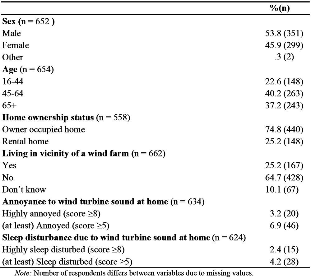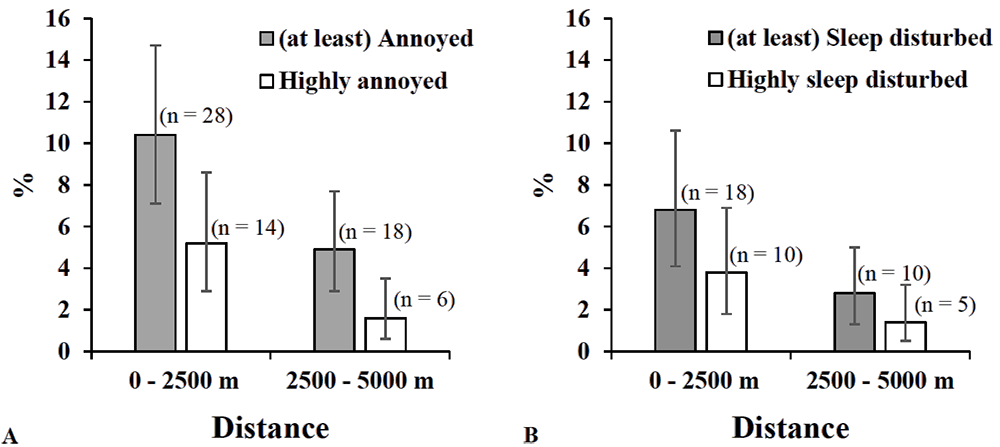 A A A Volume : 44 Part : 2 Proceedings of the Institute of Acoustics Annoyance and sleep disturbance responses in people living in the vicinity of wind turbines in the Netherlands Anne Bolders1, National Institute for Public Health and the Environment (RIVM), Bilthoven, The Netherlands Marije Reedijk2, National Institute for Public Health and the Environment (RIVM), Bilthoven, The Netherlands Harm van Wijnen3, National Institute for Public Health and the Environment (RIVM), Bilthoven, The Netherlands Irene van Kamp4, National Institute for Public Health and the Environment (RIVM), Bilthoven, The Netherlands ABSTRACT In order to achieve global and national climate goals, wind energy production in the Netherlands and elsewhere will likely continue to grow, and the size and capacity of new and replaced turbines will increase. Therefore, it is important to understand the impact of wind turbines on people living in their vicinity. Current evidence on health effects of living in the vicinity of wind turbines in The Netherlands is lacking. To fill this knowledge gap we conducted a nationwide survey among 3500 people living within 5 km distance of wind turbines, of whom 662 people (19%) participated. They completed a questionnaire about annoyance and sleep disturbance responses to wind turbine related exposures (e.g., mechanical sound, sound of blades, and visual aspects), as well as questions about general health, perception of risks, and attitudes. Information about local wind turbine features (distance, hub height, capacity, and rotor diameter) was available for each address. This paper presents preliminary descriptive results for annoyance and sleep disturbance responses to wind turbine sound. These findings and their limitations are discussed against the background of the challenges encountered and considerations for future research. 1. INTRODUCTION As concluded by recent reviews on the effects of wind turbines on health and perception [1-3], noise annoyance is the most often described effect of living near wind turbines. There is a clear relationship between annoyance and exposure to wind turbine sound (and wind turbine distance [4]). The percentage of people that is highly annoyed by wind turbine sound increases with increasing sound levels [1-3]. Moreover, sound from wind turbines is perceived as more annoying compared to other sources of environmental noise such as industry, rail and road traffic [e.g., 6]. A likely cause for this difference is the typical swishing character of wind turbine sound (amplitude modulation). Furthermore, the findings of studies on sleep disturbance due to wind turbine noise that were presented in recent reviews are inconsistent and there is insufficient evidence for other direct health effects [1-3] [5]. The literature reviews also show that in addition to the noise exposure, a large number of other factors determine levels of noise annoyance and sleep disturbance. These co determinants, such as personal characteristics and circumstances in the surroundings, seem to play a major role, particularly at individual level. Lastly, recent studies [7-8] have shown that annoyance from wind turbines is not limited to wind turbine sound, but it is also a consequence of other wind turbine related exposures (such as shadow flickers and visual impacts). At national level in The Netherlands, as estimated from a sample of the general population, 0.3% of the persons of 16 years and older is highly annoyed by wind turbine sound and less than 0.1% is highly sleep disturbed [9]). At the local level these figures might be very different. Currently there are no recent data available for the prevalence of annoyance and sleep disturbance among people living in the vicinity of wind turbines in the Netherlands. The most recent data presented in the literature (within 2.5 km from wind turbines in the Netherlands) is from April 2007 [6][10]. Since then, not only the number of wind turbines in the Netherlands has increased, but newly placed wind turbines are also larger in size and capacity [11-12]. Taken together, the time is ripe to update the data on community response to wind turbines in the Netherlands. A comprehensive description should include annoyance to different wind turbine related exposures and take relevant co-determinants into account. Therefore, as part of a larger survey into the perception of risk and health effects of a range of environmental factors, we conducted a study into the perception of, and responses to, wind turbine related aspects in a sample of 3500 residents of 16 years and above, living within 5 km from a wind turbine in the Netherlands. The study had the following main aims: To map the prevalence of (high) annoyance, sleep disturbance and health complaints due to wind turbines sound and wind turbine related exposures within 5 km from wind turbines across the Netherlands. To assess the relationships of (high) annoyance, sleep disturbance and health complaints with distance and sound exposure (and possibly wind turbine features such as hub height, capacity and rotor diameter). To study the role of contextual and personal factors in annoyance,sleep disturbance and health complaints. Here we present preliminary data from a part of this study. The objective of the current paper is to explore the percentages of (high) annoyance and (high) sleep disturbance within 5 km from wind turbines and to compare annoyance and sleep disturbance responses between 0 to 2.5 km and 2.5 to 5 km from wind turbines. We discuss these findings and their limitations as well as the challenges encountered in conducting the survey and give some considerations for future research. 2. METHOD 2.1. Selection and recruitment This study was conducted in the Netherlands from mid-April to mid-June 2021 among participants of 16 years and older living within 5 km from a wind turbine. The study area was based on wind turbine location data as well as information about the capacity of each wind 