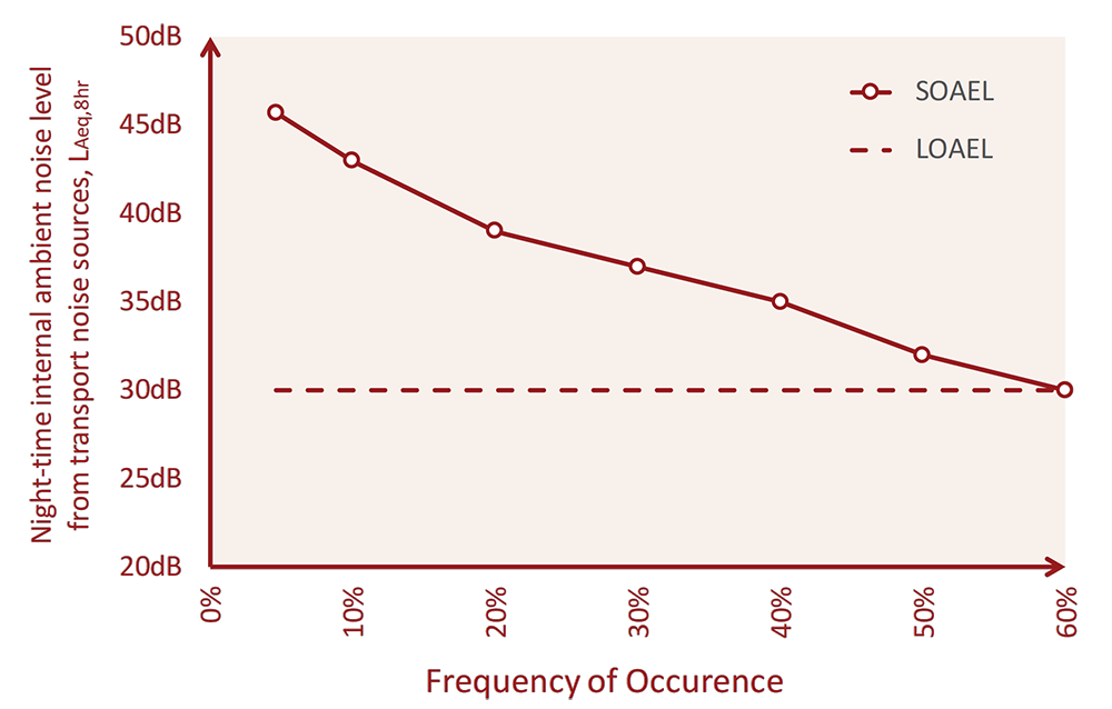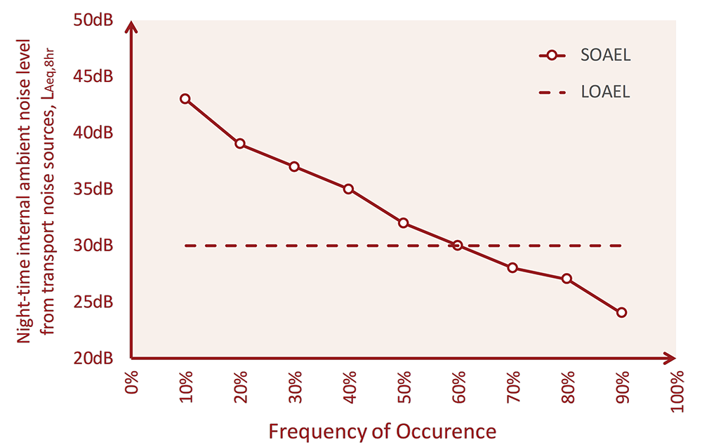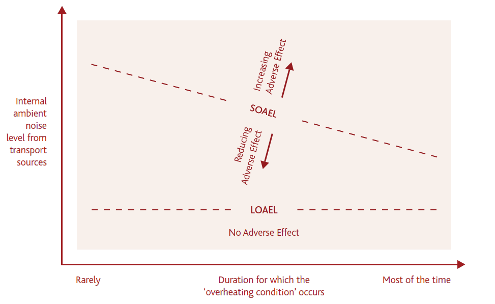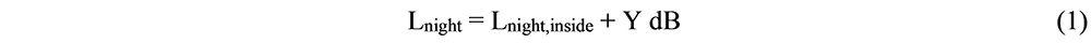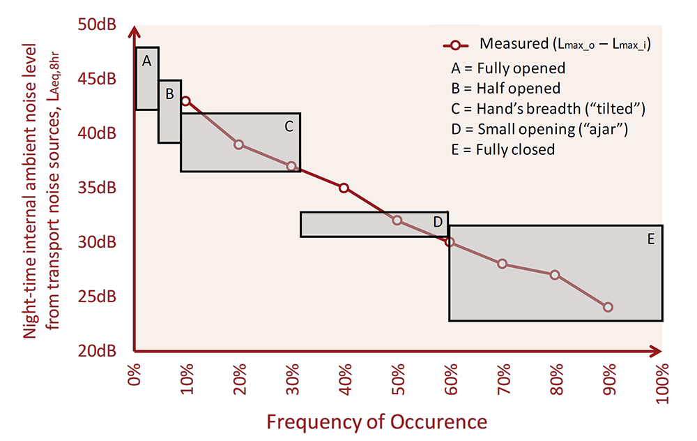 A A A Volume : 44 Part : 2 Proceedings of the Institute of Acoustics Duration dependence of night-time noise effect for passively cooled residential bedrooms Anthony Chilton1, Max Fordham LLP, 42–43 Gloucester Crescent, London NW1 7PE, UK Peter Leonard2, Max Fordham LLP, 42–43 Gloucester Crescent, London NW1 7PE, UK ABSTRACT The Acoustics, Ventilation, Overheating: Residential Design Guide[1] (“The AVO Guide”) was launched by the Association of Noise Consultants and Institute of Acoustics in January 2020. It provides a methodology for assessing the adverse effect due to break-in of external transport noise through façade openings provided for the purpose of mitigating overheating. Figure 3-2 of the AVO Guide indicates qualitatively how the SOAEL (Significant Observed Adverse Effect Level) is expected to vary with the duration for which the ‘overheating condition’ occurs. However, no quantitative guidance regarding the dependence on duration is given. This study describes how the methodology used in the WHO Night Noise Guidance for Europe 2009[2] to evaluate outside-to-inside level difference can be extended to provide a quantitative definition of the SOAEL for transport noise affecting passively cooled residential bedrooms at night. A quantitative version of the AVO Guide Figure 3-2 is derived and presented. Comparison is made between the SOAEL values presented here and the duration/frequency independent values suggested in the recently published Approved Document Part O[3]. Commentary is provided regarding the urgent need for better availability of relevant information on the frequency of occurrence of window openings for residential buildings in use, as opposed to data generated by the dynamic thermal models produced to show compliance with CIBSE TM59[15] and/or Approved Document Part O. 1. AVO GUIDE - QUALITATIVE APPROACH 1.1. Level 2 Assessment Based on indoor ambient noise level as shown in Figure 3-3 of the AVO Guide[1] (reproduced here as Figure 1). Paragraph 3-16 of the AVO Guide states that the upper category in Table 3-3 is defined with reference to the WHO Night Noise guidelines[2] (‘NNG’). Although not explicitly stated, the lower category in Table 3-3 is defined with reference to the guideline values in Table 4 of BS8233:2014 (‘BS8233’)[4]. It is important to note that both the NNG and BS8233 values are yearly average values. As such, it is implicit that the Level 2 assessment is based on yearly average noise levels. Table 3-3 makes qualitative statements (as highlighted in Figure 1) regarding how the duration for which the noise level is experienced will influence the adverse effect of the noise. 1.1. AVO Diagram Figure 3-2 (“the AVO diagram”) illustrates qualitatively how adverse effect is expected to vary with duration. Figure 3-2 is reproduced here as Figure 2. Figure 3-2 of the AVO Guide does not quantify the scale of either the x or y axes. Figures B-2 and B-3 of the AVO Guide show versions of the AVO Diagram that quantify the Internal Ambient Noise Level axis (y-axis) but the Duration axis (x-axis) remains qualitative. The reason that quantitative guidance was not provided regarding duration was that the AVO Guide authors felt that there was not a sufficiently robust basis for a qualitative approach. Figure 1: Table 3-3 from AVO Guide “Guidance for Level 2 assessment of noise from transport noise sources relating to the overheating condition”. See AVO Guide[1] for the referenced notes. Figure 2: ‘AVO Diagram’ – Figure 3-2 from AVO Guide[1] “Qualitative guidance on combined effect of internal ambient noise level and duration for the overheating situation”. 2. WHO NIGHT NOISE GUIDELINES FOR EUROPE 2009[2] 2.1. Conversion between Inside and Outside Noise Levels Section 1.3.4.4 of the NNG describes the correction that is used to convert between inside and outside noise levels. The relevant relationship (Equation 3 from the NNG) is reproduced as Equation 1 here. where: Lnight is the one-year LAeq over the 8-hour night-time period, outside at the most exposed façade Lnight,inside is the one-year LAeq over the 8-hour night-time period, inside Y is the year average insulation of the (bedroom) façade. The NNG uses a value of 21dB for Y. 2.2. Evaluation of the Year-Average Insulation The value of 21dB for Y is taken from a field study[5] of sleep disturbance and aircraft noise undertaken between November 1999 and April 2001 in the areas around Schiphol Airport in the Netherlands. The study had 418 adult participants at 15 locations within 20km of Schiphol airport exposed to varying degrees of aircraft noise exposure. Each participant was involved for an 11-day period from a Monday morning until Friday morning the following week. Reference should be made to the original reports for a full description of the study. For the purposes of this discussion, the relevant pieces of information that were recorded as part of the study are as follows: Indoor noise levels in the participants bedroom Outdoor noise levels at the location For both the indoor and outdoor noise measurements, aircraft noise events have been identified by reference to the flight track monitoring system of the Civil Aviation Enforcement Agency The values of Lmax_o (outside) and Lmax_i (inside) have been identified for each aircraft noise event. Lmax_o and Lmax_i being the maximum value of the LAeq,1s value during the event. A total of 63,242 aircraft noise events were monitored during the study The outside-to-inside level difference (Lmax_o - Lmax_i) has been evaluated for each aircraft noise event. Both the cumulative distribution and mean values of the outside-to-inside level difference have been reported. Values are reported separately for single-glazed and double-glazed windows. Participants were required to complete a questionnaire each morning. This includes questions about the position of the bedroom window during the previous night. Five options are given for the wind