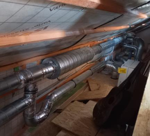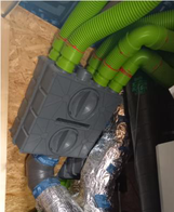 A A A Volume : 44 Part : 2 Prediction of the noise from mechanical ventilation systems in dwell- ings: case studies Arne Dijckmans 1 Belgian Building Research Institute Rue de Lombard 42, B-1000 Brussels, BelgiumABSTRACT Noise caused by mechanical ventilation systems in dwellings remains a common problem in practice. To help designers and installers, a simplified acoustic calculation tool has been developed which can be used without detailed acoustic knowledge. The tool is based on the prediction models in EN 12354- 5 and VDI 2081 and takes into account the airborne duct sound. The model has been validated by multiple case studies in dwellings. For each case study, the noise levels and airflow rates of the mechanical ventilation system have been measured in each room. Generally, the global A-weighted noise level is predicted with an accuracy of ± 3 dB, on the condition that the airborne duct sound is dominant and sufficiently accurate acoustical input data are available for key components like fans, silencers and air openings. However, some measurement results cannot be predicted by the simplified calculation framework, e.g. when turbulence in two closely placed fittings leads to additional flow noise. The uncertainty also increases when the fan sound is dominated by tonal components.1. INTRODUCTIONNoise is one of the key elements that determines the occupants satisfaction of mechanical ventilation systems in dwellings. Too noisy ventilation systems are often turned off by the users, which has a direct impact on the indoor air quality. Therefore, national standards and regulations impose maxi- mum noise levels on ventilation systems in buildings. For small projects, the acoustical requirements are typically only accounted for by means of simple design guide lines and rules of thumbs (e.g. placing a silencer and limiting the air velocity). However, this does not necessarily guarantee that the ventilation system satisfies the acoustic requirements. To help designers and installers, we want to develop an acoustic calculation tool which can predict the acoustical performance with sufficient accuracy, but doesn’t require detailed acoustic knowledge from the user.Different acoustical design methods, software tools and guidelines exist. EN 12354-5 gives a gen- eral framework to calculate installation noise. Guidelines are given in various handbooks (often com- plementary to the standard and each other), like the German VDI [1], the American ASHRAE [2] and the Dutch ISSO [3].Several questions arise when applying these calculation schemes [4]. The guidelines use simplified tables or empirical relations but their field and limits of application are not well known. Specific acoustic input data are often lacking for components used in ventilation systems (e.g. networks with manifolds). There is also a lack of confidence in the calculation process, as e.g. interaction between components is not considered. Previous and current research mainly focusses on improving the acous- tic calculation methods for ventilation systems by addressing these issues. The ACOUREVE project1 arne.dijckmans@bbri.beworm 2022 [4] focused on improving the quality of the acoustical input data for components like junctions, bends, dampers and manifolds. Similarly, numerical analysis and laboratory measurements are being used to investigate the interaction effects between components. On system level, more advanced models have been developed based on a transfer matrix method and a two-port [5] or multi-port [6] charac- terization of individual components. While this approach can give valuable insight, it is not readily applicable for real-life situations as input data covering the entire frequency range of interest are still lacking for many ductwork elements.The aim of this study was therefore to investigate the accuracy and limitations of the standardized prediction framework of EN 12354-5 when applied to mechanical ventilation systems typically en- countered in dwellings in Belgium.2. PREDICTION MODEL2.1. General description The acoustic design tool for mechanical ventilation systems, developed at BBRI, is based on the prediction models in EN 12354-5 and VDI 2081 [1] and takes into account the airborne duct sound. This includes both the inlet or outlet fan sound power radiated into the ducts and the flow noise generated in each component. The calculation is performed in octave bands from 63 Hz to 8000 Hz.The sound power level radiated into a room by the air terminal device (ATD) is determined by a sequential calculation, starting at the fan. For each element, the outgoing sound power level is calcu- lated from the incoming sound power level, the sound power level reduction of the element ( Δ L w ), and the flow noise generated in the element.The standardized sound pressure level L Aeq,n T in the room is calculated at 1.5 m from the ATD (i.e. the minimum distance to the noise source in the measurement procedure according to ISO 10052), accounting for both the direct sound and the reverberant field. When more than one ATD is present in a room, the L Aeq,n T is determined at 1.5 m from the noisiest ATD, taking into account only the reverberant field contribution of the other ATD(s).2.2. Input data for elements The following type of elements are implemented in the acoustic calculation model: fans, straight ducts, bends, area changes, junctions, valves, manifolds, silencers and air terminal devices. For all the elements, the generic formulae of VDI 2081 [1] are implemented for flow noise and sound level reduction. Some of the generic formulae are simplified to minimize the required input from the user. Fans : because the fan speed n and optimum efficiency are generally unknown, tonal compo-nents and efficiency terms are neglected. A standard relative octave sound power spectrum is used (based on n = 2100 / 3000 / 250 min -1 for fan type AM / RR / T, respectively). Flow noise in bends and junctions : a relative rounding radius o