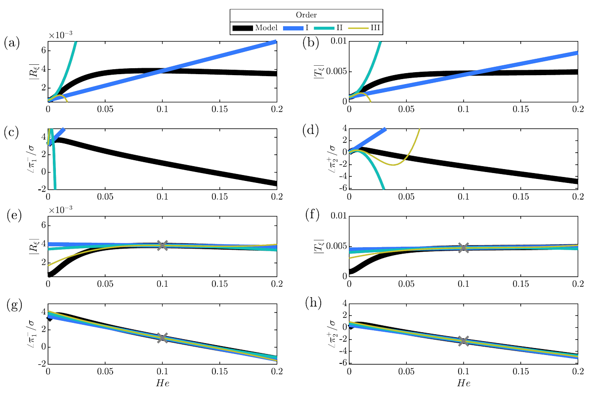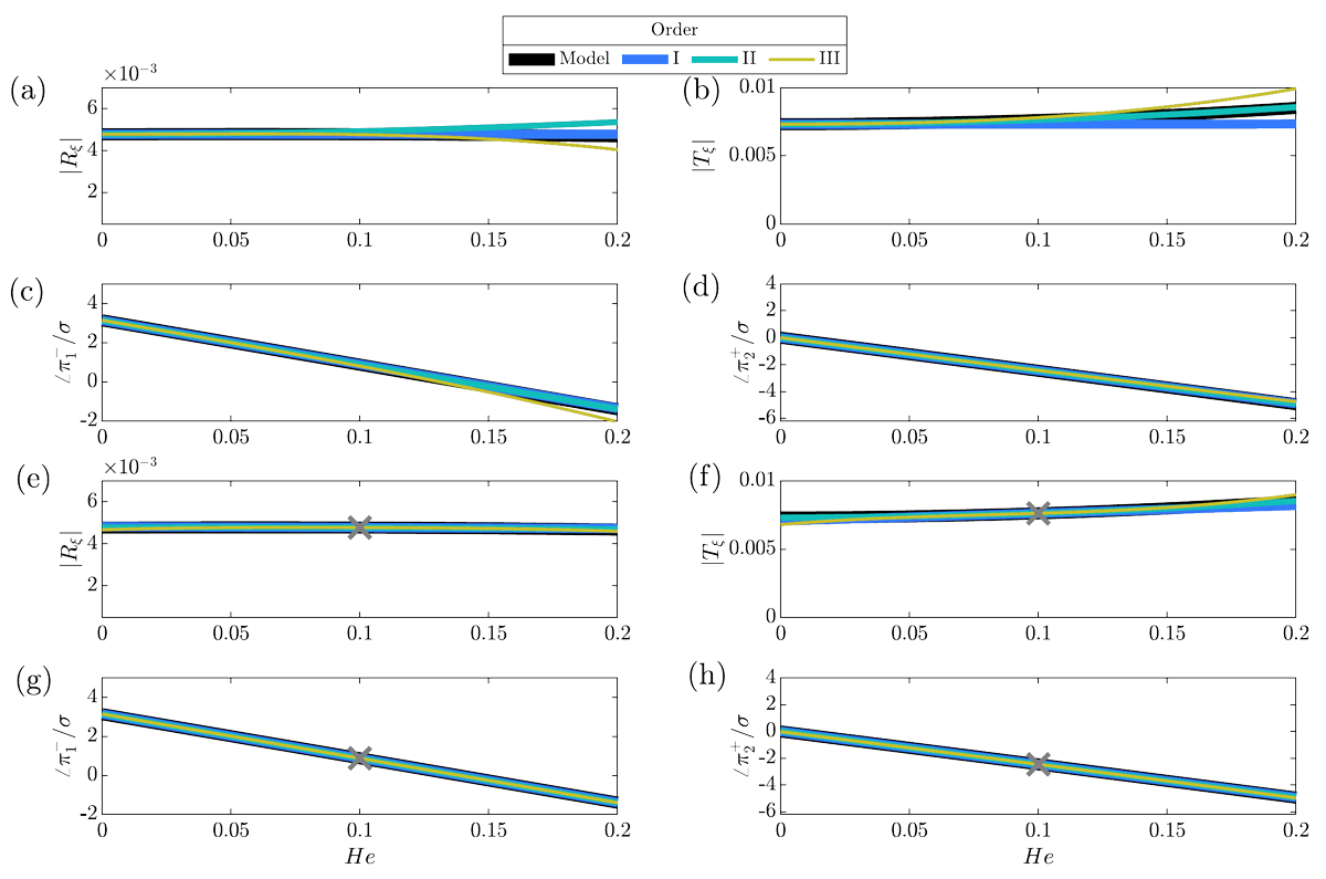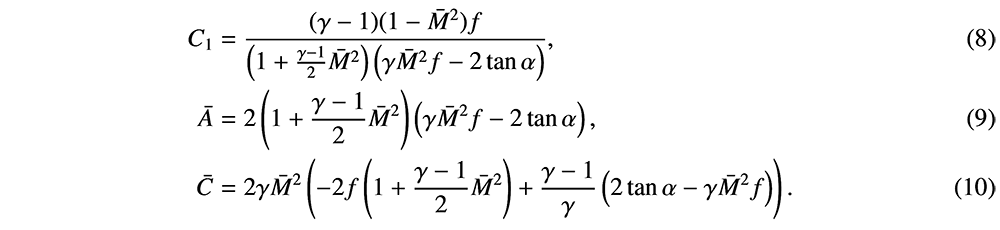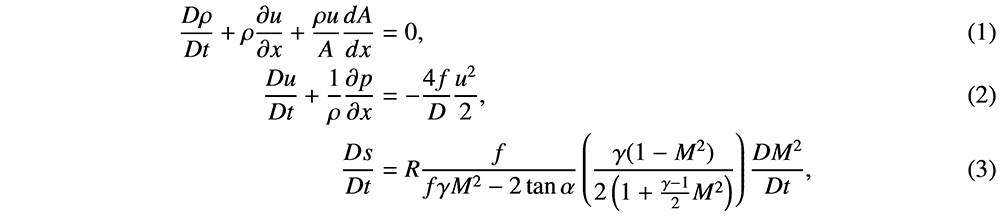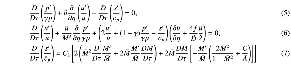A A A Volume : 44 Part : 2 Proceedings of the Institute of Acoustics Indirect noise is sensitive to the compact-nozzle assumptions Animesh Jain1, University of Cambridge, Cambridge CB2 1PZ, UK Luca Magri2, Imperial College London, London SW7 1AL, UK; University of Cambridge, Cambridge CB2 1PZ, UK ABSTRACT In aircraft engine combustors, incomplete mixing and air cooling give rise to flow inhomogeneities. When accelerated through the nozzle guide vane downstream of the combustor, these inhomogeneities give rise to acoustic waves. This is commonly known as indirect combustion noise. When these sound waves are reflected off the outlet and travel upstream of the combustor, they can lead to thermoacoustic oscillations. To predict indirect noise, models proposed in the literature assume the wavelength of impinging disturbances to be large with respect to the nozzle spatial extent (compact nozzle assumptions). However, in reality, the assumption might not hold; hence, a mismatch between the model and experimental results can be observed. The overarching objective of this study is to show that the acoustic transfer functions are sensitive to the compact-nozzle assumption. We show this on a realistic model of nozzle flow, which contains dissipation (non-isentropic) effects. First, we show that indirect-noise predictions are sensitive to a small change in the Helmholtz number for a nearly compact nozzle, particularly in the subsonic flow regime. Second, we show that modelling dissipation is key to mitigating the unphysical sensitivity of the compact-nozzle assumption. This study highlights the importance of the non-compact and non-isentropic assumptions for the accurate prediction of indirect noise transfer functions and thermoacoustic instability in aeronautical gas turbines. 1. INTRODUCTION Combustion noise is one of the major sources of aero-engine noise. On the one hand, the fluctuations in the unsteady heat release of the flame in the combustor give rise to the direct combustion noise [e.g., 1, 2]. On the other hand, the acceleration of flow inhomogeneities downstream of the combustor generates indirect combustion noise [e.g., 3, 4, 5, 6, 7, 8, 9]. Indirect combustion noise generated by an advected temperature inhomogeneity is referred to as entropy noise [3, 10, 11, 12], whereas, noise generated by an advected compositional inhomogeneity is referred to as compositional noise [9, 13]. These sound waves are perceived as noise when they are emitted downstream of the engine components. Importantly, when these sound waves reflect back to the combustor, they can contribute to the thermoacoustic feedback [e.g., 7, 8, 14, 15]. Hence, research efforts aim at estimating the noise transfer functions accurately with low order models. Marble & Candel (1977) [3] proposed a low-order model to predict entropy noise in a compact nozzle flow, in which the length of the nozzle is negligible as compared to the wavelength of the acoustic waves. Assuming an isentropic flow, the jump conditions were formulated to calculate the transfer functions [3, 16]. The analysis was extended to non-compact nozzles by Leyko et al.(2009) and Duran & Moreau (2013) [12, 17]. The non-compactness of a nozzle is measured using the Helmholtz number, He, which is the between the wavelength of the advected perturbations and that of the acoustic waves (He = ωL/c, where L is the characteristic nozzle length, ω is the perturbation angular frequency and c is the reference speed of sound). The compact nozzle assumption (He = 0) assumes the nozzle as a discontinuity in the flow, hence algebraic jump conditions are imposed across the nozzle to conserve mass, momentum and energy. For non-compact nozzles (He > 0), the equations become differential, which needs to be solved numerically or semi-analytically. All the above-mentioned studies assume the flow to be isentropic. However, factors such as flow recirculation and wall friction make the flow non-isentropic. The effect of non-isentropicity on indirect noise was shown experimentally by De Domenico et al. (2019) [18], who observed a mismatch between experimental observations and the isentropic model for a subsonic flow. Using conservation laws, Jain & Magri (2022) [19] developed a physical model to predict indirect noise in nozzles with dissipation, which was validated with experiments of the literature [18]. In this work, we (i) present the governing equations for entropy noise generation in non-isentropic flows; (ii) analyse the sensitivity of the entropic-acoustic transfer functions with respect to the Helmholtz number for isentropic and non-isentropic flows. The paper is structured as follows. Section 2 describes the mathematical model to predict entropy noise in nozzles with dissipation. Section 3 discusses the sensitivity of the nozzle transfer functions. Conclusions end the paper. 2. MATHEMATICAL MODEL We consider a single component, calorically perfect, ideal and adiabatic flow. The effects of dissipation (non-isentropicity) averaged over the nozzle cross-section are considered using the friction factor [19]. The cut-off frequency is considered sufficiently large to model the acoustics as quasi-one dimensional. The equations of conservation of mass, momentum and energy are [19], respectively where, u is the velocity, M is the Mach number, x is the nozzle axial coordinate (x = 0 at the inlet), p is the pressure, ρ is the density, s is the entropy, T is the temperature, R is the gas constant, γ is the heat capacity ratio, A is the cross-sectional area, D is the nozzle diameter, tan α is the spatial derivative of the nozzle profile (tan α = (1/2)(dD/dx)), and f is the Fanning friction factor. These equations are closed by Gibbs equation, where, cp is the specific heat at constant pressure. Figure 1: Nozzle schematic with nomenclature 2.1. Linearisation The acoustics are modeled as linear perturbations that develop over a steady mean flow. A generic variable is decomposed as (.) = + (