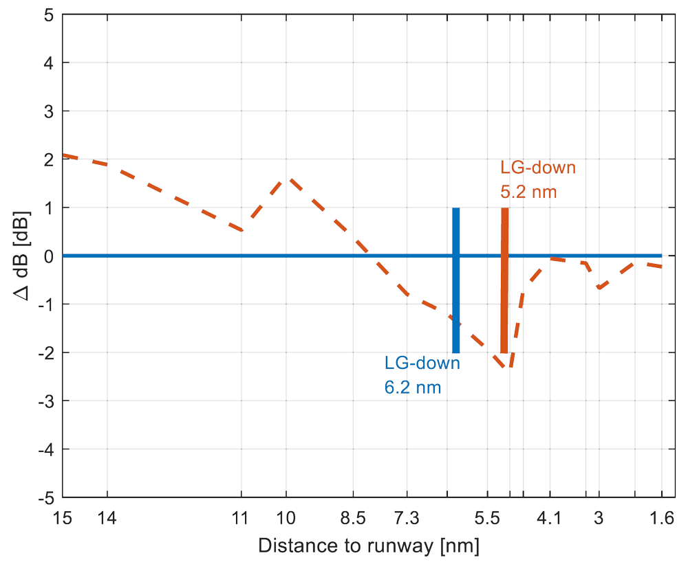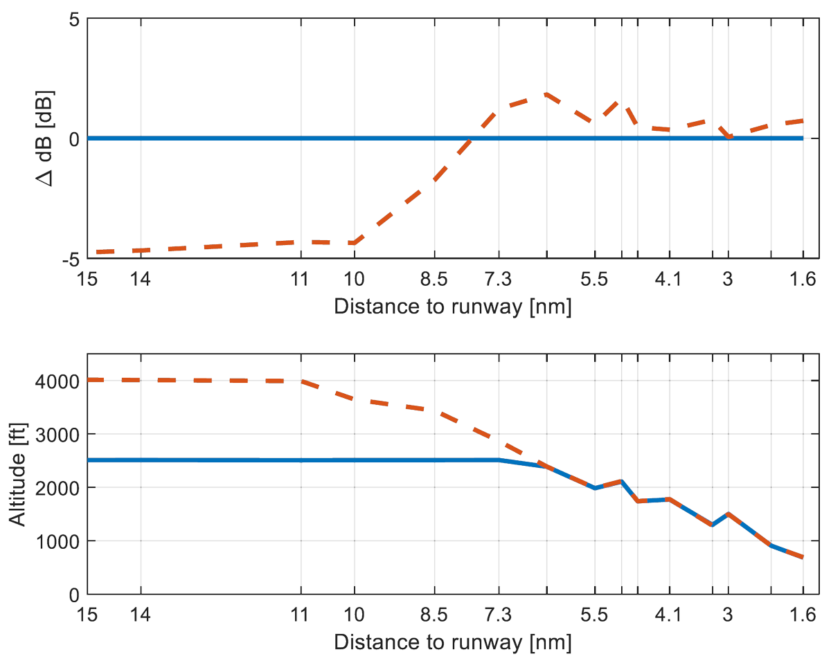 A A A Volume : 44 Part : 2 Proceedings of the Institute of Acoustics Aircraft approach noise trials Anders Johansson, Marcus Wallenberg Laboratory, Kungliga Tekniska Högskolan, SE-10044 Stockholm, Sweden Karl Bolin, Marcus Wallenberg Laboratory, Kungliga Tekniska Högskolan, SE-10044 Stockholm, Sweden ABSTRACT This article presents the results from a series of aircraft approach trials that were conducted with the aim to investigate noise reduction procedures within the boundaries of a normal ILS approach. The significant decline in air traffic at Stockholm Arlanda, that occurred during the pandemic meant that the empty airspace and the availability of grounded aircrafts could be utilized to perform controlled flights - something that would have been difficult to achieve during normal traffic conditions. The approach trials were performed by two Airbus A321, which alternately carried out interrupted landing procedures starting 17 nautical miles (nm) from the runway threshold. During the trials, the aircraft speed and configuration (high lift devises and landing gear) were varied according to a predetermined schedule. To capture these variations, flight data (FDR) were recorded while the noise on ground was measured at positions approximately once every nautical mile along the flight track. Results suggest that speed and configuration recommendations can be effective to reduce noise, especially for the final 7 nautical miles of the flight track. However, whether a low speed is to be advocated during the entire approach is currently unclear. 1. INTRODUCTION During the pandemic, many of the restrictions that were imposed reduced the mobility of people. This change affected life in many aspects, both good and bad. One of the more positive consequences were lower environmental noise levels, for example reduced road traffic noise in cities [1]. Of the various transport modes, air traffic was perhaps to an even larger extent affected by the restrictions and in Sweden, traffic decreased by 70% to its former levels. As devastating this may have been for aviation and businesses, this sudden change must certainly have been experienced as a relief by many people, especially those living near airports, as noise levels dropped drastically. In addition to provide temporal relief in form of lowered noise levels, this respite also offered opportunities that would be difficult to find under pre-pandemic circumstances. One such opportunity, provided by the empty air space and the availability of stranded aircraft and crews, was to conduct noise test flights. These types of flights are rare and very valuable because they provide high quality data. Data that can be used to improve source models and noise estimation methods. Such tools that will in come in handy when noise mitigate procedures have to be developed for the current and future aircraft fleets. As society recovers from the suites of the pandemic, air traffic is resuming and is likely to converge with pre-pandemic forecasts. Before the pandemic approximately 1.2 million people in Europe were exposed to aviation noise levels above 55 Lden [2]. With a 40% predicted increase in traffic intensity by 2040 [3], this figure is likely to increase. Moreover, this scenario stands in contrast to the WHO environmental noise guidelines from 2018 [4] as recommendations advocate greatly reduced noise levels, up to 10 dB lower than guideline values used in many European countries today, including Sweden [5]. Although great efforts have been made to build quieter aircrafts and develop approach procedures to reduce noise [6], aircraft noise remains an environmental problem and needs to be further addressed. The result in this article is part of a measurement project performed under the auspices of Center for Sustainable Aviation (CSA), at KTH. During one April morning in 2021,sixteen interrupted landing procedures were conducted with the standard aircraft type Airbus A321. The purpose with these flights was to create a database where noise levels, frequency content and sound direction dependence (directivity) can be described regarding the aircraft's speed through the air, use of leading edge and/or trailing edge flaps and landing gear. The results in this article describe the partial results on how the noise on ground, directly under the flight path, is affected by the; aircraft speed, approach height, and landing gear deployment. 2. Method 2.1. Flight Schedule The test flights were conducted with two Airbus A321-neo operated by Novair airlines. These were each powered by the same engine type high-pass turbofan jet engine the CFM Leap-1A. The interrupted approach procedures were flown as straight approaches starting 17 nautical miles (nm) from the runway threshold. Each approach was flown with either a different speed, approach altitude or configurational setting. The variation of these flight parameters was chosen to represent the natural variations of a normal ILS-approach, regarding maximum and minimum allowed speeds, approach altitude, and configurational setting. The speed profile was determined by the initial speed at 17 nm and was either 230, 220, 210 or 200 knots (kn). Throughout the approach, this speed difference was kept constant, so that there always was a10 kn difference between the speed profiles. The approach altitude was either 2500 and 4000 feet (ft) to mimic the difference of ILS height for runway 26 and 01R and L at Arlanda airport. The variation of configurational settings was mainly governed by at what distance the landing gears were deployed. Two distances were selected, 5.2 and 6.2 nm, to be representative of a late and early deployment phase. In total 16 interrupted approaches were conducted, which equates to 4 flights for each speed, and 8 flights for the two different approach heights and landing gear positions. 2.2. Measurement Locations A total of 31 microphones were used to capture the noise from the approaching aircrafts. Most of these