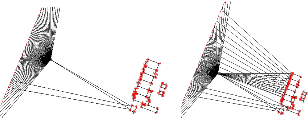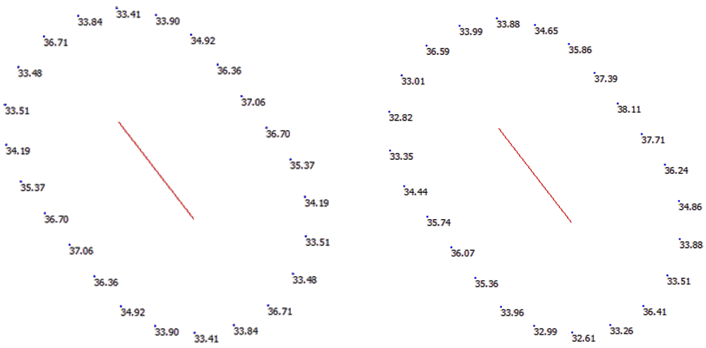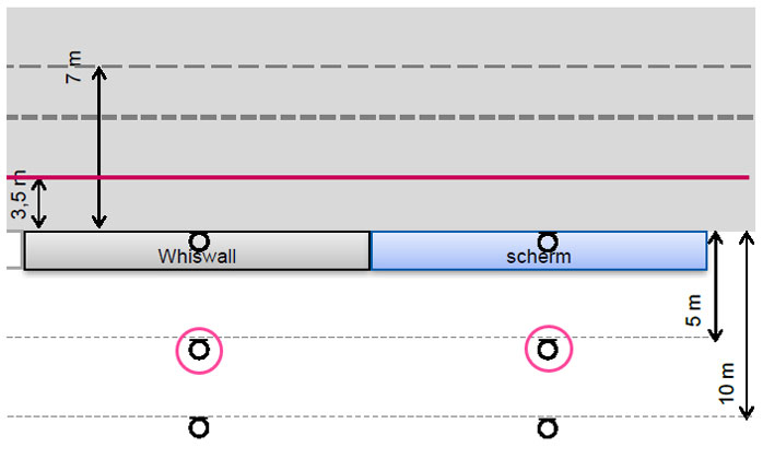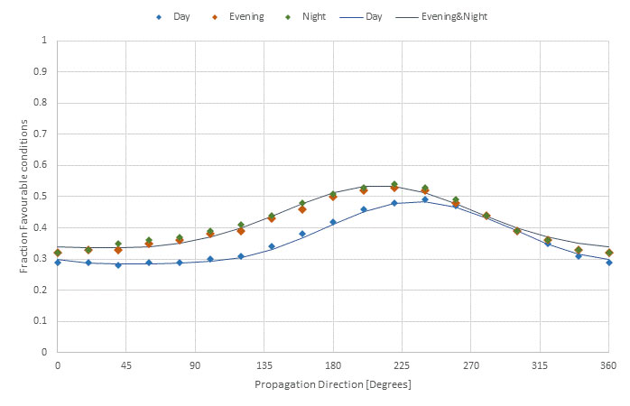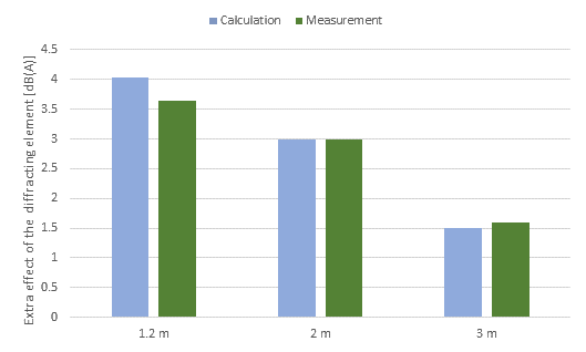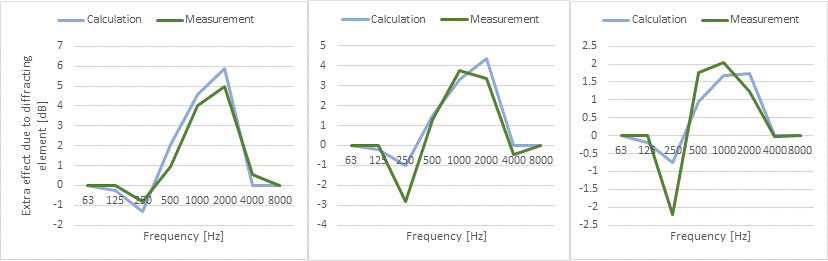 A A A Volume : 44 Part : 2 Proceedings of the Institute of Acoustics Enhancing the Dutch engineering calculation method Arnaud Kok1, National Institute for Public Health and the Environment (RIVM), Bilthoven, The Netherlands ABSTRACT With the advent of new legislation, we have taken the opportunity to take a serious look at the Dutch national calculation method. This method, which is similar to ISO9613-2, needed enhancements to allow for the increasingly complex world outside. Objects like leaning barriers or diffracting elements on barriers are seen more and more. The 3D datasets that are available for noise models are much more complex compared to the time, many years ago, when these calculation methods were conceived. To allow for these situations we have made several improvements to our method. Reflections can now occur in 3D. This allows for leaning barriers. We take the size of objects into account to determine the fraction of noise reflected. Based on the Cnossos method, a direction dependent meteorological correction is now used. Methods to account for diffracting elements in the ground and on barriers have been developed. Many of these enhancements could be used in other methods like CNOSSOS EU or other engineering calculation methods. In this paper we present the main changes to our method. 1. INTRODUCTION With the advent of new legislation, we have taken the opportunity to take a serious look at the Dutch national calculation method RMG. Because the way we asses noise is going to change, the impact of changing our method is relatively small even though the results produced will be different. This paper presentsseveral enhancementsfor calculating road and railway noise that we introduced. The changes were prompted by research into CNOSSOS-EU, by new developments of noise measures or by the availability of better or more detailed datasets used in noise models. 2. METEOROLOGICAL CORRECTION In CNOSSOS-EU calculations are performed for homogeneous and favourable conditions, where in ISO9613-2:1996 and the Dutch RMG (SRMII)[1] methods only favourable conditions are considered. These two methods use a general meteorological correction based on the distance between source and receiver (dp) and source/receiver heights (hs and hr). The formula used is shown in Equation 1: In the Netherlands the value C0 is set to 3.5 dB. There is no dependency on the propagation direction in this formula even though in the Netherlands the prevailing winds are form the south-west. An often heard complaint by the general public is that the calculated noise level is not representative because they live to the north-west of a source. Therefore their situation is much worse than the calculation suggests. When CNOSSOS-EU was implemented in our legislation a research project was carried out by TNO [2] to determine the percentage of favourable conditions in steps of 20 degrees in direction. It was found [3] that a function could be fitted so that smooth transitions between propagation directions are achieved. In Figure 1 we show the fit and the fraction of favourable conditions as a function of propagation direction. Figure 1: Fraction of favourable conditions as function of propagation direction where 0 degrees indicates northbound. A single fit was used for evening and night because the fractions are almost the same. Based on these fits the constant of C0 in Formula 1 was made equal to Cd for the day period and equal to Cen for the evening and night period. Cd and Cen are calculated according to formulas 2 and 3. The value 0.67 was introduced to make sure the average meteorological correction is equal to the same value of 3.5 that was used before. In figure 2 an example of the consequence of this change is shown for a simple line source: Figure 2: Noise levels with direction independent meteorological correction (left) and the new method (right). As is shown in Figure 2, a difference of up to 2 dB can occur depending if one looks to the northeast side of the line source or to the southwest. This change made to our method adjusts the results to align more with real-world situations and will help in the acceptance of results of noise models by the general population. 3. REFLECTIONS Datasets are getting more and more detailed. While a building would be modelled in the past by drawing a simple rectangle, nowadays datasets that contain much more detail are imported instead. An example of buildings with more detailed facades is shown in figure 3 Figure 3: More detailed building footprints (e.g. including bay windows and extensions) as incorporated in the Dutch National Building database [4]. In the old description of the calculation method it was not clear to software developers how to handle these type of building situations with respect to reflections. One approach is to have a reflection in an object just by looking at the propagation paths that crosses objects. Size of an object is no consideration in this approach. This approach is not according of RMG or ISO 9613, because there objects only reflect if a size criterion is fulfilled. The other approach is to consider each segment between two nodes as a separate object and then assess if this object is large enough. In this approach adding more nodes leads to fewer reflections. With many nodes, reflections can even be eliminated altogether. We now have clarified this in the RMG. A reflection will occur if the segment or combination of segments (this can also originate from different objects) is wide enough. In that case the reflection path is determined by the original segment that crosses the propagation path. In figure 4 the difference of using segments (the second approach) or combining segments (the new approach) is shown for the building set from figure 3. Both direct and reflected paths are shown. Figure 4: Propagation paths with reflections by assessing segments (left) and reflections by combining segments to assess size (right). In figure 4 it is clear t