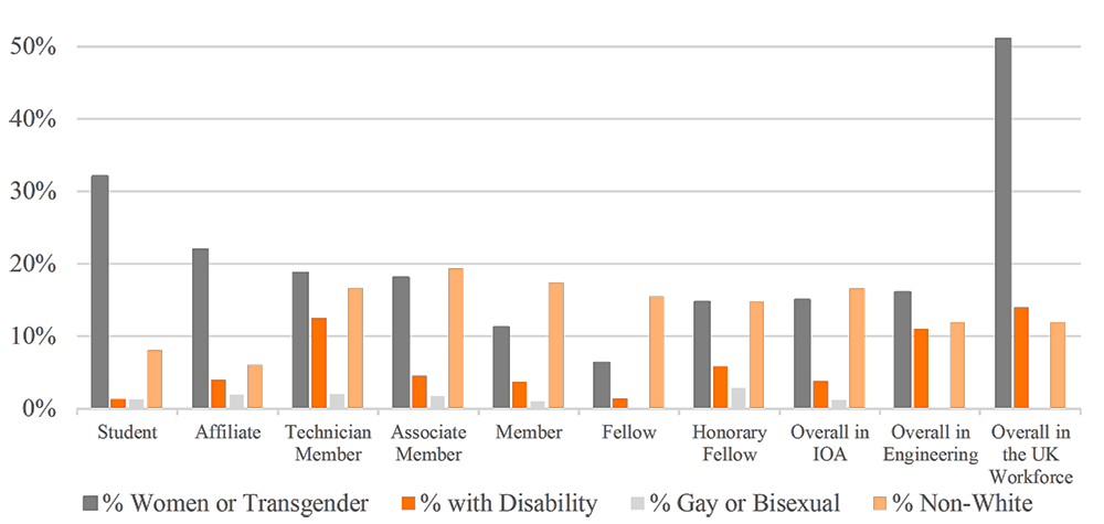A A A Volume : 44 Part : 2 Proceedings of the Institute of Acoustics Ideas for improving diversity and inclusion in acoustics Angela Lamacraft1, dBx Acoustics Ltd, Manchester, United Kingdom Susan Witterick2, dBx Acoustics Ltd, Manchester, United Kingdom ABSTRACT Diversity within the acoustics profession in the UK is gradually increasing, but there is still a significant need for improvement in terms of equality, diversity and inclusion (EDI). In order to address this need, the UK Institute of Acoustics (IOA) has established a working group to examine the current situation within the Institute and the wider profession in the UK. This paper provides an overview of the benefits of EDI as well as a summary of the current membership demographics of the IOA to provide a benchmark for improvement. Examples of ideas for improving the numbers and experience of underrepresented people in acoustics are discussed. 1. INTRODUCTION Equality, diversity and inclusion (‘EDI’) is a ‘hot topic’. Many organisations and individuals feel pressure to improve, but know few practical measures that can be taken. Before working at attempts to improve EDI, it is important to understand what it meant by these terms. In this paper, we define them as: Equality: All individuals are equally important and equally entitled to the opportunity to fulfil their potential. Diversity: The acoustics profession should comprise and represent members from all areas of society. Inclusion: All interested individuals in society must feel able to become acousticians and to participate at all levels of the profession. EDI is not about ‘not seeing’ differences: it is important to see, understand and, where appropriate, celebrate differences, whilst making sure that everyone is supported and empowered to participate to their full potential. In the UK, the Equality Act 2010 legally protects people from discrimination in the workplace and in wider society. It sets out nine protected characteristics (Government Equalities Office; Equality and Human Rights Commission;, 2015), but EDI goes beyond this: it is about making sure that everyone can achieve their potential. For example, many people in senior positions in acoustics in Europe and North America are outspoken, middle class, middle aged, white men. What about people who are just as good or even better technically, but are not as outspoken? Or people from working class backgrounds? 2. BENEFITS OF DIVERSITY AND INCLUSION 2.1. Collective Intelligence There are many benefits of inclusivity and diversity. Perhaps the most essential is the improvement of collective intelligence: people from different backgrounds will have had different experiences, leading to different inspiration and ideas and fewer blind spots (Syed, 2021). In a homogenous team, all members may be intelligent, but they all think alike. This is comforting; it makes the individuals feel smarter and validates their world view. However, the group is not collectively intelligent. If the group is made more diverse by tokenism, with people brought in purely to improve diversity, they may think differently to other members of the group, but their skills are not suitable for the problem in hand. A diverse team with the right skills comprises diverse people, experiences and thought, but has the right skillset for the current task. It is vital that organisations are psychologically safe to maintain diverse ideas. 2.2. Understanding Challenges Faced by Society If areas of society are unintentionally excluded from teams, the profession misses out on their experiences and viewpoints, which then affects the delivery of services to society, leading to an endless loop. Without diversity, there are likely to be questions that we do not even think to ask, let alone know the answers to. 2.3. Profitability Study after study demonstrates that diversity, inclusion and equality within an organisation improves financial performance (Hunt, et al., 2015) (Noland, et al., 2016) (Gompers & Kovvali, 2018) (Gomez & Bernet, 2019): the most diverse companies are now more likely than ever to outperform less diverse peers on profitability (Dixon-Fyle, et al., 2020). 2.4. Addressing the Engineering Skills Shortage Acoustics in the UK, like UK engineering professions generally, faces a skills shortage (The Royal Academy of Engineering, 2022), therefore encouraging people from all social and ethnic backgrounds into the profession increases the pool of available acousticians. People find work more rewarding when they are given flexibility to tailor their schedule to personal commitments, their workspace to their personal taste and their working methods to ones that best suit them (Syed, 2021). Young professionals often state work-life balance to be the most important factor for choosing an employer (Syed, 2021), and the longer employers keep fighting this the longer they will miss out on valuable talent. 2.5. The Moral Reasoning It is worth stating that treating everyone with respect and removing discrimination is morally the right thing to do. 3. CURRENT STATE OF DIVERSITY IN ACOUSTICS IN THE UK As of March 2022, the IOA had 3,070 members (Student, Affiliate, Technician, Associate, Member, Fellow, Honorary Fellow). Figure 1 provides an overview of diversity characteristics by membership grade. Figure 1: Membership Diversity Breakdown by Grade 3.1. Gender The overall IOA membership is 85% male and 15% female, with three transgender members. Engineering UK reported in March 2022 (Engineering UK, 2022) that women make up 16.5% of all engineers, suggesting that the membership balance in the IOA may be typical. Gender imbalance is reported to increase with seniority, which is certainly the case with the IOA with only 8% of Fellows and Honorary Fellows being female. Some international societies reported a higher proportion of female members: 20% in Norway and 52% in Turkey. 3.2. Disability Currently, 4% of the IOA membership declares some form of disabili