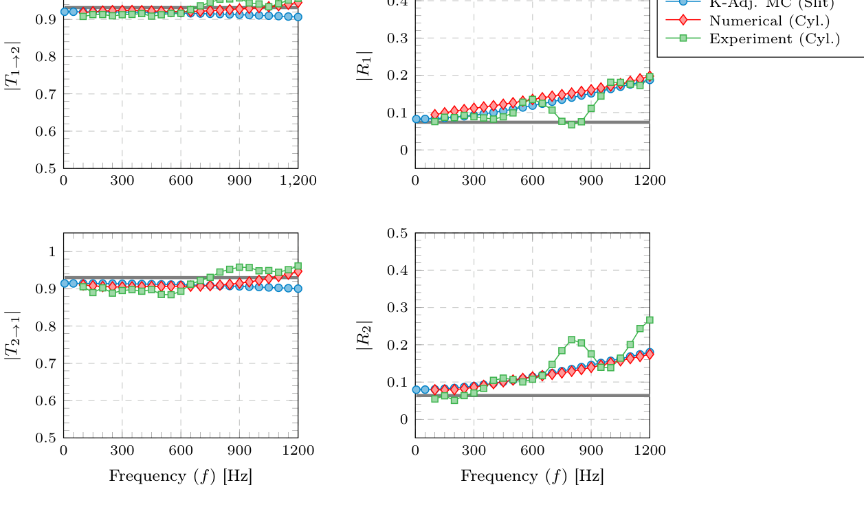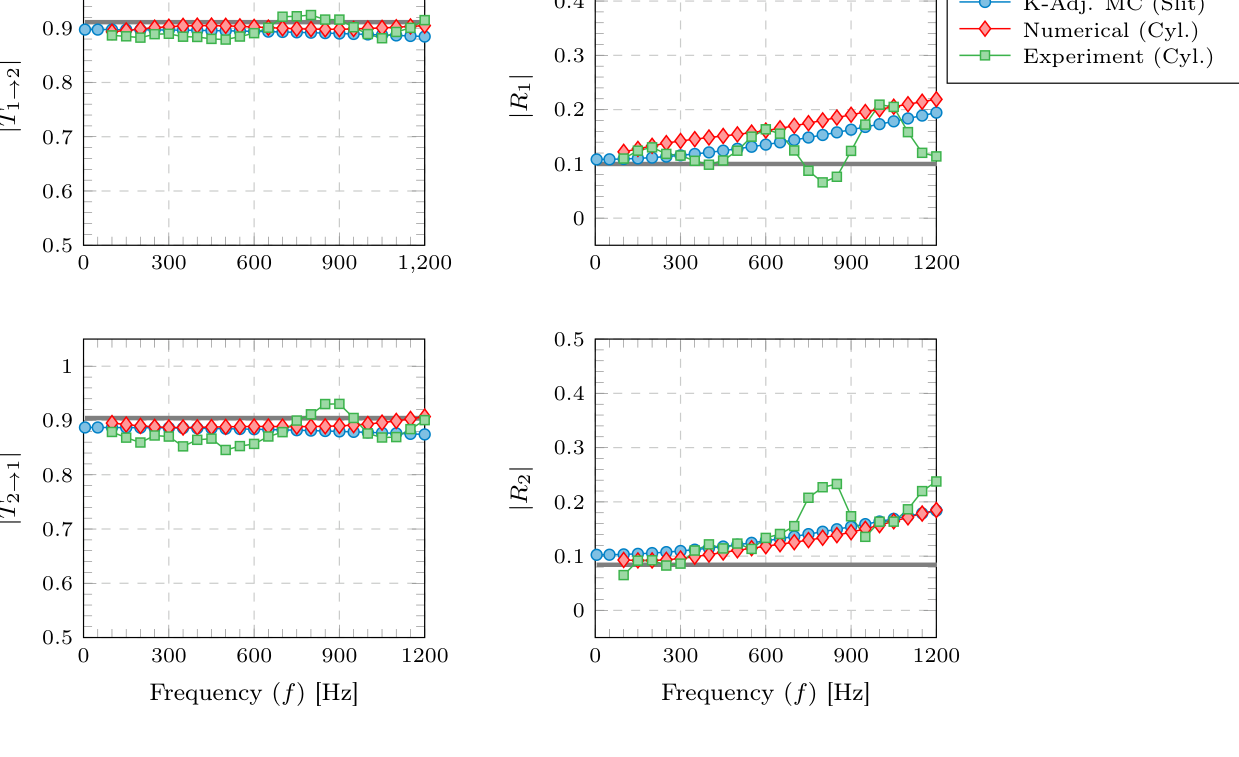 A A A Volume : 44 Part : 2 Adapting a slit model to determine the aeroacoustic response of tube rowsAswathy Surendran Department of Engineering Physics and Computation, Technical University of Munich, 85747 Garching, Germany School of Chemical and Physical Sciences, Keele University, Sta ff ordshire ST5 5BG, United KingdomWei Na Department of Mechanics and Maritime Sciences, Chalmers University of Technology, SE-41296 Gothenburg, SwedenCharles Boakes Department of Mechanical Engineering, Imperial College London, London SW7 2AZ, United KingdomDong Yang Department of Mechanics and Aerospace Engineering, Southern University of Science and Technology, Shenzhen, 518055, PR ChinaAimee S. Morgans 1Department of Mechanical Engineering, Imperial College London, London SW7 2AZ, United KingdomSusann Boij KTH Royal Institute of Technology, Marcus Wallenberg laboratory for Sound and Vibration Research, Dept. of Engineering Mechanics, SE-10044, Stockholm, SwedenABSTRACT Cylindrical tubes in cross-flow, like the ones found in heat exchangers, are excellent acoustic dampers and as such have the potential to mitigate thermoacoustic instabilities. Flow separation and vortex shedding downstream of the tube row are key to significantly enhancing sound attenuation. However, constructing an analytical solution for the aeroacoustic response of tube rows in cross-flow is very challenging owing to the complex flow structure, vortex shedding and coupling with acoustics. To overcome this, we propose the adaptation of a slit model for tube row acoustic scattering (aeroacoustic response) predictions at low Strouhal numbers. The slit model was modified such that the loss coe ffi cients across the slit and the tube row matches. The model is then validated against1 a.morgans@imperial.ac.uka slaty. inter.noise 21-24 AUGUST SCOTTISH EVENT CAMPUS O ¥, ? GLASGOW numerical predictions using Linearised Navier Stokes Equations and experimental measurements. The predictions for both magnitude and phase for transmission and reflection coe ffi cients agree well with the simulations and experiments.1. INTRODUCTIONHeat exchangers, much like flames, can influence the thermoacoustic behaviour of combustion systems like domestic boilers and industrial furnaces [1–3]. Thermoacoustic instability occurs when a positive feedback loop is established between the acoustic fluctuations and the unsteady heat release / absorption rates, and is characterised by large amplitude low frequency self-excited pressure fluctuations. When unchecked, these fluctuations can grow in amplitude leading to catastrophic consequences. In combustion units with heat exchangers, the thermoacoustic contribution is in the form of unsteady heat transfer fluctuations as well as acoustic scattering or damping at the tube rows. In the absence of mean flow, the acoustic damping at the tube row is mostly due to the viscous e ff ects and thereby is normally quite small at low frequencies that are relevant to thermoacoustics [4, 5]. However, in the presence of mean flow, the flow separation and the vortex shedding downstream of the tube row are key to significantly enhancing sound attenuation [6].Typically, heat exchanger tubes have circular cross-section. There are very few aeroacoustic models that describe the acoustic scattering at cylindrical tube rows in cross-flow. Though the Quasi-steady model developed by Surendran et al. [7] predicts the scattering behaviour of tube rows for low Strouhal and low Mach number flows, it lacks information on the frequency dependence and phase change across the tube row. To overcome this, we propose to adapt the existing Modified Cummings slit model [8] and ‘adjust’ it such that the scattering behaviour at the slits mimic that of a tube row. When the acoustic wavelength greatly exceeds the tube diameter (acoustically compact tube row), the tube row in cross-flow arrangement can be approximated to thin plates of rectangular cross-section that are separated by rectangular gaps, thereby giving an appearance of “slits” to oncoming flow. There is extensive literature on the aeroacoustic scattering of slits and perforated plates [9]. In combustion systems undergoing thermoacoustic instabilities, usage of slits in cross-flow have shown e ff ective damping or stabilising influence [8,10].The structure of the paper is as follows: in Section 2, we describe the acoustic models that exist in literature namely the Quasi-steady model (Section 2.1) and the modified Cummings model (Section 2.2). The proposed model is described in Section 3 while the validations along with discussions are provided in Section 4. Finally, we conclude the paper with Section 5.2. EXISTING ACOUSTIC MODELSIn this section, we briefly explain the existing models that are considered to develop the adapted slit model. These models are the Quasi-steady model for a tube row in cross-flow [7] and the Modified Cummings model developed for thin slits [8].2.1. Quasi-steady model In order to model the acoustic scattering in an array of circular tubes in cross-flow, we consider the geometry shown in Figure 1. The geometry consists of two half cylinders (or tubes) of diameter d , separated by a duct height h d . The gap height at the throat is denoted by h g and the open-area ratio η is defined as η = h g / h d . The bias flow velocity at the throat (gap velocity) is given by u g and the jet height downstream of the cylinder (after separation) is assumed to have a height h j . Through the method of image sources, it can be argued that such an arrangement will su ffi ce for an array of cylinders.Figure 1: Schematic for the flow domain in the Quasi-steady cylinder modelAs the name suggests, in the quasi-steady model, the unsteady terms in the conservation equations are neglected. It is assumed that the time-dependent acoustic perturbations of the flow are su ffi ciently slow and can be treated as quasi-steady [11]. This assumption is valid for small Strouhal numbers ( S t QS =