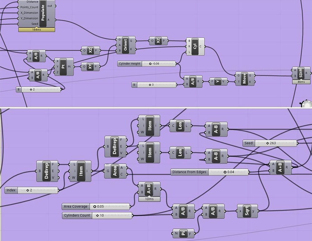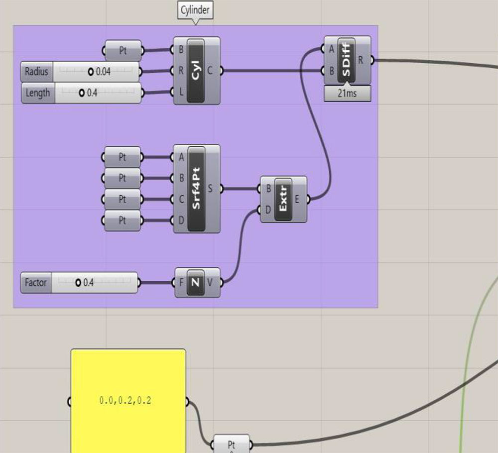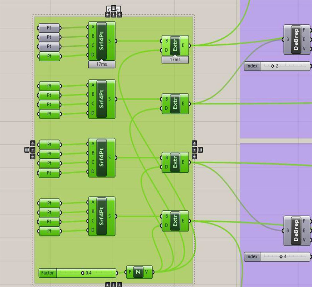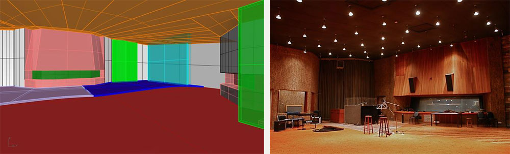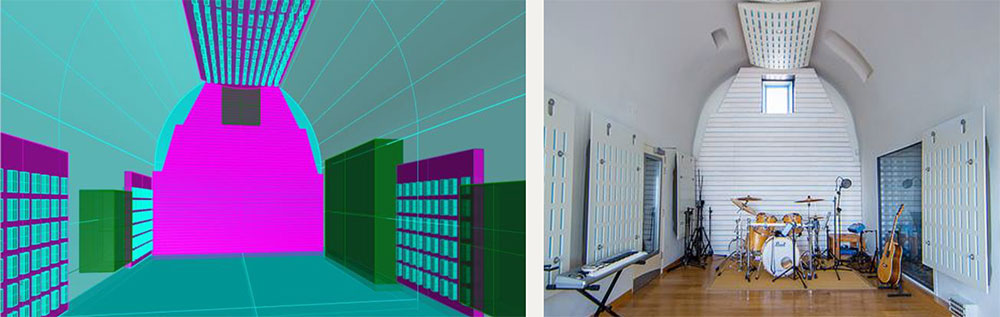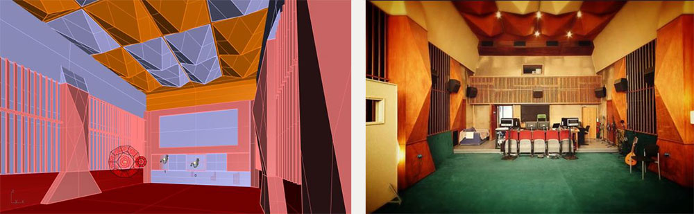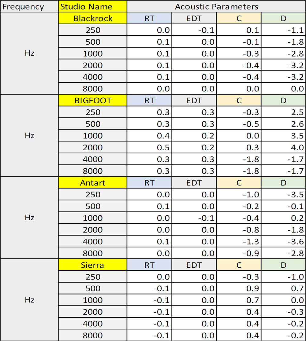 A A A Volume : 44 Part : 2 Proceedings of the Institute of Acoustics Parametric design of a modular acoustic volumetric unit for indoor recording spaces Stavros Tagios1, London South Bank University, London, UK Luis Gomez-Agustina2, London South Bank University, London, UK ABSTRACT Increasingly sound recording studios are demanded to host projects of different acoustic needs. However, their sonic character, effect of their contents and bulky conventional treatment solutions, usually remains unchanged. This paper reports a modular volumetric unit’s’s early-stage design, aimed at providing usage flexibility to a group of representative recording rooms. The versatility refers to acoustical (absorption and reflection), practical (volume and weight), and aesthetic aspects. The geometry and materials of the panel were derived parametrically through computer modelling software, by implementing interdependent and adaptable elements to one unit. Existing recording spaces were recreated into computational acoustic models and tested in two states. Simulations of the rooms’ acoustical behavior were run in turn, first with the original treatment, then with the panel replacing the treatment. The design goal was to have minimal differences in Reverberation Time, Early Decay Time, Clarity, Room Frequency Response for every room’s two states. Results showed the panel performing better in rooms with larger volume. Overall, the panel matched the original acoustic response and character of the rooms, while providing versatility when compared to traditional acoustic treatment solutions. The development of such a product would allow future studio users to fine tune the room’s performance according to their needs. 1. INTRODUCTION The acoustical character of a recording space is mainly the result of its fixed characteristics such as shape, size, surface materials, contents, and structure. The problem with such a fixed acoustical character is the inability to cater specifically to different acoustical needs, which often come when various projects are being hosted in the same space. The objective of this work was to create a parametric design strategy for a modular unit that allows the alteration of a room’s acoustical qualities, depending on the needs of the user. 2. ADAPTABLE ROOMS Variable acoustic solutions have been used to create transformable rooms. L’ Espace de Projection in IRCAM which stands for Institute for Research and Coordination in Acoustics/Music (Peutz, 1978), and can change its volume using a movable ceiling system and its surface properties by having a modular unit build in all surfaces but the floor. The Resonant chamber (Thun, 2012) uses an origami inspired system with layered triangular surfaces of four composite panels (reflector, electronic, electroacoustic, and absorptive). Τhat project, similar to its many predecessors (The adaptable room(Hunter, 2011), Variable Geometry acoustical domes(Serero, 2006)) use a “cloud” system, mounted on the space’s ceiling. The VRAS variable room acoustic system (Poletti 2003) is a digital method for adding reverberation to a performance room without changing its actual physical properties. Methods like this are important steps in making rooms adaptable. Lowering the ceiling and having large units (almost 1𝑚2) with rotating components works in L’ Espace de Projection but is difficult to apply to smaller spaces and was a space-specific solution. A cloud system gives a solution to changing the ceiling surface but not for the walls. And VRAS only digitally affects a space and does not alter its physical state. Some of the weaknesses of the solutions are that they are limited in production and their design would have to be changed in order to fit different rooms (geometry, placement etc.), which would require time and increase the cost of the end product. Finding a simple, versatile solution that could be fitted into any room and alter its acoustical qualities while remaining easy to assemble, manufacture and change depending on the user’s preferences would allow easy production and trustworthy results for a multitude of different occasions. 3. DESIGNING THE UNIT In the case of this work, the early-stage design of a modular unit (Figure 1) is carried out. The aim was for the modular unit to not be room specific, be able to be fitted in front of walls to replace vertical surfaces. Finally, it was a volumetric solution to changing the acoustics of a space and not a digital modulation. The early-stage design is an exploration of the options that will be most impactful on final performance (Badino, 2020). The modularity should allow for an optimal acoustical performance of a space even when one project is a single vocalist and the next is a five-piece loud rock band. This would enable the users to record the best possible sound at its source. Due to this being the first step towards making the unit, a key tool which offers flexibility, control over dimensions, quick evaluation of the choices that are made was parametrization (Peters, 2009). That way there was control over percentages of surface area, number of specific elements that the unit could possibly need and more advanced aid tools such as code were implemented into the design process. The unit had different properties on its surfaces that the user can choose which ones to face the interior of the room (absorption, reflection) to affect its qualities. Additionally, its shape and size allow for multiple units to be placed one after the other. That way the target surface areas of a room could be covered with the appropriate number of units so a modular surface is created which could affect a room’s acoustic performance. Figure 1: Panel wireframe view (left) and shaded view (right) 3.1. Geometry The basic modular unit was made cubical so multiple units can be placed on top of each other vertically (Fig. 2) as well as next to each other horizontally (Fig. 3). The exterior was a sh