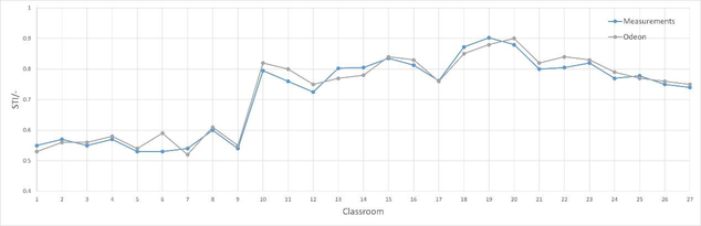 A A A Volume : 44 Part : 2 A prediction model of speech transmission index based onreverberation time in the non-native linguistic contextDa Yang 1 Key Laboratory of Cold Region Urban and Rural Human Settlement Environment Science and Technology, Ministry of Industry and Information Technology, School of Architecture, Harbin Institute of Technology. Qi Meng 2 Key Laboratory of Cold Region Urban and Rural Human Settlement Environment Science and Technology, Ministry of Industry and Information Technology, School of Architecture, Harbin Institute of Technology. Yue Wu 3 Key Laboratory of Cold Region Urban and Rural Human Settlement Environment Science and Technology, Ministry of Industry and Information Technology, School of Architecture, Harbin Institute of Technology. Fangfang Liu 4 Key Laboratory of Cold Region Urban and Rural Human Settlement Environment Science and Technology, Ministry of Industry and Information Technology, School of Architecture, Harbin Institute of Technology.ABSTRACT High speech intelligibility is an essential requirement for classrooms, especially in relation to non-native students. The speech transmission index (STI) was proved as the most relevant acoustic parameter to assess speech intelligibility. In this paper, twenty- seven classrooms for non-native teaching purposes were selected for investigation. Physical acoustic measurements were conducted in these classrooms, and numerical simulation verification was determined by ODEON version 16. The relationships between STI values and RT values were fitted based on non-linear curve fitting regression models. In this paper, three primary forms of non-linear curve fitting regression models were employed for predicting curves. A logarithmic function was selected as the basic regression equation to describe the effects of RT values on STI1 da.yang@hit.edu.cn2 Corresponding author: mengq@hit.edu.cn3 wuyuehit@hit.edu.cn4 liufangfang@hit.edu.cnworm 2022 values. The results showed that STI values increase with the decrease of RT values for all age groups. From the verified results, it was possible to propose the predictive equation that presents the best accuracy in predicting the experimental data for non- native teaching purposes. The prediction model is expected to estimate STI values by using RT values during the early design stage in a non-native linguistic context. 1. INTRODUCTIONGood acoustic quality is an essential requirement for classrooms to guarantee verbal communication between teachers and students [1]. Evidence shows that poor room acoustics, such as excessive noise and reverberation, reduce speech intelligibility in a classroom and interrupt verbal communication between teachers and students [2]. Speech intelligibility is highly correlated with classroom acoustic conditions. Previous studies revealed the effects of various acoustic descriptors (e.g., speech transmission index STI, clarity C80, definition D50, signal-to-noise ratio SNR, useful-to-detrimental energy ratio U50, etc.) on speech intelligibility [3-12]. Among these, RT and STI are the most representative acoustic parameters to assess acoustic properties in classrooms. STI is regarded as the most suitable parameter to evaluate speech intelligibility by only one index [13]. RT is well known and can be easily estimated with simple equations, especially in the early design stage for architects. In accordance with the formal analysis, it is useful to summarize prediction equations to estimate STI values in an early design stage. Previous studies proposed empirical equations to predict STI values based on reverberation times in the native linguistic context. Escobar and Morillas [14] conducted t acoustic measurements in 17 Spanish classrooms. The authors proposed a linear and a logarithmic regression equation to describe the relationships between RT and STI. Nowoswiat and Olechwska [15] investigated an experimental and numerical analysis to obtain a quick determination of the STI by knowing the RT of the room in Poland. The STI was described using a logarithmic function with the room RT. Galbrun and Kitapci [16] are investigating the accuracy of the speech transmission index as dependent on reverberation and signal-to-noise ratio. Leccese et al. compared the most significant equations proposed in the literature using the RT and STI values obtained from a measurement campaign at the School of Engineering of the University of Pisa on a sample of 11 educational rooms [17]. The acoustic properties of classrooms are essential to quickly assess their acoustic condition, especially speech intelligibility in the architecture design stage. The mentioned literature attempted to estimate STI, which is most correlated to speech intelligibility by RT values for its easy measurements in their native linguistic context. However, with the increased interaction between multilingual education, the importance of speech intelligibility in non-native language teaching draws more attention to architecture design. This paper takes classrooms in Hong Kong as caseworm 2022 studies to propose a prediction model of STI based on RT in non-native linguistic. It is due to English as the second language among local citizens being widely used in education. The results are expected to give suggestions to architects for designing non- native teaching classrooms. 2. EXPERIMENTAL METHOD2.1 Classrooms for investigation In the current study, 27 classrooms were selected in a middle school (9 classrooms) and a university (18 classrooms) in Hong Kong as the objectivities. The selected middle school classrooms were not decorated with acoustical treatment (lime walls, cement floors, etc.). In comparison, the selected classrooms in the university were well decorated with acoustical treatment (sound absorptive panels, sound absorptive ceilings, floor isolation mat, etc.). All the classrooms were rectangular in shape, and the temperature in Hong Kong during the investigation was around 27 𝐶 