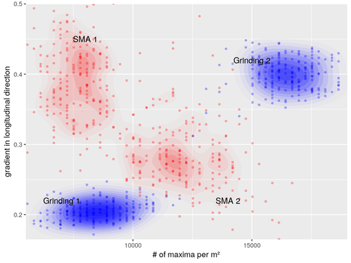 A A A Volume : 44 Part : 2 Using 3D road texture measurements for tyre / road noise modellingBernhard Baumgartner 1 , Reinhard Wehr 2 , Andreas Fuchs 3 , Johannes Ruisz 4AIT Austrian Institute of Technology GmbH Giefinggasse 4, 1210 Vienna, AustriaABSTRACT When investigating the generation of rolling noise, profound knowledge of the tyre / road interaction is inevitable. Research projects addressing the road surface influence on the noise generation are commonly based on standardized road surface texture parameters e.g. mean profile depth or spectral analysis of surface profiles. Such quantities are calculated from line texture measurements or equally sized parts of 3D-road surface samples. AIT has recently developed a high-speed continuous 3D road surface texture scanner which provides heightened spatial information down to 60 µ m. This allows the determination of a multitude of additional parameters of road surface geometries. In this paper, statistical analyses of the variability of 3D texture parameters on real road sections, as well as basic statistical models to investigate correlations between texture parameters and coupled CPX measurements will be described.1. INTRODUCTIONRoad tra ffi c noise can be seen as main source of noise pollution in Europe [1]. One key aspect of the road noise generation is the emission of tyre / road noise, which is the dominant source in a wide speed range from ca. 40 to 130 km / h [2]. Sustainable tra ffi c noise reduction can therefore be achieved by optimizing the tyre / road contact, where di ff erences in noise emission of roughly 10 dB can be observed for varying road surfaces.In order to understand the di ff erent noise generation mechanisms of the tyre / road interaction detailed information regarding the rolling noise obtained via the CPX method [3], as well as the texture of the road surface is of great interest. Line texture measurements only contain rudimentary information to describe the geometric properties of the contact zone for isotropic surfaces, e.g. asphalt conrete, EACC and SMA top layers. Considering anisotropic road surfaces, e.g. diamond grinding structures, three-dimensional texture measurement systems gain more importance. This method provides detailed quantitative information of parts of the road surface and allows subsequent application of physical or statistical modelling of the tyre / road interaction.1 bernhard.baumgartner@ait.ac.at2 reinhard.wehr@ait.ac.at3 andreas.fuchs@ait.ac.at4 johannes.ruisz@ait.ac.ata slaty. inter.noise 21-24 AUGUST SCOTTISH EVENT CAMPUS O ¥, ? GLASGOW Figure 1: Example of a 3D texture patch with dimensions of ∼ 10 x 10 cm. The surface height is color-encoded (green to red). The texture can be divided in two triangles (blue line), where in each triangle the local maximum is determined (blue crosses) for an adapted MPD calculation.2. 3D TEXTURE MEASUREMENTSTo further enhance the possibilities to study e ff ects in the tyre / road contact, AIT has recently developed a high-speed 3D road texture scanner which continuously records the road surface with a resolution of 60 µ m. This line-scan stereo vision system captures the texture as well as the depth of a scanned object and is mounted in front of the CPX measurement tyre, thus ensuring that the investigated surface texture can be interpreted as the input function of the tyre.The system consists of two inclined line-scan cameras and an illumination module. The optical axes of the setup are verged to obtain an enhanced overlapping region of ca. 10 cm, which corresponds to a line length of 2048 pixels. Given the two images from these cameras that were taken from slightly shifted viewpoints (resp. angles), a 3D model can be estimated by determining pixel correspondences between the images [4,5].2.1. Texture parameter calculations In contrast to line texture measurements, where various texture parameters are defined and standardized (see [6], the utilization of 3D textures is a relatively new field in road research. Therefore, no set of standard descriptors is commonly used for characterizing di ff erent road surfaces. While line texture parameters may be computed via a single line extraction of the 3D surface, the parameters can also be adapted in order to represent similar and comparable quantities. For instance, the mean profile depth (MPD) can be determined based on dividing the surface and identifying the local maxima in the surface segments (see Figure 1). Here, all pre-processing steps as performed in the determination of a line-texture based MPD (zero-phase bandpass corrections, outlier and missing value detections, etc.) need to be considered prior to obtaining a well-defined surface descriptor.Next to the adapted calculation of common texture parameters, new sets of surface descriptors can be established. Examples of parameters specific for grinding textures are depicted in Figure 2. In the left subplot, the bars of the grinding structures were identified and marked with green frames. Additionally, fractures in the bars can be detected (green rectangles in the right subplot). Both algorithms are based on convolutions with customized kernels.Using image processing techniques as well as artificial intelligence, a variety of parameters for the description of road surfaces can be established. These might be based on purely geometric features Figure 2: Example of a diamond grinding texture. Using signal and image processing techniques, the bars of the grinding (green framed areas in the left Figure) as well as structural defects (marked with green squares in the right Figure) can be identified .Figure 3: Example of the cavity volume between the road surface and a deformed tyre based on a hertzian contact model.of the road surface, but further allow the application on calculations towards rubber deformation in the tyre / road contact. An example of such a descriptor is shown in Figure 3: the rubber deformation based on a hertzian contact model is 