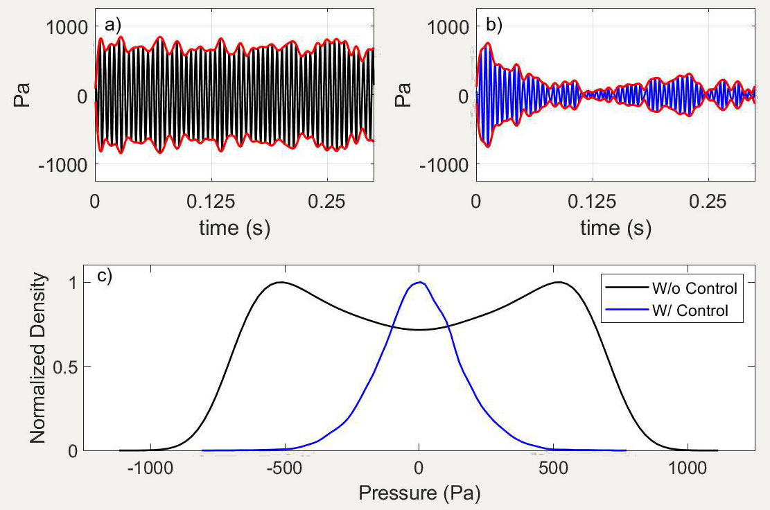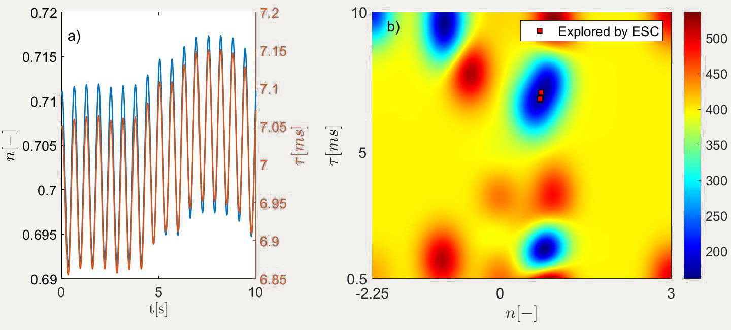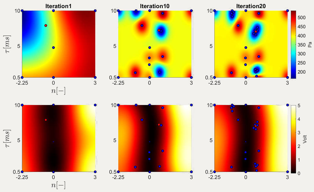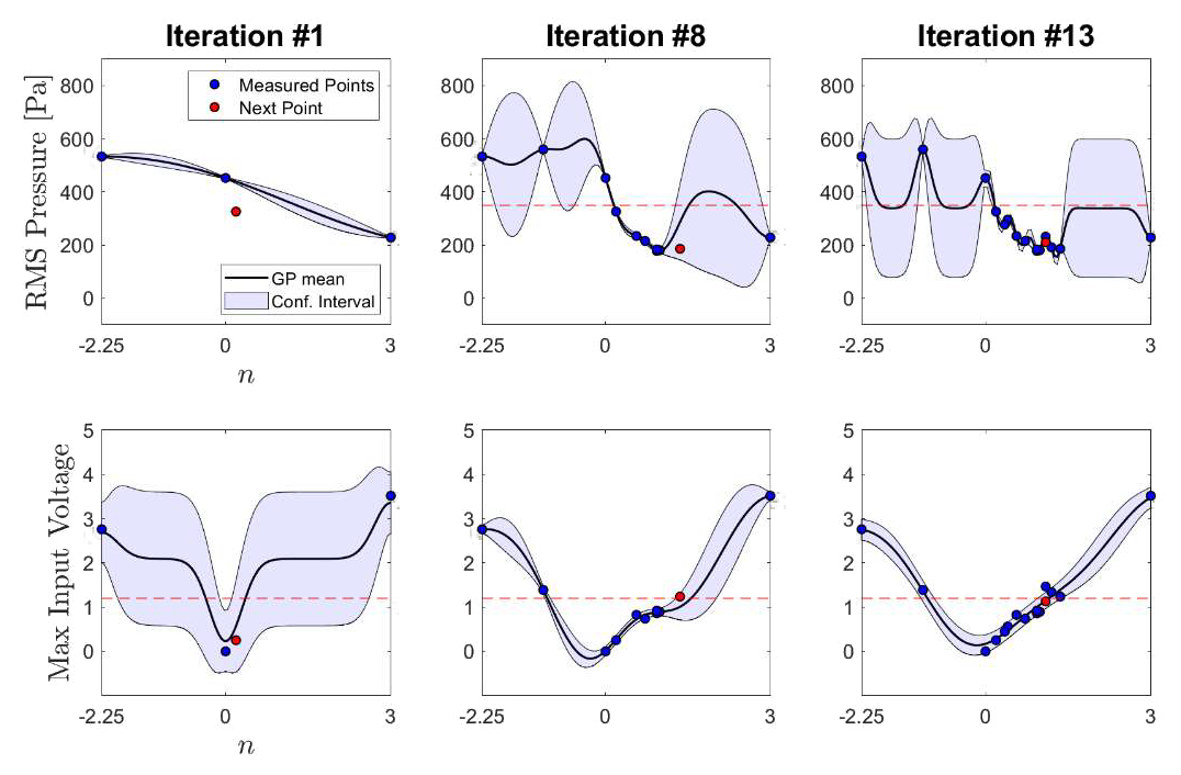 A A A Volume : 44 Part : 2 Proceedings of the Institute of Acoustics Bayesian optimization based adaptive controller for thermoacoustics instability Bayu Dharmaputra1, ETH Zurich, Zurich, Switzerland Alain Williner2, ETH Zurich, Zurich, Switzerland Bruno Schuermans3, ETH Zurich, Zurich, Switzerland Nicolas Noiray4, ETH Zurich, Zurich, Switzerland ABSTRACT Thermoacoustics instability is one of the factors that limits the operational range of gas turbines. Both active and passive control strategies have been developed to suppress thermoacoustic instability. Active control strategies can adapt to the operational condition of the gas turbine and hence providing a wider effectivity compared to the passive control strategies. However, it remains a chal-lenge on how to best optimize the control parameters. In this work, we propose an adaptive control strategy by using Gaussian Process Regression with a modified Safe-Optimization (SafeOpt) algo-rithm. The main benefit of the algorithm is it can safely explore the parameter space and minimizing the cost function simultaneously. The performance of the algorithm in suppressing the thermoacoustic instability is experimentally demonstrated by stabilizing a turbulent combustor with loudspeakers actuation equipped with a gain-delay ( n -t ) controller. It is found that the proposed algorithm can safely optimize both n and t parameter in under 20 iterations. The final iteration is then fed to the ordinary Extremum Seeking Controller (ESC) to further optimize the parameters around the optimum point. 1. INTRODUCTION Future gas turbine combustor for power generation requires high fuel flexibility to be competitive in the market [1]. However, gas turbine combustors are prone to thermoacoustics instability. There are multiple mechanisms that can lead to thermoacoustic instabilities, the readers are advised to look at [2]. To be operatable at different conditions, ideally, a combustor needs to have a reasonably wide range of thermoacoustic stability. One way to do it is to apply an active control strategy [3]. To be able to stabilize the system at different operating conditions, the controller needs to be adap-tive. One of the most popular adaptive control algorithms is the extremum seeking controller (ESC). A successful implementation of ESC in combustion application has been done in [4].However, ESC has a disadvantage of being trapped in a local minimum and it is not straight forward to implement safety constraint into the algorithm. Recently, an adaptive control strategy based on Bayesian optimization has been developed [5]–[7]. It has the advantage of being able to implement safety constraints and at the same time optimize the control parameters. In this work we focus on optimizing the control parameters of our gain-delay controller to minimize the root mean-squared (RMS) of pressure fluctuations (objective function) in the combustor and also keeping the safety constraint satisfied. 2. Methods The safety constraint in our case is the maximum voltage applied to the loudspeaker. Note that in principle the constraint can be some other quantities, such as NOx and CO level at the exhaust. We denote the objective function and constraint function as j(a) and g(a)respectively, where a is the vector of parameters, which in our case is the gain (𝑛) and delay (𝜏) parameter. Both j(a) and g(a) are not known a priori, and hence the goal is to iteratively optimize and explore the safe parameters within a reasonable number of iterations. Both functions are approximated with a Gaussian Process Regressor, and it will be further explained in the next subsection. 2.1. Gaussian Process A Gaussian Process (GP) can approximate unknown function based on a nonparametric model [8]. It works by assuming that the function values of j(a) (and consequently g(a)) with different a jointly gaussian. A GP is described by a prior mean function and covariance function 𝑘 described as: Where ai and aj are two different points on the parameters space. The covariance or the kernel function encodes the smoothness and the rate of change of the reconstructed function which are con trolled by the value of 𝜎1 and l. The GP framework can predict the function value 𝑓(a*) at arbitrary a* based on past observations by using the bayes rules. The posterior mean and covariance then become: Where 𝑓n is the vector n observed values, 𝜎 is the standard deviation of the observation noise, kn (𝑎∗) is the covariance vector between the new point 𝑎∗ and the observed data points, and Kn is the covariance matrix of the observed data points. 2.2. SafeOpt Algorithm The optimization scheme is based on the SafeOpt algorithm presented in [6], [7]. The GP was trained on seven initial data points. The parameter domain was divided into a 100-by-100 grid. This first iteration of the GP was used to predict the mean objective function values and their standard deviation at the parameter combinations at the grid points. The predicted mean and standard deviation define the upper and lower bounds, u(a) l(a) and shown in equation (4) and (5) respectively, of the expected objective function values. Together with the safety threshold Jmax the so-called safe set was calculated. In this case, a minimum of the cost functions is searched. If ug (a) is smaller thanJmax , the corresponding parameter combination is part of the safe set. In the next step, the minimizer set is calculated. The points in the safe set are assessed to verify whether their lj (a) is smaller than the minimum uj (a) of all the grid points in the domain. If this is the case, the point is part of the minimizer set, otherwise the point is further assessed for the expander set. Hence, if the remaining points have a 𝜔 = u(a) - l(a) which is larger than the maximum standard deviation found in the minimizer set, then they become a part of the expander set. The union of the minimizer and expander set defines the set of new possible exper