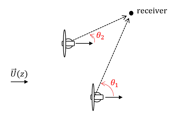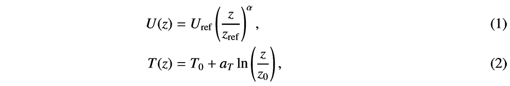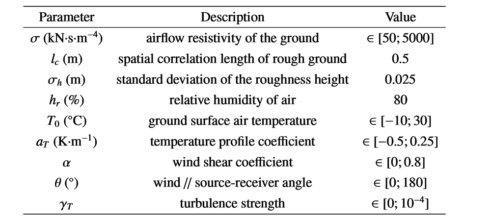A A A Volume : 44 Part : 2 SB - 19/1/26SB - 19/1/26Proceedings of the Institute of Acoustics Modeling the uncertainties of wind farm noise predictions Bill Kayser1, David Ecotière, UMRAE, Cerema, Université Gustave Eiffel, Strasbourg, France Benoit Gauvreau, UMRAE, Université Gustave Eiffel, Cerema, Bouguenais, France ABSTRACT Representative predictions of wind turbine noise require to accurately model the main mechanisms and characteristics of acoustic emission (i.e. extended sound source with aeroacoustic noise generation) and acoustic propagation in outdoor environment (i.e. ground effects and atmospheric properties). As these phenomena fluctuate over time and space, it leads to great uncertainty on Sound Pressure Level (SPL) estimated at local resident buildings/facades. Such uncertainty is not yet properly quantified by engineering noise prediction models. Thus, this paper presents a modeling tool developed in the framework of the French project PIBE, which aims at quantifying the SPL uncertainty involved in wind farm noise predictions. Ultimately, this modeling tool will be freely available online and will help to better understand the risk of noise pollution at each stage of a wind farm’s life, in order to guarantee compliance with the regulatory requirements concerning the exposure of local populations. 1. INTRODUCTION The objective of this paper is to present a method of uncertainty quantification of SPL spread in presence of a wind turbine farm. To do so, the estimation of SPL at a receiver takes into account the aeroacoustic sources at the blades of the wind turbines, [1–3], as well as propagation phenomena between thoses sources and the receivers, i.e. meteorological and ground effects. Such environmental phenomena fluctuate over both time and space, which lead to variable SPL at long range [4–7] and thus to significant SPL uncertainty [8–10]. Previous works already focused on sensitivities of environmental parameters in SPL estimation (i.e. determine the parameters that drive uncertainty) [11–13], as well as quantifying SPL uncertainties induced by a single wind turbine for downwind conditions only [14]. This work intends to go further by considering a complete wind turbine farm, even for upwind conditions, which is a key step toward obtaining representative assessments of wind turbine noise. The methodology consists in modeling different scenarios thanks to a stochastic technique based on quasi-Monte Carlo sampling. This allows one to determine the distribution of the SPL induced by the probability distribution of uncertain environmental parameters (e.g. wind properties, ground properties, etc). In practice, thousands of simulations may be required to conduct such uncertainty analysis, which leads to prohibitive calculation costs. As done in [14], one solution is to replace the initial wind turbine noise model by a metamodel that reproduces the expected SPL with highly reduced computational costs and small errors in the SPL estimation. Thus, the metamodel is built to determine the SPL spread at receivers locations in presence of a single wind turbine. Then, the methodology is to conduct uncertainty calculations for each wind turbine of the farm, in order to assess the overall SPL spread at receivers locations near the wind turbine farm. 2. THE WIND TURBINE NOISE MODEL 2.1. The Source Model The moving monopoles approach [15] is used to model the noise emitted by the wind turbine. It consists in a strip theory that splits each blade into segments of variable chord and span in order to be able to consider a non-uniform incidence flow along the blades. The angle-dependent sound power level of each segment is obtained using Amiet’s theory as detailed in [16]. An attenuation term is used to account for the propagative effects that occurs between the wind turbine and far field receivers. The attenuation term is calculated using a propagation model based on the wide angle parabolic equation (WAPE), derived without the effective sound speed approximation [17]. The summation of the contributions from all blade segments is then performed at the receivers by assuming that all the contributions are uncorrelated [18]. The wind turbine has a nominal electrical power of 2.3 MW, a rotor diameter of 93 m, a hub height of 80 m and three blades of 45 m length. The speed of rotation increases linearly from 6 rpm at the cut-in wind speed of 4 m/s measured at the hub height, to 16 rpm at the wind speed of 12 m/s. The reader may refer to [12–14] for details about the wind turbine noise modeling. 2.2. Atmospheric Flux Profiles The refraction of the acoustic waves is taken into account through the wind vertical profile U(z) and temperature vertical profile T(z) : where Uref (m/s) is the wind speed at height zref (m) above ground level (typical hub height), z (m) is the height above the ground, α is the wind shear factor, T0 (K) is the air temperature at the ground surface, aT (K/m) is a refraction coefficient that determine the influence of temperature profile, and z0 = 0.13hv (m) is the roughness height that depends on vegetation height hv (m). 2.3. Atmospheric Absorption The atmospheric absorption is taken into account in accordance with the standard [19] that depends on air temperature T0 (K), atmospheric pressure patm (Pa) and the relative humidity of air hr (%) chosen here as 80 %. 2.4. Atmospheric Turbulence Scattering Althought the WAPE model allows for explicitly modeling turbulence scattering by perturbing the acoustic refractive index [20], a large number of realisations (typically 50-100) are needed to end up with SPL estimation. The computational cost of this technique is too high for uncertainty analysis purpose. It was chosen to correct the SPL attenuation in refracting atmosphere that neglect turbulent scattering (SPLnoscatter), by adding a scattering contribution (SPLscatter), as proposed in Harmonoise project [21, 22]. The attenuation term ∆L is thus given by: wh