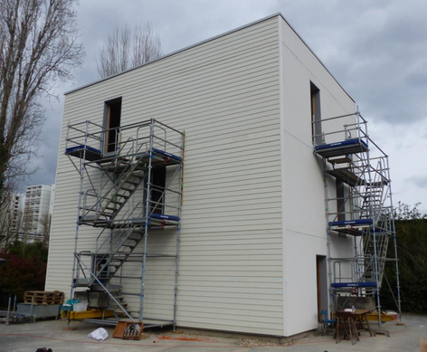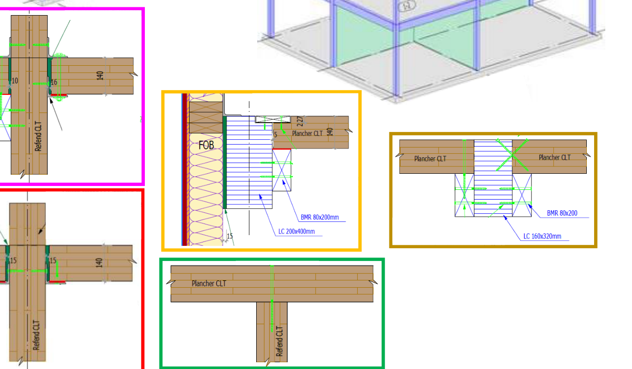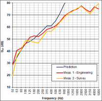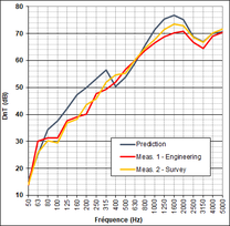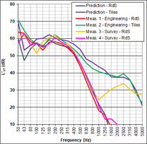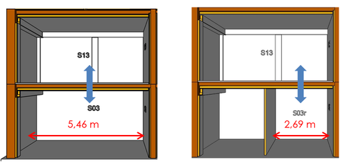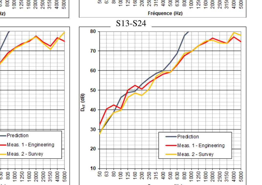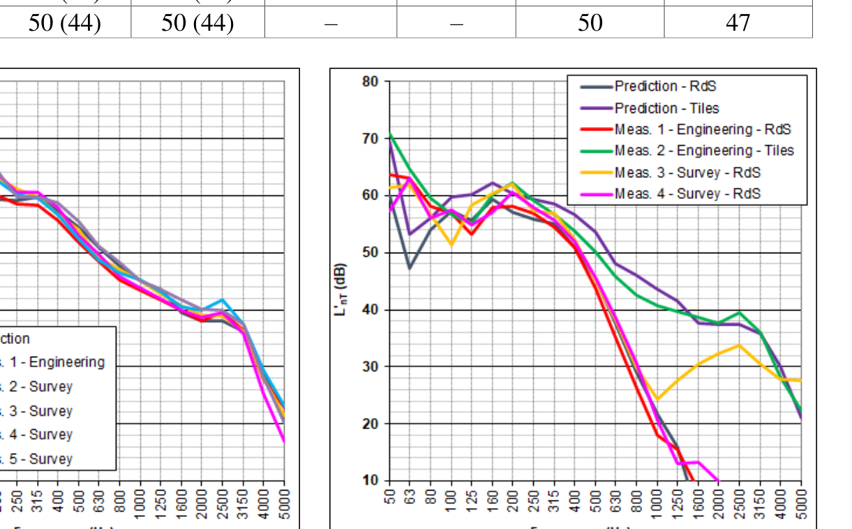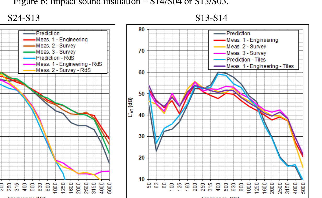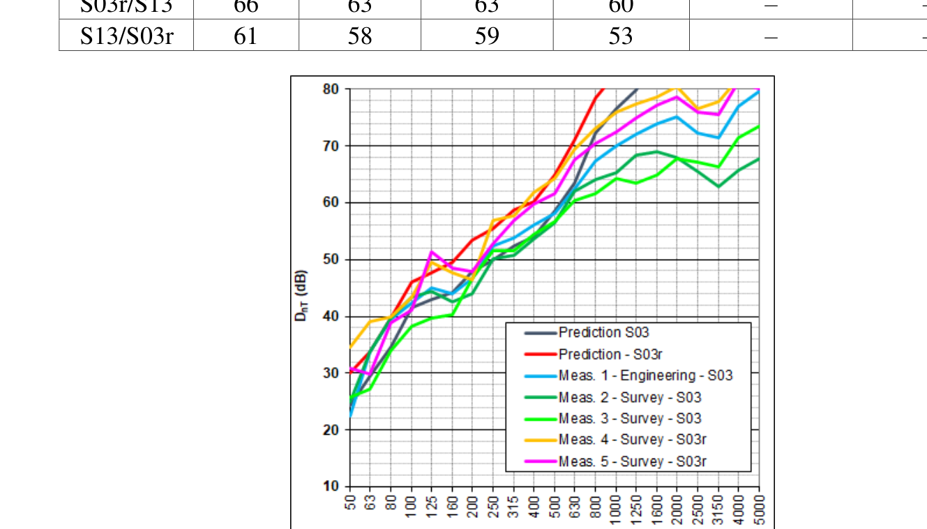A A A Volume : 44 Part : 2 Building acoustic performance prediction – Feedback from Adivbois CLT building mockup Catherine Guigou-Carter 1 Health and Comfort Department, CSTB 24 Rue Joseph Fourier, 38400 Saint Martin d’Hères, France Nicolas Balanant 2 CERQUAL Qualitel Certification 28 Rue du Rocher, 75008 Paris, France Jean-Luc Kouyoumji 3 FCBA Allée de Boutaut, 33000 Bordeaux, FranceABSTRACT The acoustic performance of a CLT based building mockup was investigated within the scope of AdivBois acoustic technical commission with the objective of defining wood building constructions fulfilling requirements. The CLT based building is a three floor construction, with four rooms on each level. Measurements from junction characterization to air-borne and impact sound insulations have been performed. Furthermore, acoustic measurements have been performed before and after linings and floor coverings were implemented. Moreover, several acoustic teams have carried out measurements in the building. This paper concentrates on the comparison between measured acoustic performance and the predicted one. Predictions are based on the EN ISO 12354-1 and -2 standards, using floor and wall acoustic performances measured in laboratory conditions. The effect of junction characteristics, floor covering and receiving room size is discussed.1. INTRODUCTIONWood fixes CO2 during its growth. The new French environmental regulation RE2020, for new buildings applicable from January 1, 2022, promotes the use of renewable materials to store carbon. Used as structural element in construction, where its lifespan is around 100 years, wood is an interesting source of carbon capture. The development of wood in the construction and renovation of buildings is also recognized by the French public authorities as an effective means of contributing to the objectives of the National Low Carbon Strategy.In addition, to achieve the carbon objectives of the Paris 2024 Olympic and Paralympic Games aligned with the Paris Agreement, many projects are developed in wood.1 catherine.guigou@cstb.fr 2 n.balanant@cerqual.fr 3 jean-luc.kouyoumji@fcba.fr If the lightweight aspect of wood is appreciated for elevations and extensions, in multi-storey buildings, the predictability of the acoustic and vibration performance of lightweight structures requires special know-how. Behavior at low frequencies and flanking transmissions must be monitored with care. Fortunately, research has made much progress in recent years, particularly in France due to the momentum generated within the framework of the ADIVBois project. The aim of the ADIVBois association is to help removing technical and regulatory obstacles and to share the expertise acquired in the field of high-rise wooden constructions, with project owners, project managers and companies. The technical working groups of ADIVBois have carried out work in recent years on the aspects of structure, envelope, fire safety and acoustics.Regarding the acoustic investigation, a laboratory test campaign on the CLT floor was carried out by CSTB in 2018. Then, the project for a life-size mockup of a multi-storey wooden construction was launched at the FCBA in 2019. This new project managed by FCBA was baptized “ADIVBois Acoustic Mockup”; it brings together CSTB, CERQUAL and FCBA.This three-level wooden mockup with four rooms per level was built on the FCBA site in Bordeaux. The mockup is intended to study the floors, the flanking transmissions, and the transmissions via the wooden supporting elements such as posts and beams.Preliminary results were presented in 2021 [1] ; a companion paper [2] concentrates more specifically on the effect of apparent wood elements on the acoustic performance.This paper presents measurement results performed by different teams, using either the survey or the engineering method, and compared them to predicted results. The effect of junction characteristics, floor covering and receiving room size is discussed.2. BUILDING DESCRIPTIONThe prototype, or “ADIVBois Acoustic Mockup” is a three storey wooden structure building comprising 4 rooms on each floor, including 2 rooms with an overall surface area of approximately 14 m² each, and 2 rooms with an overall surface area of approximately 19.8 m² each. The construction is based on CLT panels for walls and floors, laminated wood posts and beams, and lightweight wood frame façade. Some double frame plasterboard based separating walls are also included. Some junctions incorporate resilient elements in order to evaluate their effect and advantages in the acoustic performance. A general view of the “ADIVBois Acoustic Mockup” is depicted in Figure 1; temporary stairs on each of the four façades allow to access the different room.2.1. Walls and Floors Two different floor types have been implemented : Floor 1 with apparent underside and Floor 2 with rigidly suspended ceiling.Two types of vertical wall were mounted: the first is based on a 140 mm thick CLT panel and the second corresponds to a 180 mm thick double frame plasterboard based separating wall (denoted SAD180 in the rest of the paper).The façades are standard lightweight wood frame wall with an independent interior lining (composed of 2 BA13 plasterboards on an independent metal frame with 45 mm mineral wool).The different treatments on the CLT floor have been tested at CSTB acoustic laboratory so their acoustic performance is available (see [2] for the different tested floors). Due to lack of data, the transmission loss for the CLT wall was taken identical to the CLT floor. The performance R of the lining on the CLT wall was deduced from previous measurements performed on a CLT wall with a thickness of 94 mm (see Acoubois project [3]).Figure 2 illustrates the structure and localizes the different walls and floors implemented. Figure 1: View of the “ADIVBois Acoustic Mockup”.Lightweight separating wallFloor 2 Rooms S13, S14, S23, S24 50 mm screed on thin resi