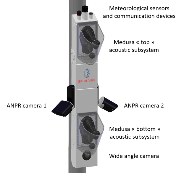 A A A Volume : 44 Part : 2 Hydra: a noise radar to automatically track down excessively noisy ve- hicles in real traffic conditions Christophe Mietlicki 1 , Fanny Mietlicki 2 , David Bernfeld 3 Bruitparif 32 boulevard Ornano 93200 Saint-Denis, France, MetropolitanABSTRACTThe developments made by Bruitparif since 2016 around sound source localization technologies ap- plicable to the field of environmental noise resulted in the launch on the market of a patented com- bined acoustic and imaging sensor called "Medusa". An article of law was voted in France at the end of 2019 in order to enable the experimentation of noise radars in order to punish drivers causing significant noise nuisances by their behavior. The evaluation process includes track trials, roadsite tests and a final phase with fines. We will describe this national experimentation and the context in which it takes place. We will then detail the prototype called "Hydra" that we have developed for this purpose, and will present case results showing how it solves the major difficulties of the legal meas- urement of the pass-by noise of vehicles in real traffic conditions.1. INTRODUCTION AND CONTEXTRoad traffic is a major source of noise pollution in the Ile-de-France region, with 30% of the region's residents quoting it as the primary cause of noise annoyance when they are at home. Among vehicles, motorised two-wheelers are clearly the ones that generate the most complaints. Thus, 27% of Ile-de-France residents consider the noise emitted by motorised two-wheelers to be the transport- related noise that annoys them the most, ahead of the noise from private vehicles (cited by 18% of Ile-de-France residents) and the use of horns (17%), according to the results of the "Well-being and noise pollution in Ile-de-France" study carried out by Crédoc for Bruitparif in 2021, to be published shortly [1]. 35% quote the noise of scooters, mopeds and motorbikes as one of the three sources of noise pollution that have annoyed them the most at home over the last twelve months.The focus on noise complaints about motorised two-wheeled vehicles is largely due to the fact that the noise standards in application for the approval of these vehicles (specified in European Regulation No. 41) are often exceeded in actual traffic conditions, due to offending behaviour and illegal trans- formation of the vehicles. According to modelling carried out by Bruitparif, a scooter with an unap- proved exhaust system would wake up more than 11,000 people if it were circulating at night in Paris between the Place de la Bastille and the Place Charles-de-Gaulle Étoile [2]. The same applies to motorbikes whose drivers have removed the silent baffle and/or who push their machines to very high regimes, as well as to certain sports cars or cars specifically "customized" by their owners to make noise on purpose.1 christophe.mietlicki@bruitparif.fr 2 fanny.mietlicki@bruitparif.fr 3 david.bernfeld@bruitparif.fr‘inter.a 21-24 AUGUST SCOTTISH EVENT CAMPUS ? O? ? GLASGOW These excessive noise peaks produced by certain vehicles often represent the majority of the am- bient noise measured during the day, as shown by the results of measurements carried out by Bruit- parif along the departmental road 91 in the Vallée de Chevreuse (Yvelines). This winding road is very popular with motorcyclists, which leads to recurrent complaints from its residents. Bruitparif carried out a detailed analysis of the data collected by the "Medusa" sensors deployed at three loca- tions on this road (at Saint-Lambert-des-Bois, Saint-Forget and Senlisse) during the spring 2021 (pe- riod from 15 April to 31 May). This analysis made it possible to determine the daily number of vehi- cles, the vast majority of which are motorised two-wheelers, which generate more than 80 dB(A) at a reference distance of 7.5 m from the center line of the road. Theoretically, this level should not be exceeded if the homologation limit values (results of the tests carried out in motion) were respected in real traffic conditions [3]. The results are clear: while noise events of more than 80 dB(A) represent on average only between 4 and 15% of the vehicles detected, depending on the site, they account for 37% to 54% of the overall noise measured, and this contribution can even reach 75% on certain sunny weekend days in the sectors most used by motorcyclists (at Saint-Forget and Senlisse). On such days (Saturday 8 May 2021, Sunday 30 May 2021, for example), some 700 noise peaks exceeding 80 dB(A), 10% of which even exceed 90 dB(A), were recorded by the sensor deployed in Saint- Forget. For the residents of this sector, this represents an average of one noise disturbance per minute between 8am and 9pm.There is no doubt that combating abnormally noisy driver behaviour could therefore have a sig- nificant impact on overall road noise and the tranquility of local residents.Sanctions for noise pollution against drivers who use their engines at excessive speeds or who have tampered with their vehicles are a constant demand from residents living near roads, who are victims of noise pollution that can have a long-term impact on their health (stress, fatigue, concentra- tion difficulties, sleep disturbance, cardiovascular diseases, anxiety and depression, etc.) [4]. A ma- jority of them (59% of the French [5], 60% of the inhabitants of Ile-de-France [1]) said they are in favour of installing noise radars and 18% of the inhabitants of Ile-de-France even consider this action to be a priority in the fight against road noise [1].Today in France, the police has the possibility of fining drivers for excessive noise. This can be done by a simple ear test or, more generally, by measuring the noise of the vehicle intercepted, in order to avoid any subsequent disputes. This measurement is then carried out when the vehicle is stationary, in neutral and at a medium to high engine speed as indicated in box U.2 of the vehicle registration certificat