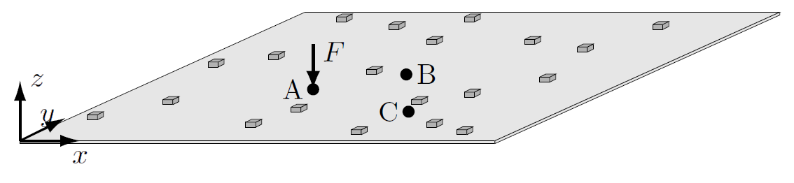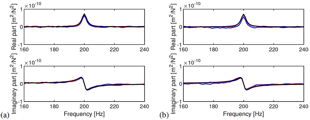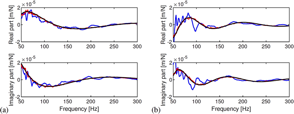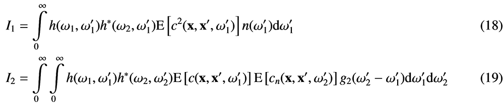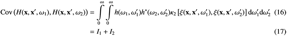 A A A Volume : 44 Part : 2 Proceedings of the Institute of Acoustics Frequency response function statistics of diffuse systems Cédric Van Hoorickx1, KU Leuven, Leuven, Belgium Edwin P. B. Reynders2, KU Leuven, Leuven, Belgium ABSTRACT Vibro-acoustic analysis at high frequencies is challenging due to a large sensitivity to spatial variations and short wavelengths, rendering deterministic methods expensive. At these frequencies, the wave field is usually assumed diffuse. A realization of a diffuse field can be obtained considering that the mode shapes of the system are Gaussian random fields, and that its squared eigenfrequency spacings distribution conforms to the Gaussian orthogonal ensemble (GOE) eigenvalue spacings distribution. These diffuse field properties were for example used to extend statistical energy analysis (SEA) towards energetic variance prediction. However, energetic methods such as SEA lack the propagation of phase information, which means that, e.g., time-domain reconstruction is not possible. In this contribution, instead of total energies, expressions for the ensemble average and the cross-frequency covariance of frequency response functions are presented. These expressions are obtained from the generalized definition of a diffuse field, treating the eigenfrequencies of a diffuse subsystem as a collection of points randomly located on the frequency axis, making the analysis amenable to random point process theory. These expressions are numerically validated by comparison with computationally costly detailed models where random wave scatterers are modelled explicitly. 1. INTRODUCTION Diffuse or reverberant field models are widely employed for vibro-acoustic analysis at high frequencies because of their computational efficiency and because they inherently account for uncertainty related to small spatial variations in geometry, material properties, or boundary conditions, which have a wave scattering effect. Conventionally, a diffuse field is defined to be a random field, composed of a large number of statistically independent plane waves, the spatial phase of which is uniformly distributed and independent from the amplitude [1]. Power flows between diffuse fields can be efficiently analyzed with, e.g., statistical energy analysis (SEA) [2]. However, in statistical energy-based approaches such as SEA, the response (displacement or pressure) fields are not modelled but only the related energies, which means that, e.g., time-domain reconstruction, which requires phase information, is not possible. A new method of analysis, termed the Gaussian Orthogonal Ensemble-Monte Carlo (GOE-MC) method, that overcomes this limitation was recently developed [3, 4]. It makes use of a generalized definition of a diffuse field, relying on the fact that the natural frequencies (or equivalently, the undamped eigenvalues) of a diffuse component with uncertain local wave scattering properties converge, as the frequency increases, to a specific joint probability distribution function after appropriate scaling: that of the eigenvalues of a Gaussian Orthogonal Ensemble (GOE) matrix [5] from random matrix theory. The mode shapes are independent Gaussian random wave fields. In the GOE-MC method, samples of the natural frequencies and mode shapes of the decoupled diffuse subsystems are directly obtained with a Gaussian random number generator, as they relate to a GOE matrix and a Gaussian random field, respectively. Instead of relying on the generation of MC samples, the natural frequencies can be considered to form a sequence of random points on the frequency axis, thus making the problem amenable to analysis by random point process theory. The theory is phrased in terms of a set of functions gs that describe the statistics of the placement of the random points. These are called correlation functions [6] or cumulant functions [7]. The latter terminology will be adopted here. With this theory, analytical expressions are obtained in this paper for frequency response function (FRF) statistics. These expressions do not assume a large distance between source and receiver and a large modal density, as previous derivations of FRF statistics did [8]. They can furthermore be used for time domain analysis or can be applied for the response analysis of built-up systems by using a generalized diffuse field reciprocity relation. The outline of this paper is as follows. First, the frequency response function is introduced and the application of the random point process theory is described. This theory is then used in the following two sections to obtain expressions for the ensemble average and the frequency covariance of the FRF. The expressions are finally validated numerically by comparing the results with a GOE-MC model and a detailed model in which the wave scattering features are modelled explicitly. 2. RANDOM POINT PROCESS THEORY The frequency response function (FRF) H(x, x′, ω) can be expressed as the following integral: where c(x, x′, ωn) = ϕn(x)ϕn(x′) with ϕn(x) the nth real mode shape component at x, ωn the corresponding natural frequency, and: with where the approximation is valid for η → 0. Stratonovich [6] has demonstrated that the cumulants of the process ξ(x, x′, ω′) can be written in terms of the cumulant functions gs, which describe the statistics of the natural frequencies. The first function g1 equals the modal density n and the first cumulant of ξ, i.e., its mean value, has the form: Similarly, the second cumulant, i.e. the covariance function, is given by: 3. ENSEMBLE AVERAGE OF THE FRF The ensemble average of the FRF follows from Equation 1 and Equation 4: Substitution of Equation 2 yields: where use was made of partial fraction decomposition and the fact that E [c(x, x′, ω′)] and n(ω′) are even functions. This integral can be elaborated using the Sokhotski–Plemelj theorem for an analytic function f : where denotes the Cauchy principal value. As ω/a ≈ ω 