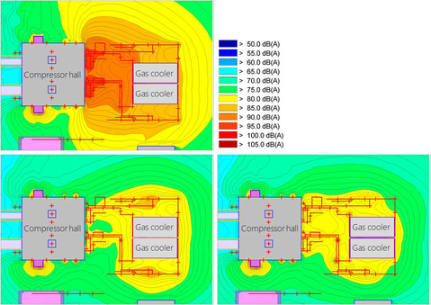 A A A Volume : 44 Part : 2 Challenges in delivering effective noise management at gas compres- sor stations Carl Christian Hantschk 1 and Marco Geisler 2 Müller-BBM GmbH Helmut-A.-Mueller-Strasse 1 - 5 82152 Planegg GERMANYABSTRACT The basic principles applied in gas compressor stations to manage noise and demonstrate compliance with statutory acoustic requirements are not different from those used with most other industrial activities. Well-known and proven standard procedures involve sound emission assessment, acoustic modeling, model verification, development of a noise control concept and its optimisation until com- pliance can be demonstrated. However, noise control for some of the typical equipment in gas com- pression is extremely demanding in terms of both acoustic and operational/safety aspects so that it requires special attention. Examples are the exhausts of the gas turbines driving the compressors and the extensive network of gas piping. Because of their high and strongly varying sound emissions the exhausts pose a significant challenge in designing effective silencers. In addition, flow-generated self-noise in the silencers is a risk that needs to be avoided. For the piping, sound attenuation by acoustic lagging is in conflict with corrosion and maintenance/accessibility problems and makes an optimised lagging concept an ambitious task. The present contribution illustrates typical problems encountered and possibilities to deal with them. It is based on data and experiences with gas com- pressor stations with very stringent acoustic requirements.1. INTRODUCTIONIn most countries industrial activities have to comply, among other things, with statutory acoustic requirements. Typically, these requirements are defined in the plant's license to operate (e.g. a Pollu- tion Prevention Control Permit) as maximum permissible noise levels (noise limits) at specific loca- tions in the neighborhood of the plant and/or at workplaces inside of it (Noise Sensitive Receptors, NSR). Such acoustic requirements are met if the prevailing noise levels at these NSRs, for all relevant operating conditions of the plant, do not exceed the corresponding noise limit values.For existing installations, the quickest and easiest way to demonstrate that this is the case is by direct sound level measurements at the NSRs in the relevant operational modes of the plant. However, rather often this may not be possible for different reasons, for example: • Valid measurements cannot be taken because the plant cannot be operated in the conditions rele- vant for the noise limits.1 Carl-Christian.Hantschk@mbbm.com2 Marco.Geisler@mbbm.comi, orn inter.noise 21-24 AUGUST SCOTTISH EVENT CAMPUS ? O? ? GLASGOW • The situation at the NSRs does not allow to determine the sound pressure level received from the plant – the specific sound level – by measurements with sufficient accuracy (e.g. if the residual sound is too high). • The NSRs are not accessible for measurements. Another situation where direct measurements at the NSRs are of little help is if the specific sound levels obtained from the measurements are too high, i.e. they show non-compliance. This is because the measurement result at the NSR does not provide any clues as to how compliance can best be achieved.In such situations an alternative approach is required. 2. SOUND PROPAGATION MODELINGA well-known and proven method in situations as outlined above is to determine the specific sound level at the NSRs by performing a sound propagation calculation [1]. In this case the following typical procedure can be used to demonstrate compliance: a) Assess the sound emission characteristics (typically power level and directivity of the emittedsound) for all relevant individual sound sources and sound transmission paths of the plant by measurements on site with these emitters operated in the mode relevant for the statutory acoustic requirements. Here, the term "sound source" is used for items that directly generate and radiate sound whereas "sound transmission paths" are items that do not generate sound directly by them- selves, but are transmitting sound generated by other sources. An example for the latter is the exhaust stack outlet opening that, ultimately, radiates part of the sound generated in the gas tur- bine. b) Measure the ambient noise level at a suitable "checking location": as far away from the plant aspossible, but close enough to have the prevailing ambient noise level dominated by the sound emissions from the plant. During the measurements the plant must be run in a stable and defined condition. This data will be used for quality assurance in step d). c) Set up a three-dimensional acoustic calculation model (acoustic model) of the plant, comprisingall relevant sound sources and sound transmission paths in the plant and their respective sound emissions as determined from the measurements from a). In addition, all other items that are relevant from an acoustics point-of-view need to be taken into account in the model – for example topography and buildings and other obstacles that can have an influence on propagating sound by acting as barriers to sound waves and/or by reflecting sound waves. d) Perform a sound propagation calculation with the model for the operating condition from step b).Compare the calculated noise level at the checking location to the level obtained from the meas- urements to verify that the model correctly predicts the sound field around the plant. e) Use the verified model to calculate the sound pressure levels received from the plant at the NSRsfor the operating conditions relevant according to the statutory acoustic requirements. Before compliance is obtained in step e) – i.e. the sound pressure levels received from the plant at the NSRs do not exceed the maximum permissible levels – it will often be necessary to apply or upgrade noise mitigation measures on specific sound emitters in the plant. For an efficient noise co