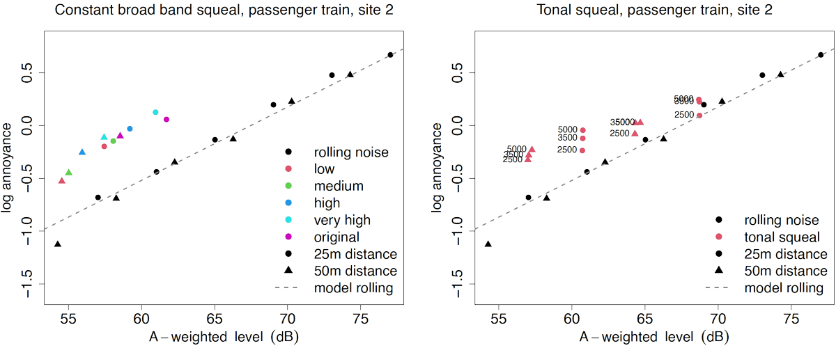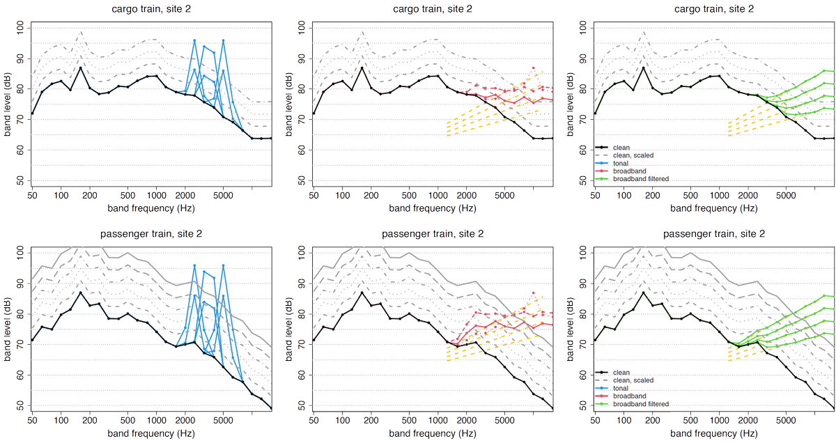 A A A Volume : 44 Part : 2 Proceedings of the Institute of Acoustics Annoyance of railway curve squeal Christian H. Kasess1, Acoustics Research Institute – Austrian Academy of Sciences, Vienna, Austria Thomas Maly2, TU Wien, Vienna, Austria Christian Kirisits3, Kirisits Consulting Engineers, Pinkafeld, Austria Piotr Majdak4, Acoustics Research Institute – Austrian Academy of Sciences, Vienna, Austria Holger Waubke5, Acoustics Research Institute – Austrian Academy of Sciences, Vienna, Austria ABSTRACT Trains passing through a curve frequently produce the so-called curve squeal, which comprises salient noise components (typically either tonal or transient) covering a wide frequency range. Although the main underlying acoustical mechanisms are known, due to the large variety of curve squeal characteristics, their effects on acoustic parameters and in particular on the perception are difficult to quantify. The work aims at investigating the effects of acoustically described curve squeals on the perceived annoyance, tested in the laboratory with 30 listeners. Passby measurements in three narrow curves at distances of 7.5, 25, and 50 m were obtained. By means of so-called frame multipliers, time-variable salient features were manipulated and combined with a number of clean rolling noise samples to simulate squeals with parameters obtained from existing emission measurements. As a result, annoyance ratings showed that the perception of curve squeal can be considerably altered compared to that of regular passby noise. A model was developed for the annoyance equivalent level adjustment from a clean rolling noise based on the contrast of high and mid-frequency energy. The model predictions can serve as basis to establish rating levels predicting the perceived annoyance of railway curve squeal. 1. INTRODUCTION When transversing in particular tight curves, rail bound vehicles can produce additional high frequency and/or tonal noise components as compared to the rolling noise on straight tracks. These noise components are called curve squeal. The mechanisms as well as the conditions producing such effects were and still are the subject of different investigations [1, 2]. In contrast to the complex mechanisms producing and affecting curve squeal, incorporating the acoustic and perceptive effects into noise mapping approaches seems to be limited to relatively simple adjustment terms taking into account only the radius of the curve [3] (Annex II). On an Austrian national level, in recent years two studies were done investigating the effect of curve radius, speed, meteorological conditions, and conditioning of the railhead using extensive long term measurements [4, 5]. The aim was to find relevant influencing factors like the train type, curve radius, speed, weather conditions, etc. and to derive more detailed level based adjustment factors for noise mapping based on these parameters. For trains with high noise emissions, for example, the acoustic effect of curve squeal is lower than for trains exhibiting low emissions. Still, however, this work only included acoustic effects and did not consider perception. For example, tonal components which also occur in curve squeal are well known to produce higher annoyance ratings and are thus taken into account using a tonality penalty [6]. High frequency noise, on the other hand, shifts the spectral centroid to higher frequencies and may thus be perceived as sharper and thus more annoying. However, in the prediction model for railway noise of the European Environmental directive 2002/49/EC [3] (Annex II) squeal is taken into account by adjustment values without clarifying if these values address increases of sound pressure level or if they also incorporate annoyance effects. As a consequence, the work presented here will focus on the perception effects of curve squeal based on a subjective noise rating experiment based on immission measurements at 25 and 50 m. Using previous emission measurements representative parameters for curve squeal were derived and used as a basis to modify the immission measurements. The manipulation of the stimuli was done using frames, i.e. a spectro-temporal representation and frame multipliers [7] which allow the modification of the stimuli in that domain. The details were reported previously [8]. 30 normal hearing listeners were asked to judge the annoyance of a large set of noise samples and a model for was derived for a annoyance equivalent level adjustment. 2. METHODS 2.1. Measurements The acoustic measurement considered three narrow curves with radii ranges from 299 m to 332 m. On each of these sites the measurements were carried out on three days with dry weather conditions and little wind. The immission sound pressures were recorded in 25 m and in 50 m from the center line of the track and 2.2 m above the ground. Used were 1/2” free field microphones (G.R.A.S.46AE). To compare the measurements results with previous measurements, a further microphone was situated in the standard emission measurement point in 7.5 m distance and 1.2 m above the top of the rail. All passbys were recorded with a video camera to identify the train type offline. Axle speeds were determined with the means of two light barriers across the track. In total, 214 train passbys of different train types (e.g. cargo trains, high speed train, regional trans or suburban trains) were recorded with passby speeds mostly between 70 and 80 km/h. In addition, also track decay rates and rail roughness were measured on all three sites. Mainly, the roughness of the inner rails exceeded the limit of the EN ISO 3095 [9] at higher wavelengths. One site stands out with clearly increased roughness amplitudes also in mid wavelength range, which also produced the highest noise emissions measured. However, track decay rates varied around the limit curve according to EN ISO 3095, and thus not have a significant effect on the emissions. 2.2. Sample selection The duration o