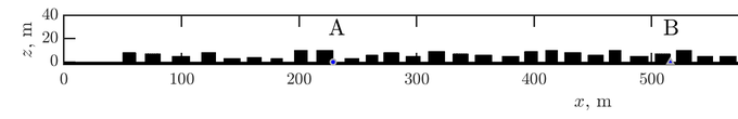 A A A Volume : 44 Part : 2 Numerical simulations of sonic boom propagation over urban areasDidier Dragna1 1 , Ariane Emmanuelli, Sébastien Ollivier, Philippe Blanc-Benon Univ Lyon, Ecole Centrale de Lyon, CNRS, UCB Lyon 1, INSA Lyon, LMFA, UMR5509, 36 Avenue Guy de Collongue, F-69134, Ecully, FranceABSTRACT Acceptability of supersonic transportation by population requires an accurate prediction of ground noise levels generated by sonic boom. This study aims at predicting sonic boom propagation over urban areas. For this purpose, numerical simulations are performed; the full 2D Euler equations are solved using high-order finite-di ff erence time-domain techniques. First, the case of an isolated building is considered. From a geometrical analysis, two characteristic zones are highlighted: an illuminated region in front of the building and a shadow zone at its rear. The sonic boom waveforms at the ground are composed of several arrivals, related to reflection at the building facades and di ff raction at the building corners. The evolution of the noise levels is then shown to follow closely the geometrical analysis, with an amplification in the illuminated region and a large reduction in the shadow zone. Second, the case of two identical buildings is investigated. The acoustic field inside the street canyon is examined. In particular, the boom waveforms exhibit low-frequency oscillations, in addition to the geometrical arrivals. They are related to resonant modes of the canyon. Finally, an urban geometry representative of European city centres is considered. The variability of the boom waveforms and the noise levels is shown.1. INTRODUCTIONWith the aim of designing quieter supersonic civil aircraft, research is underway on low-boom design. In addition, acceptability of low booms by the population should be investigated in a near future [1]. This motivates the improvement of prediction schemes for sonic boom at the ground. In particular, it is important to consider the modification of the boom signature in an urban environment. While sonic boom reflection over an isolated building has been studied analytically [2], experimentally [3, 4] or numerically [5,6], the case of multiple buildings has not been examined thoroughly. In order to investigate sonic boom reflection over urban areas, the authors have performed recent numerical studies. For that, based on the work of Emmanuelli et al. [7], the 2D Euler equations have been solved using high-order finite-di ff erence schemes [8]. In a first study [9], academic configurations have been examined. An isolated building has been first considered as the reference case. Then, reflection over two buildings and over a series of identical buildings has been analyzed. In a second study [10], sonic boom reflection over realistic urban configurations has been considered. For this purpose, ten urban geometries have been generated, based on the classification LCZ on urban forms [11]. Two main conclusions have been obtained. First, the main parameter at play is the aspect1 didier.dragna@ec-lyon.fra slaty. inter.noise 21-24 AUGUST SCOTTISH EVENT CAMPUS O ¥, ? GLASGOW ratio of the urban canyon, i.e. the ratio of the building height to the street width. Thus, for small aspect ratios, referred to as open geometries, the reflection of the boom over the urban area is similar to that over an isolated building. The noise levels are thus large in front of the building (with an increase of + 7 PLdB compared to the flat ground case) and significantly reduce in the shadow zone at their back. For large aspect ratios, referred to as compact geometries, multiple reflection occurs on the building facades in the street canyons. The noise levels tend to become more homogeneous. Second, oscillations, that slowly decay with time, are noticed at the tail of the waveforms in the street canyons. As a consequence, the duration of the boom signature is largely increased. These oscillations have been shown to be related to resonant modes of the street canyons. This paper presents some results for one of the ten urban geometries, considered in [10], namely LCZ 3 also referred to as "compact lowrise". This geometry corresponds to closely spaced buildings of 1 to 3 floors and can be found in densely populated urban areas. The paper is organized as follows. Sec. 2 summarizes the numerical methods used and details the configuration considered. Results for the urban geometry LCZ 3 are exemplified in Sec. 3. Concluding remarks are given in Sec. 4.2. METHODS AND CONFIGURATION2.1. Methods Numerical simulations are performed to study sonic boom reflection over urban areas. The 2D Euler equations are solved using high-order finite-di ff erence time-domain techniques [8]. A moving frame, that follows the aircraft, is implemented to reduce the computational cost. The solver including numerical methods and boundary conditions is described in details in Emmanuelli et al. [7]. Simulations have been carried out in [10] for a N-wave and a low-boom wave. For conciseness, results are shown thereafter only for the N-wave. Its peak overpressure is equal to 25 Pa and its duration is 0.15 s. The flight Mach number is M = 1 . 6.2.2. Configuration The urban geometry has been defined, according to the LCZ (local climate zone) standard [11]. It aims to represent densely populated areas, with closely spaced buildings of 1 to 3 floors, which are labelled as LCZ 3. The urban geometry is made of 40 buildings, whose heights are between 3 and 10 m and widths between 10 and 15 m. The street widths are between 5 and 10 m. The aspect ratio, defined as the ratio of the mean building to the mean street width, is about 1. For the Mach number considered, this value corresponds to a compact geometry [10]. The geometry is sketched in Fig. 1. Note that the atmosphere is homogeneous and at rest.| 100 700 800 900Figure 1: Urban geometry LCZ 3.m 100 200 300 400 500 ( 2.3. Numerical specification The computational domain is 800 m 