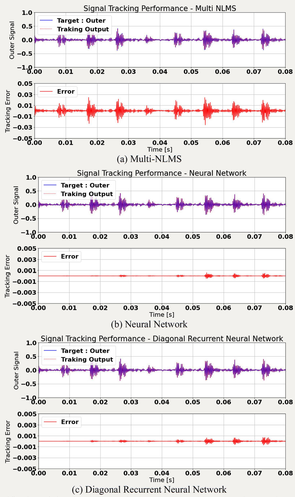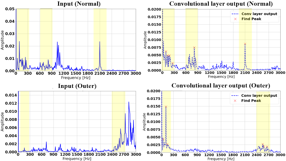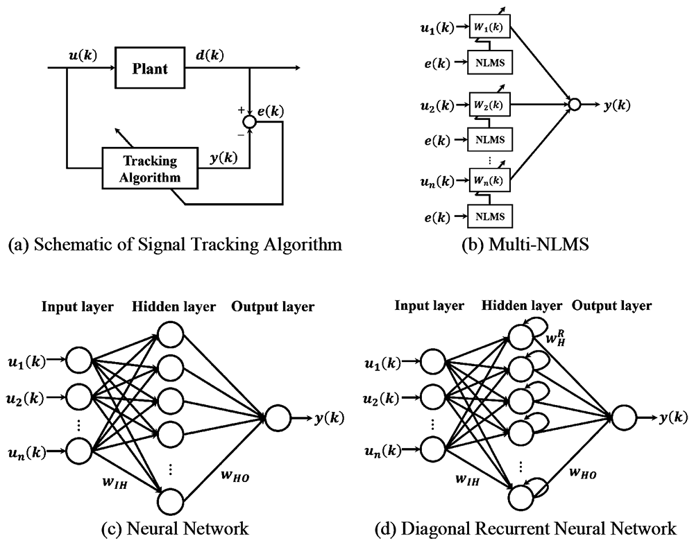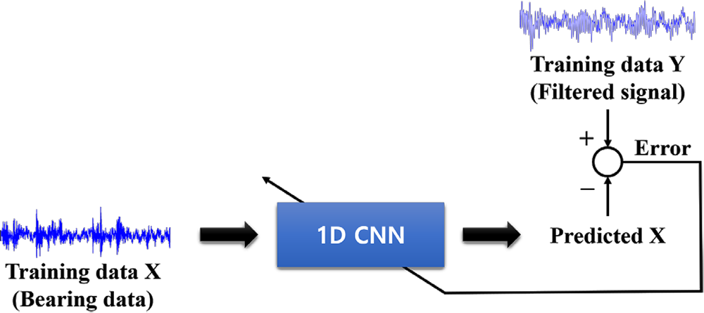 A A A Volume : 44 Part : 2 Proceedings of the Institute of Acoustics Validation of target tracking performance through signal feature extraction method based on 1D convolutional neural network Dongwoo Hong1, Yeungnam University, Gyeongsan, Republic of Korea Junhee Kwon2, Yeungnam University, Gyeongsan, Republic of Korea Byeongil Kim3, Yeungnam University, Gyeongsan, Republic of Korea ABSTRACT In order to perform active vibration and noise control, a variety of adaptive algorithms have been investigated and developed. Especially, neural network-based signal tracking algorithms, such as the radial basis function neural network (RBFNN), are being widely utilized. For signal tracking problems, a reference signal has a significantly important role, while it is difficult to determine the reference signal when it has relatively complex spectrum. Thus, this study focuses on the signal feature extraction for manipulating appropriate reference signals easily and validation of signal tracking performance with it. In order to carried out the signal feature extraction, 1D convolutional neural network (1D CNN) is implemented and trained based on the CWRU bearing dataset. In addition, multi normalized least mean square (NLMS), neural network-based signal tracking algorithm, and diagonal recurrent neural network (DRNN) is employed to confirm the signal tracking performance. The proposed method shows that the 1D CNN-based signal feature extraction method could find the signal feature properly and the reference signal obtained from this methodology is employed to a target tracking problem, which shows a great performance. 1. INTRODUCTION In the mechanical system, such as robot mechanism, machining tool, and rotary system, the vibration and noise control are required since uncomfortable vibration and noise can be occurred through interference between each part. Furthermore, they directly contribute to the comfortableness of worker. In order to perform the active vibration control (AVC) and active noise control (ANC), a variety of adaptive algorithms, such as NLMS and filtered-x LMS (FXLMS), have been developed and applied in mechanical system. In recent year, the deep learning methods are attracted in engineering research field and widely applied in diagnosis, control, and data generation. Especially, neural network-based signal tracking algorithm, such as RBFNN and DRNN, are being widely utilized to control the system motion. Currently, many researches are devoted on AVC[1, 2] and ANC[4, 5] based on the adaptive algorithm and controller. Tian et al. [3] performed the active vibration control for laminated composite beams with piezoelectric layers using genetic algorithm (GA)-based LQR controller. Through the simulation, the proposed structure shows effectiveness control performance. Kim et al. [6–8] improved the performance of LMS algorithm using the sliding mode control algorithm focused on the active vibration control of incommensurate sinusoids. In addition, a novel control algorithm, model predictive sliding mode control, is proposed to overcome the drawbacks of adaptive filtering algorithms. Zhao et al. [9] proposed the novel FXLMS based on offline and online secondary-path modeling. Through the simulation and experiment, the proposed algorithm shows great performance. In order to perform the system control, such as vibration [10] or motion control [11], applying deep learning methods, a variety of research has been being contributed as follows. Fei et al. [12, 13] improved the sliding mode control applying the recurrent neural network (RNN) to track the trajectory for signal and solve the chattering phenomenon. The proposed controller shows great performance. Bessa et al. [14] proposed intelligent controller framework which is based on fully connected neural network having single hidden layer to control position of micro diving agent. As a literature researches, the proposed methods have a great performance for each parts, but those focus on the system feedback control. In order to perform suitable controls, signal feature analysis should be conducted first. Furthermore, dealing with the signal or trajectory tracking problems, a reference signal has a significantly important role, while it is difficult to determine the reference signal when it has relatively complex spectrum. Thus, this paper focuses on two parts: 1) 1D CNN-based signal feature extraction is conducted to analyze signal characteristic and provide reference signal into signal tracking algorithm, and 2) verification of signal tracking performance is conducted based on extracted signal features. The main contributions are summarized as follows: 1) the signal feature extraction is carried out based on the 1D CNN. 2) signal tracking performance is demonstrated through multi-NLMS, neural network based signal tracking algorithm, and DRNN. When conducting the signal feature extraction and verification of tracking performance, the Case Western Reserve University (CWRU) bearing dataset is used. 2. TRANINING DATASET AND SIGNAL PROCESSING This section discusses the CWRU bearing dataset and signal processing process. In order to perform training of signal feature extraction model, the CWRU bearing dataset has been utilized and it is summarized in Table 1. The measuring conditions are summarized as follows: 1) the motor load and speed are set to 0, 1, 2, and 3 HP and 1797, 1772, 1750, 1730 rpm, respectively. 2) The bearing fault types consists of outer race, inner race, and ball, 3) fault sizes are 0.007, 0.014, 0.021 inch. When the feature extraction model is trained, overall cases (load, speed, fault size) are shuffled and utilized as training set. Also, the training, validation, and test data are divided into 0.01s with 50% overlap between consecutive signals. Table 1: Case Western Reserve University bearing dataset In order to consider the frequency range of 0Hz to 3000Hz, the dataset is processed with 1D CNN based low pass filter having onl
