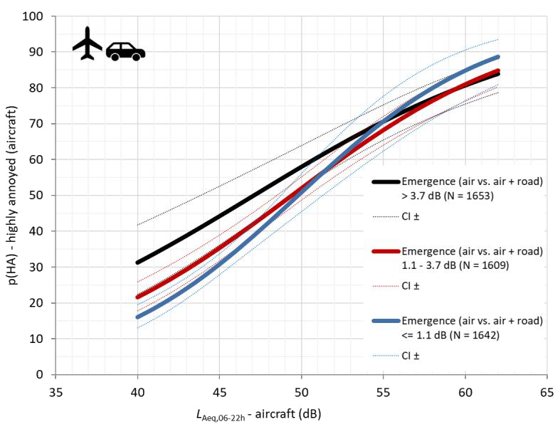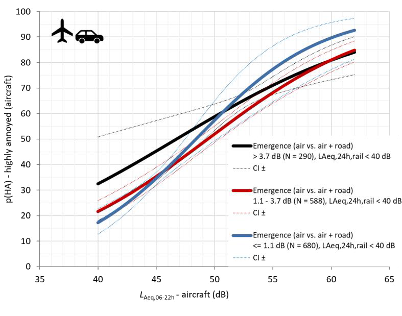 A A A Volume : 44 Part : 2 Proceedings of the Institute of Acoustics The role of sound emergence for aircraft noise annoyance Dirk Schreckenberg1, ZEUS GmbH – Centre for Applied Psychology, Environmental and Social Research, Hagen, Germany Christin Belke2, ZEUS GmbH – Centre for Applied Psychology, Environmental and Social Research, Hagen, Germany Jördis Wothge3, German Environment Agency, Dessau-Roßlau, Germany Rainer Guski4, Ruhr University Bochum, Bochum, Germany ABSTRACT The metric sound emergence relates source-specific sound levels to background noise. The approach of subtracting a residual sound level (total sound level without the level of a specific source) from the total sound level follows the definition of sound emergence in ISO 1996-1. Using exposure and survey data of the German NORAH study, the impact of sound emergence on aircraft noise annoyance was analysed. As total background sound levels were not available, information about source-specific and combined sound levels was used instead. That is, the road traffic sound level for daytime (LAeq,day,road) of the home address of survey participants was subtracted from the combined sound level of aircraft and road traffic noise (LAeq,day,air+road) with the combined sound level being a proxy for the total sound level, and the road traffic sound level being a proxy for the residual sound level. The probability of people being highly annoyed by aircraft noise, p(HAV), was predicted by LAeq,day,air and the emergence substitute es(air/road). The results show that particularly in low aircraft noise-exposed areas, p(HAV) is higher for those participants exposed to higher values of es(air/road). 1. INTRODUCTION High noise annoyance and sleep disturbances are the most prevalent health outcomes of noise [1]. Numerous field studies have provided exposure-response relationships for the percentage of highly annoyed people (%HA) and for the percentage of highly sleep disturbed people (%HSD). Syntheses, re-analyses and meta-analyses of exposure-response curves relating %HA to continuous sound levels such as Ldn, Lden, or LAeq [2-3] as well as %HSD to Lnight [4-5] show a considerable spread in the exposure-response relationships. As a rule of thumb, up to a third of the variance in noise annoyance is predicted by acoustic factors, specifically by continuous sound level metrics, up to one third is explained by non-acoustic factors, and the remaining variance is unexplained. The latter third comprises measurement error, and probably non-acoustic co-determinants of annoyance not assessed in respective surveys, and additional acoustic characteristics that are not well captured by continuous sound level metrics. These are, for example, event-related metrics such as maximum sound level metrics of single noise events, the number of noise events, or psycho-acoustic sound characteristics [6-7]. For example, for aircraft noise, studies show that adding NX metrics (number of events above threshold x dB) to exposure response models improves the prediction of %HA [8-9]. Non-acoustic factors are described by [10] as 'non-Ldn' factors. The reason given is that sometimes those factors modifying exposure-response curves related to continuous sound level metrics are called non-acoustic factors that, however, imply acoustic aspects [10]. These factors refer to noise from other sources, the total background noise, the availability of a quiet façade, green space (quiet areas), or the window position at home [11]. Sometimes these factors are indirectly implied, for example, when the degree of urbanisation is identified as a co-determining factor of annoyance [12-13], where the modifying effect on the exposure-response relationship can at least partly be explained by the relationship between the source-specific sound level and the background noise. Several authors point out that the absolute sound level only partly explains the noise annoyance and stress the importance of differential noise metrics that relate the source-specific noise exposure to the background noise [14-16]. An example of such a differential noise metric is the intermittency ratio IR [16]. The IR accounts, whilst being uncorrelated with the Leq, for the frequency distribution of sound events and their emergence from the background. Another metric is sound emergence. According to the ISO 1996-1 standard [17] sound emergence is defined as an "increase in the total sound in a given situation that results from the introduction of some specific sound" ([17], §3.4.7). In other words, the "sound emergence is defined for a specific source as the arithmetic difference between the sound level measured when [the] source is on (overall noise) and the sound level measured when the source is off (background noise)" ([18], p. 3045). In the literature, a variety of metrics relating the sound level of the source of interest to the background noise are used in order to calculate the emergence. Some authors describe the emergence as the difference between peak level metrics of the source of interest (e.g. L1, L5, L10) and the overall background level from all sources except the one under study (e.g. L90, L95, L99) [19-23]. Other, in particular national (French) and international ISO standards, suggest calculating the emergence as the difference between the continuous sound levels of the total environmental sound, including the sound of the source under study, and the background noise, i.e. the continuous sound level of all other sources except the source of interest [14, 18, 24-25]. In this study, we follow the latter definition for the operationalisation of the concept of emergence. Studies have shown that sound emergence is associated with noise annoyance, indicating higher annoyance with higher levels of emergence. This is, for example, studied for road traffic noise [20], industrial noise [18], and wind turbine noise [26]. Furthermore, for railway noise [23, 27] and aircraft noise [28], the emergence i
