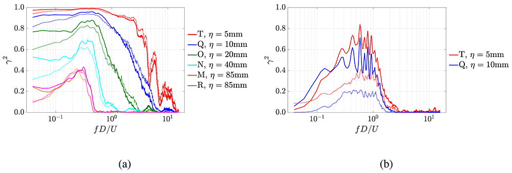 A A A Volume : 44 Part : 2 Proceedings of the Institute of Acoustics An experimental investigation into the influence of installed chevron jet flows on wall-pressure fluctuations Edoardo Carbini1, Department of Engineering, University of Roma Tre, Rome, Italy Stefano Meloni2, Department of Engineering, University of Roma Tre, Rome, Italy Roberto Camussi3, Department of Engineering, University of Roma Tre, Rome, Italy Jack Lawrence4, Institute of Sound and Vibration Research, University of Southampton, Southampton, UK Anderson Proença5, Institute of Sound and Vibration Research, University of Southampton, Southampton, UK ABSTRACT Jet-surface interaction represents a significant community noise problem for the installation of modern ultra-high bypass ratio turbofan engines. The use of chevron nozzles is known to reduce low-frequency jet mixing noise by increasing the mixing rate close to the nozzle. It is currently unknown, however, to what extent such a nozzle lip treatment affects the Kelvin-Helmholtz instability, generated in the vicinity of the wing, which will modify the source of jet-surface interaction noise. To clarify the physics of the jet-surface interaction noise source, an extensive experimental investigation was conducted using the Flight Jet Rig in the anechoic chamber of the Doak Laboratory, at the University of Southampton. Various measurements were carried out on a round and a chevron single stream, unheated subsonic jet, both in an isolated configuration and installed beneath a 2D NACA4415 airfoil "wing". The wall-pressure field on the wing surface was investigated using a pair of miniature wall-pressure transducers and a set of ultra-thin precision microphones. These sensors were flush-mounted in both the stream-wise and span-wise directions on the pressure side of the wing and the unsteady wall-pressure data were analysed in the time and frequency domains. The far-field noise results show significant broadband noise reduction by the chevron jet. This is further evidenced by a reduction in the span-wise correlation length along the wing trailing edge over a wide range of frequencies. Significant reduction of the tonal trapped wave energy is also observed. 1. INTRODUCTION In recent years, the aviation authorities have strengthened noise regulations for aircraft at airports forcing aircraft manufacturers to invest resources in aeroacoustic research. In particular, these stringent noise regulations make jet-surface interaction (JSI) a significant community noise problem hindering the installation of modern ultra-high bypass ratio (UHBR) turbofan engines. In recent decades, research has focused on decreasing the jet mixing (JM) noise, which is a significant contribution to engine acoustic signatures at take-off and plays a key role in the sideline certification position [1]. Historically, chevrons have been introduced to reduce JM noise by increasing the mixing rate in the jet shear layer, generating less low-frequency energy at the expense of more high-frequency energy, which is better attenuated by the atmosphere [2]. What is currently unclear is to what extent any modifications to the flow-field impact the Kelvin-Helmholtz instability generation responsible for the JSI noise source contribution in future closely coupled UHBR engine-wing aircraft. The behaviour of chevrons is well represented in the literature. Parametric studies on uniformly distributed chevron nozzles have been carried out, investigating the effects on far-field noise and azimuthal modes. Several authors have observed a strong dependence on the chevron count and angle of flow penetration [3,4]. Other relevant studies have been carried out on azimuthally varying chevron designs for typical take-off conditions [5–8]. The above-mentioned works show a substantial noise reduction (e.g. up to 3 dB) when there is an asymmetric chevron distribution in both the isolated and installed situations. The wall-pressure fluctuations induced by the jet have been investigated in model-scaled experiments [9–11]. In particular, single-point and two-point statistics were analysed for both a simpler jet-plate configuration [9] and a more complex jet-wing configuration [10]. This paper focuses on the physics of the noise reduction mechanism behind a uniformly distributed installed chevron nozzle. First, the far-field acoustic pressure field is investigated experimentally using two model-scale single-stream jets: a baseline axisymmetric jet and a chevron jet with 16 chevrons and a 9◦ penetration angle installed beneath a NACA4415 wing. Wall-pressure fluctuation data were recorded in both the stream-wise and span-wise directions using several flush-mounted transducers on the pressure side of the wing. Far-field acoustic data were acquired synchronously with wall-pressure measurements using a linear flyover microphone array. The data are analysed in both the time and frequency domains to characterise the pertinent physical mechanisms. The paper is organized as follows: Section 2 introduces the experimental facility and methodology. In Section 3, results for the far-field noise are analysed to define the effects of chevrons in both the isolated and installed configurations. Next, the surface TE span-wise coherence is presented as a function of wing position. Finally, a discussion regarding the span-wise correlation length is given before the main conclusions are presented. 2. EXPERIMENTAL SETUP A model-scale static jet experiment was undertaken using the Flight Jet Rig (FJR) in the Doak Laboratory within the Institute of Sound and Vibration Research (ISVR), at the University of Southampton. The Doak Laboratory is a small-scale anechoic chamber, fully anechoic down to 400Hz. The facility has dimensions approximately equal to 15m-long, 7m-wide and 5m-high. A high-pressure compressor-reservoir system supplies the air jet, which, for this test, was operated at a fixed jet acoustic Mach number, Mj = 0.6. The jet conditions were