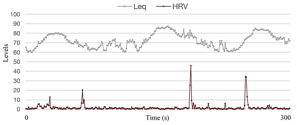 A A A Volume : 44 Part : 2 Proceedings of the Institute of Acoustics Effects of aircraft noise on psychophysiological feedback in under route open spaces Fei Qu1, Shenzhen University, Shenzhen, China Qi Xie2, Shenzhen University, Shenzhen, China ABSTRACT Aircraft noise pollution is getting increasingly severe due to striding development of worldwide air transport. In high-density cities, a large number of residential areas are exposed to airport routes where flight-over noise poses a serious threat to public health. However, most existing research is limited to the thresholds for annoyance lacking in-depth exploration into the psychophysiological impacts that induce health responses. This study aims to examine the health effects of aircraft noise on both subjective evaluation and objective physiological indicators in a laboratory setting. Aircraft noise samples were collected in the under-route open spaces. The effects of aircraft noise on annoyance and physiological feedback, including Skin Conductance Response (EDA) and Heart Rate Variability (HRV), were examined using listening experiment and ErgoLab electrophysiological response monitoring. The study also analysed the effects of soundscape modulating and examined the relationship between psychophysiological responses and subjective annoyance. The results are expected to provide indicators to assess and improve the health of under-route communities. 1. INTRODUCTION Aircraft noise is one of the most important environmental pollutions in cities. Studies have shown that the public opposition and psychological distress due to aircraft noise have been increasing[1]. Long-term exposure to aircraft noise can disrupt sleep and cognitive behaviour, induce cardiovascular disease, and reduce self-rated quality of life and psychological well-being[2]. In China, numerous airports are being integrated into cities, resulting in a large amount of noise radiation to the under route residential areas. Research on aircraft noise has generally focused on the subjective assessment of annoyance, lacking in-depth exploration into the psychophysiological mechanisms that induce health responses. In the past decade, more research has been exploring the use of physiological indicators to objectively evaluate the effects of noise[3]. Physiological-psychological studies are based on the idea that humans will develop a stress response when exposed to external stimuli, which will be accompanied by changes in physiological signals and currents, and that these changes are closely related to psychological activities such as emotion and stress, which can infer feedback mechanisms in response to noise stimuli. Currently, few research has been conducted on the relationship between aircraft noise and physiological feedback. Therefore, this study investigated the relationship between physiological feedback and subjective evaluations of aircraft noise using listening experiments based on ErgoLab electrophysiological monitoring. In addition, the aircraft noise samples were modulated with natural sounds to inform noise control strategies that incorporate overall soundscape perception. 2. METHODS 2.1. Noise Samples Original aircraft noise sample A 5-min recording of aircraft noise collected in the community setting was used as a sample for the listening experiment, the length of which allowed for a better recording of the pattern of changes in physiological indicators[4]. To achieve the effect of original field playback, the study conducted noise recording in community open spaces under the flight path that is heavily affected by aircraft noise. The recording was carried out using HEAD Acoustics' SQobold, which simulates the binaural configuration of the human body and the reflection of the shoulders, among other effects, to better record the spatial perception of sound during aircraft overflight. The microphones were placed at standing height facing the direction of the incoming aircraft for recording and each clip was imported into ArtemiS SUITE 12.0 software for filtering and interception. Figure 1 shows the measured sample (left ear channel), presenting the changes in sound pressure with time (FFT vs time) during three aircraft overflights. Figure 1: Five minutes sound sample consisting of three flight events (Leq=68.8dBA). Modulated aircraft noise sample Studies on restorative soundscape have shown that natural sounds such as birdsong and water flow have a significantly positive effect on the restorative perception of the environment, especially for noises with acceptable sound intensity. The original 1min aircraft noise sample including a full flight event was overlaid with bird song and small waterfall recordings respectively to generate 2 new modulated samples, which were adjusted to 70 dBA(Leq) to control for the effect of sound pressure levels. Figure 2 illustrates the sound properties of the two modulated samples. Figure 2: One minute modulated sound samples (Leq=70.0dBA). 2.2. Psychophysiological Evaluation Physiological indicators collected include EDA (Electrodermal Activity), HR (Heart-Rate), IBI (Inter-Beat Interval), and HRV (Heart Rate Variability). These have been shown to be related to stress and emotions[5]. Increased HRV data are associated with decreased stress, while elevated EDA generally indicates that the stimulus has triggered emotions such as pleasure and arousal[6]. EDA represents autonomic changes in the electrical properties of the skin. The study used the Skin conductance level (SCL) to collect the tonic level of electrical conductivity of skin, which had been reported as the most appropriate index among the EDA indices in previous studies[7]. HRV reflects the changing pattern of Inter-Beat Interval (IBI) values, which is the time interval between two consecutive heartbeats. The metrics for HRV in this study include SDNN (Standard deviation of NN interval) and RMSSD (Root mean square of continuous variance of IBI), which have been widely used t