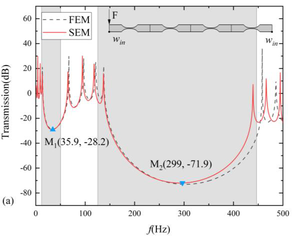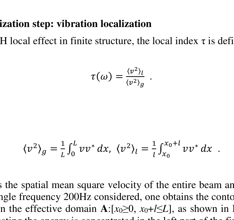 A A A Volume : 44 Part : 2 Two-step optimization design of periodic beam with acoustic black holes Hui Sheng 1 Department of mechanics, Tianjin University Tianjin 300350, PR China Qian Ding 2 Department of mechanics, Tianjin University Tianjin 300350, PR ChinaABSTRACT This paper presents a two-step optimization method to design the acoustic black holes (ABH) profiles according to local property in the target frequency region. In the first step, the concept of ‘local index’ is used to identify the position of local vibration. Then, as the second step, the ABH parameters are multi-objective optimized. The numerical examples indicate that the two-step optimization provide a set of Pareto solutions for lightweight ABH design with board bandgaps. To reveal the mechanism of the attenuation band, the vibration modes of the structure are analyzed and the local property of the ABH is shown. Using dynamic and static characteristics as objective functions, the proposed method provides a way to merge physical meaning in the process of data- based optimization.1. INTRODUCTIONThe acoustic black hole (ABH) has been attracting growing attention due to its capacity for wave focalization in local inhomogeneity structures [1]. The ABH structure has broadband manipulation performance for elastic waves and this focalization property is conducive to various applications prospects such as vibration control [2], sound isolation [3, 4], and energy harvesting [5, 6]. Based on the conception of the phononic crystal (PC), the periodic structures with ABHs, for both 1D beam[7-10] and 2D plate [11-16], have been investigated to expand the effective low-frequency range below the cut-on frequency of ABH effect. The broadband gaps are generated by the photonic crystal effects and the wave retarding of ABH with local resonance [7, 17] , which means it is capable of attenuating elastic waves in a specific wide frequency range. Compared with bandgaps formed through Bragg scattering or local resonances, the ABH periodic structure can break through the high-frequency limitations of the former and solve the problem of the narrow bandwidth of the latter, with its excellent energy concentration ability. Existing studies on multiple ABHs structures include the dynamic characteristics [7, 11, 17, 18] and wave propagation characteristics [19] based on semi-analytical methods and experiments. Besides, many efforts have been devoted to improving the performance of the ABH periodic structure in vibration and noise reduction. To lower the bandgap frequencies and attenuate both flexural and1 hsheng@tju.edu.com 2 qding@tju.edu.com longitudinal waves simultaneously, double-leaf ABH indentations are folded in a V-like structure [20]. A periodic nested ABH beam was proposed [10] and a complex band structure was adopted to reveal its attenuation characteristics of wave propagation. However, most studies of metamaterials based on local resonances focus on wave characteristics and generally consider infinite periodic structures [21, 22]. The actual structure is finite and the reflected waves at the boundaries will cause the local vibration of the structure. Dramatic local vibration induces damage, making the evaluation and localization of local vibration important in the process of structural design. Therefore, it is necessary to establish an analysis and optimization method to design these metamaterial structures based on the local dynamic characteristics. This paper aims at evaluating and optimizing the local property of the ABH periodic beam. A two- step optimization method is proposed, in which the position of local vibration is evaluated in the single frequency and the band frequency region first, then the ABH parameters are multi-objective optimized by NSGA-II. The proposed method is expected to be applied in multiform locally resonant metamaterials.2. THEORETICAL MODELIn section 2.1, the model of the ABH periodic beam is established by the spectral element method (SEM). In section 2.2 and 2.3, we present detailed procedures of the first and the second optimization step, respectively. The overall optimization design process for the ABH is depicted in 错误 ! 未找到引用源。 . The material of the structure is steel.Figure 1 The overall optimization design process2.1. ModelingThe periodic beam is comprised of multiple ABH units as shown in Figure 2. The thickness of the ABH region isℎ(𝑥) = (ℎ 𝑚𝑎𝑥 −ℎ 𝑚𝑖𝑛 )(𝑥𝑙 𝐴𝐵𝐻 ⁄ ) 𝑚 + ℎ 𝑚𝑖𝑛 , (1)where ℎ 𝑚𝑎𝑥 , ℎ 𝑚𝑖𝑛 𝑙 𝐴𝐵𝐻 and 𝑚 are the beam height, residual thickness, ABH length and exponent constant. Based on the Euler-Bernoulli theory, the SEM [23] is used to calculate dynamic properties. The displacement-force relation is given by𝑔(𝑥, 𝜔) = 𝐒(𝑥, 𝜔)𝑤(𝑥, 𝜔) , (2)where 𝐒 is the global dynamic stiffness matrix of the beam. The detailed formulation of S can be found in [23]. With a predefined S , the spatial distribution of the displacement 𝑤(𝑥, 𝜔) and the velocity 𝑣(𝑥, 𝜔) along the ABH beam under the force 𝑔(𝜔) can be obtained.First stage: localization | Original structure gpg Bandgap BW ooo * Local Index t I oo a | Second stage: optimization Figure 2 Sketch of the periodic beam with ABHs.2.2. The first optimization step: vibration localizationTo describe the ABH local effect in finite structure, the local index τ is defined by the ratio as〈𝑣 2 〉 𝑙 〈𝑣 2 〉 𝑔 . (3)𝜏(𝜔) =where𝐿 ∫𝑣𝑣 ∗ 𝐿 0 𝑑𝑥, 〈𝑣 2 〉 𝑙 =𝑙 ∫ 𝑣𝑣 ∗ 𝑥 0 +𝑙 𝑥 0 𝑑𝑥 . (4)11〈𝑣 2 〉 𝑔 =The ratio represents the spatial mean square velocity of the entire beam and that over the region of ( x 0 , x 0 + l ). With a single frequency 200Hz considered, one obtains the contour of the local index τ as x 0 and l sweeping in the effective domain A :[ x 0 ≥0, x 0 + l ≤ L ], as shown in Figure 3(a). The local