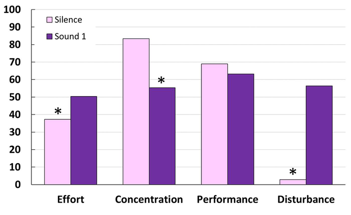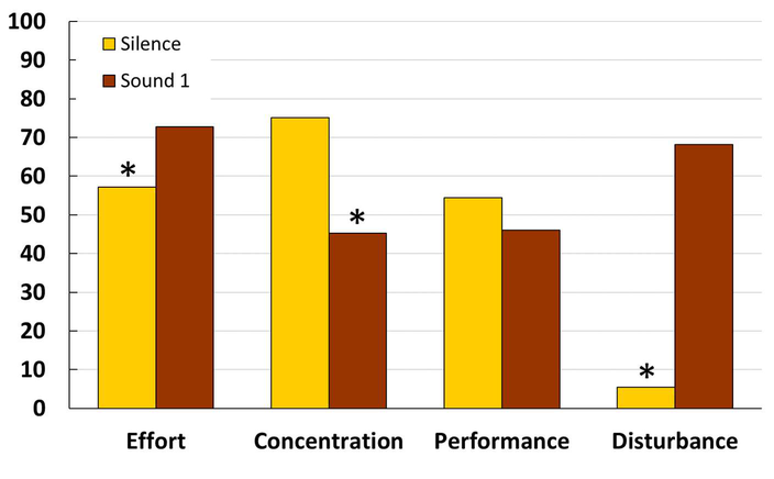 A A A Volume : 44 Part : 2 Subjective assessments of interference during cognitive tasks in noisy and silent working conditions Helga Sukowski Bundesanstalt für Arbeitsschutz und Arbeitsmedizin (BAuA) 44149 Dortmund GermanyABSTRACT In a research project on effects of noise on cognitive performance and wellbeing at work, several scales for subjective assessments with respect to the task execution are applied. The aim is to gain insight into how participants experience task processing in different background sound conditions. In the laboratory, participants worked on a proofreading task and a concentration task twice within an interval of around one week, once in a silent condition and once in one of various conditions with a background sound. In both sessions, participants were asked after each task to assess four aspects with respect to task processing: (1) experienced effort, (2) concentration, (3) performance and (4) disturbance by the acoustical condition. The scales range from 0 to 100. So far, one background sound (office noise) was applied. First, data were analysed regarding the differences between the assessments in the condition with and without background sound, separately for the two performance tasks. For both tasks, participants experienced significantly more effort, lower concentration and higher disturbance in the condition with background sound than in the silent condition. Once all sound conditions are completed, an analysis of the comparison between the groups with different background sound conditions will be conducted.1. INTRODUCTIONIn a research project on effects of noise on cognitive performance and wellbeing in employees, in total two experimental studies are carried out. In the first study participants worked on a proofreading task either twice in a silent condition or twice in a condition with speech as background sound. The aim of that study was to investigate, whether there is a training effect from one run to the other and to collect information on the task and the entire test procedure [1]. The aim of the second study is to investigate effects of different background sounds on the proofreading task and a concentration task. In both studies, in addition to the task execution itself, participants were asked about how they expe- rienced the task processing in the different acoustical conditions using four predefined questions. At first glance, it may seem as if the application of these questions is simply an addendum to the tests on cognitive performance, but it is actually a deliberate approach motivated by specific reasons. First, we are generally interested in how participants experience the situations when they work on cognitive tasks in a condition with background sound, in comparison to a situation that is free from any un- wanted sound. The legal demand that adverse effects on employees caused by factors in the work environment have to be minimized is one aspect of “safety and health at work” and therefore espe- cially meant to provide optimal conditions to avoid detrimental effects on health and wellbeing. Sincei, orn inter.noise 21-24 AUGUST SCOTTISH EVENT CAMPUS ? O? ? GLASGOW unfavorable acoustical conditions are often assessed as a particularly adverse factor in the work en- vironment (e.g. [2]), possible effects of this factor should be considered with more than one method. A further reason is based on the knowledge that task performance and subjective assessments can be different with respect to noise effects. Especially in studies where the cognitive task takes only a short time it might happen that participants can compensate the noise disturbance by higher effort, with the outcome that no effect on the performance is observed, but nevertheless the participants might feel disturbed, interrupted or annoyed by the sound. In these cases it is very important to collect also information on subjective assessments, in order to avoid misleading interpretations of noise effects. Finally, these studies using performance measures and subjective assessments may help to overcome the line between the preferred use of particular methods in field studies and basic research studies, as described in a review on effects of noise on cognitive performance by Schlittmeier & Marsh [3]. Since the research of the BAuA (Federal Institute for Occupational Safety and Health) is focused on occupational settings, further intentions in this project are to carry out the study with employees cov- ering a large age range (intended 30 to 60 years) in contrast to studies with young students, to use a task that is to some extent related to real tasks at a workplace, and as far as possible to use sounds that are realistic for working situations. So far, only one background sound condition could be applied (“sound 1”). Accordingly, the current test set is called “test condition 1”. All information in the following sections refer to the subjective assessments in this test condition. More background sounds are to be applied at a later stage in this ongoing study. 2. METHODS2.1. Participants So far, 23 employees of the Federal Institute for Occupational Safety and Health participated in “test condition 1”. Results from persons who participated only once or only in one of the two tasks are not included in the analysis. For the reading task, 21 participants and for the concentration task, 19 par- ticipants were included. Referring to the number of 21 persons, there were 8 male and 13 female participants. The age of the participants ranged from 29 to 61 (mean = 44 years; median = 41 years), which is very close to the intended range. 2.2. Cognitive tasks In this study, two different cognitive tasks were applied, a proofreading task and a concentration task. Proofreading task: The reading task was developed by the author. The idea and the development of that reading task are explained in detail in previous publications [1; 4]. In short, the main task for the participants is 