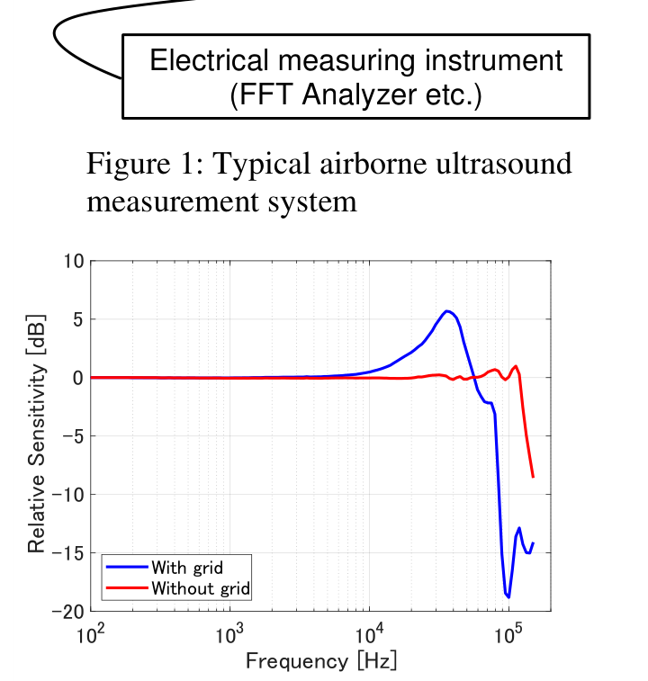 A A A Volume : 44 Part : 2 Practical calibration method of airborne ultrasound measurement sys- tems by using acoustic calibrator Hironobu Takahashi 1 , Koto Hirano 2 and Keisuke Yamada 3 National Institute of Advanced Industrial Science and Technology, National Metrology Institute of Japan (AIST/NMIJ) Tsukuba central 3, 1-1-1 Umezono, Tsukuba, Ibaraki, JapanABSTRACT Airborne ultrasound appliances have been actively developed and are becoming increasingly popu- lar. To evaluate acoustical performances or to assess the safety of the exposure to airborne ultra- sound, quantitative airborne ultrasound measurement is required. Currently, we ourselves need to build a measurement system by combining various measuring instruments for measuring ultrasound. However, there has been little information on the setup or calibration of measurement systems. Thus, this paper showed an example of the practical measurement system and its calibration procedure that consider the balance between cost-effectiveness and accuracy. The measurement system is com- posed of the WS3 microphone specified in IEC 61094-4. Concerning the calibration procedure, it is practical to calibrate one specific frequency by an acoustic calibrator and the other frequencies by adopting the specification of instruments, for example, the relative microphone sensitivity given by a manufacturer. Since the calibration procedure shown here can be broken down into a few steps, we investigated the step regarding the calibration by an acoustic calibrator. As a result, it was found that the achievable best accuracy in this step was expected to be 0.2 dB when using a feedback type acoustic calibrator.1. INTRODUCTIONThe application of airborne ultrasound has become more common in daily life. The pest repellent system is a widely known example of such an application. Applications developed recently are para- metric speakers and airborne ultrasound tactile devices [1, 2], and these emit extremely high-intensity airborne ultrasound. In some cases, the sound pressure level in their vicinity exceeds 140 dB.The above is an example of applications that emit airborne ultrasound intentionally. On the other hand, the application that emits ultrasound unintentionally also exists. Resent electric appliances con- tain a switching or inverter circuit to save electric power consumption. These circuits deal with high- frequency electrical signals ranging from around 10 kHz to 1 MHz. In some cases, electrical parts in the circuit are vibrated by a high-frequency electrical signal and emit airborne ultrasound.1 h.takahashi@aist.go.jp2 koto.hirano@aist.go.jp3 keisuke.yamada@aist.go.jpa 2022 a 2022As the airborne ultrasound application becomes more popular, the safety of the exposure to air- borne ultrasound is always the subject of discussion [3]. The discussion is still ongoing, and clarifi- cation of the measurement is essential to promote the discussion. At present various types of instru- ments are available for airborne ultrasound measurement. However, sometimes the measurement is made without calibration. This causes the problem of measurement reliability when comparing results measured by different people. In particular, the information on uncertainty or accuracy is quite im- portant for comparison.Theoretically, if the calibrated microphone is prepared, the sound pressure at the microphone po- sition can be obtained from the open-circuit voltage of the microphone. However, measuring the accurate open-circuit voltage requires special equipment and complicated procedures. Moreover, due to cost-effectiveness of the microphone calibration, this approach tends to be avoided. At present, there has been little information on the measuring system and its calibration for airborne ultrasound. Thus, this paper shows an example of the practical measurement system and its calibration procedure considering the balance between cost-effectiveness and accuracy. Since the calibration procedure can be broken down into a few steps, we investigated the step regarding the calibration by an acoustic calibrator in particular. 2. MEASUREMENT SYSTEM AND ITS PRACTICAL CALIBRATION2.1. Measurement systemWS3 microphoneFigure 1 shows a typical system for measuring airborne ultrasound. The system consists of a mi- crophone, microphone preamplifier, amplifier and electrical measuring instrument such as an FFT an- alyzer. As the microphone, the WS3 microphone, which is the measurement microphone specified in IEC 61094-4 [4], should be selected considering the frequency range and the calibration procedure explained later. The band-pass filter may be in- cluded in the system to eliminate unwanted fre- quency signals, but it omits in Fig. 1.AmplifierPreamplifierElectrical measuring instrument(FFT Analyzer etc.)Figure 1: Typical airborne ultrasound measurement system102.2. Influence of microphone protection grid5Relative Sensitivity [dB]Ordinally, the protection grid of a microphone is never removed to protect the microphone mem- brane. Figure 2 shows an example of the relative sensitivities of a WS3 microphone with and with- out the protection grid. The sensitivities with the protection grid do not have flat frequency charac- teristics. It reaches about 6 dB at around 40 kHz. Above 40 kHz, the sensitivity drops shapely and less than -10 dB over 80 kHz. In contrast, the sen- sitivities without the protection grid have flat fre- quency characteristics of 1 dB up to 100 kHz.0-5-10-15With grid Without grid-2010 2 10 3 10 4 10 5 Frequency [Hz]Figure 2: Example of the relative free-field sensitivities of WS3 microphone (BK 4939, SN: 2451478), ( - ) With protection grid, ( - ) Without protection grid (From CD-ROM data attached to the microphone)Thus, when using the microphone with the pro- tection grid, the frequency characteristics of the microphone have to be corrected. This correction is a rather complicated process. If the tolerance of approximately 1 dB is allowed for the sensitivity flatness,