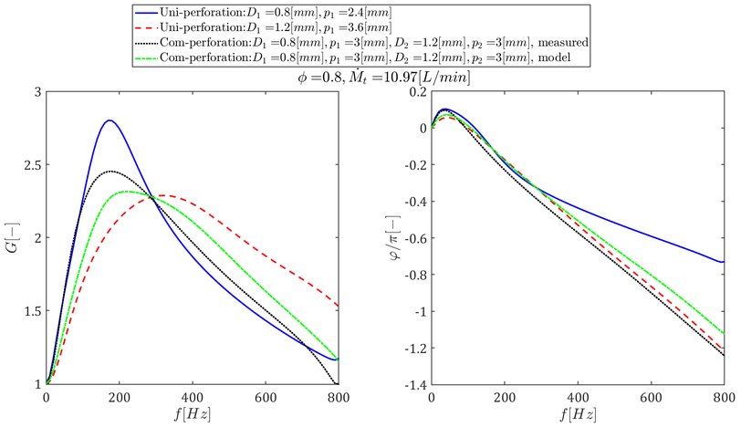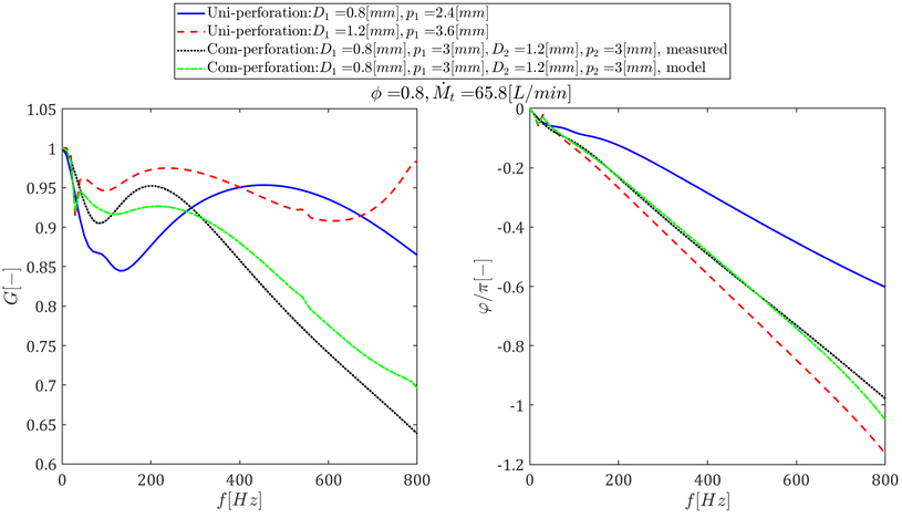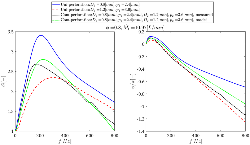 A A A Volume : 44 Part : 2 Characterization and identification of thermoacoustic behavior of flames anchored on burner decks with multiple perforations; Transfer Function (de)composition approachHamed F. Ganji 1Department of Mechanical Engineering, Eindhoven University of Technology, the NetherlandsViktor Kornilov 2Department of Mechanical Engineering, Eindhoven University of Technology, the NetherlandsJeroen van Oijen 3Department of Mechanical Engineering, Eindhoven University of Technology, the NetherlandsInes Lopez Arteaga 4Department of Mechanical Engineering, Eindhoven University of Technology, the Netherlands Department of Engineering Mechanics, KTH Royal Institute of Technology, SwedenABSTRACT The appearance of thermoacoustic instability in combustion systems depends on thermoacoustic property (e.g., Transfer Function (TF)) of used burner / flame. Therefore, an attractive approach to cope with the instability is the purposeful design of the burner thermoacoustics. One of the ideas of how the flame TF can be altered / designed is based on the heuristic idea that the acoustic response of one flame can be counteracted by the appropriately phased response of another flame. For the particular case of premixed, burner deck anchored conical flames, the TF depends on the diameter of perforation. It suggests the concept of combining di ff erent size and shape of perforations in one burner deck. In the present work, the acoustic response of sintered ceramic fibre burners with mixed perforation is investigated using the TF (de)composition principle. By this approach, the cumulative flame TF can be represented as a weighted sum of elemental TF’s of the groups of flames on the basis of the additive nature of the individual flame heat release rate. The capability of this principle to o ff er a designing framework for optimization of burner deck patterns aiming desirable acoustic characteristics will be tested by a course of measurements. Possible simplifications and extensions of the TF (de)composition principle will be discussed.1. INTRODUCTIONThe thermoacoustic instability arises from a closed-loop feedback between the unsteady combustion and the acoustic modes of the entire system. The acoustic wave disturbs the heat release rate of the1 h.faghanpourganji@tue.nl2 v.kornilov@tue.nl3 j.a.v.oijen@tue.nl4 i.lopez@tue.nla slaty. inter.noise 21-24 AUGUST SCOTTISH EVENT CAMPUS O ¥, ? GLASGOW flame, which in turn generates acoustic fluctuations. This phenomenon not only results in loud noise, but can also cause severe physical damage to the equipment. This is still one of the highest risks in the power generation and propulsion industry. Therefore, extensive studies have been conducted to predict and control thermoacoustic instability [1–3]. There are two ways to design this flame-acoustic wave coupling. First, one can adjust the upstream and downstream acoustics in the system-based model by using custom-built silencers / terminators [4]. Second, designing an acoustically stable combustor for the given upstream / downstream acoustics by combining di ff erent sizes and / or shapes of perforations [5]. This design approach is based on the heuristic idea that the acoustic response of one flame type can be compensated or cancelled by other flame types. These two strategies are expected to eliminate thermoacoustic instability. In the current work, However, we focus on the latter to investigate the possibility of such TF superposition. Broadly speaking, many experimental and numerical works have been devoted to the study of the capability of flame / burner TF technique for acoustically compact flames [6–8], and even some analytical models [9–13] have been proposed. One can use these simplified mathematical expressions to identify the key parameters that a ff ect the flame / burner dynamic response. Schuller et al. [9] obtained the acoustic response of a perturbed Bunsen-type flame due to the motion of the flame front motion caused by a uniform and convective velocity perturbation. The accuracy and validity of these models depend on the type of flow disturbance that occurs in the fresh flow. Therefore, Cuquel et al. [10] considered an incompressible divergent free convective velocity perturbation to improve the modeling of the flame front e ff ect. Kornilov et al. [6] studied the role of flame foot motion on flame TF. The result showed a frequency- dependent radial direction of motion of the anchoring point of the flame. Cuquel et al. [11, 14] proposed an analytical TF model of flame foot motion using the Rook model [15,16] for the motion of planar premixed flames stabilized near the burner deck and subjected to acoustic disturbances. They included the e ff ect of flame foot / anchor perturbations induced by an incompressible divergence-free convective velocity perturbation. The contribution of the flame foot motion in combination with the flame front motion (Bunsen-type flame) shows a saturation mechanism of the timee delay at high frequency, which has been validated by a detailed measurement. Despite significant advances in flame TF theory and identification of key parameters in thermoacoustic response of burners, its application in deliberate and systematic design has not received much attention. Kagiya [17] first proposed to select the perforation pattern such that the phase of FT for one group of holes is in antiphase to the TF phase of a second group of holes at the onset unstable frequency. Because of the mutual interaction of the flames and the di ff erence in gain and thermal power of the grouped flames, the idea of phase opposition cannot be fulfilled. However, the idea of TF compensation / cancellation can still work through grouped flames. Kornilov et al. [5] proposed a superposition approach to decompose the TF of multiple groups of laminar Bunsen flames. The cumulative TF was formulated for a particular composite pattern with two di ff erent circular holes and tested experimentally. 