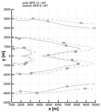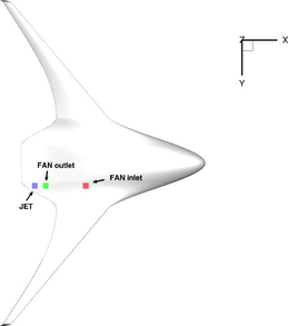 A A A Volume : 44 Part : 2 Flyover noise evaluation of low-noise technologies applied to a blended wing body aircraft Ingrid LeGriffon 1 Office National d’Études et de Recherches Aérospatiales (ONERA) – Paris Saclay University 92322 Châtillon Cedex, France Lothar Bertsch 2 German Aerospace Center (DLR) 37073 Göttingen, Germany Francesco Centracchio 3 Università degli Studi Roma Tre, Dipartimento di Ingegneria 00146,Rome, Italy Daniel Weintraub 4 RWTH Aachen University, Institute of Jet Propulsion and Turbomachinery 52062 Aachen, GermanyABSTRACT In the frame of the European research project ARTEM (Aircraft noise Reduction Technologies and related Environmental iMpact), new aircraft architectures and alternative propulsion systems, e.g. Blended Wing Body (BWB) and geared turbofan engine concept, are investigated, as well as innovative noise reduction technologies such as metamaterials and low noise high-lift device systems. A noise impact assessment has been performed on a long-haul BWB concept developed by Roma Tre University, using the System Noise Prediction Tools of ONERA (CARMEN) and DLR (PANAM). First, shielding effects on the main noise emission sources are discussed, through installation effects hemi-spheres at relevant third-octave band frequencies around the aircraft. Based on the shielding assessment, detailed take-off and landing procedures are simulated for several aircraft configurations. Two alternative motorisations of the BWB are evaluated (BPR 8 and BPR 12), provided by RWTH Aachen. Finally, the most promising low noise technologies developed in the frame of ARTEM are applied, and their impact on the aircraft’s overall noise levels on the ground is discussed. It can be demonstrated how the specific aircraft configuration, the engine type and the additional low-noise technology result in a significant overall noise reduction. An accompagning conference paper presents flyover auralisations based on these total aircraft noise calculations.1 ingrid.legriffon@onera.fr 2 lothar.bertsch@dlr.de 3 francesco.centracchio@uniroma3.it 4 weintraub@ist.rwth-aachen.de 1. INTRODUCTIONNew aircraft concepts are essential if relevant reduction of aircraft noise is a goal. It has been demonstrated in the past that conventional aircraft concepts cannot even reach the H2020 goals, even if equipped with low-noise technology [1]. Consequently, novel designs and concepts are required. In this perspective, the H2020 project ARTEM (for A ircraft noise R eduction T echnologies and related E nvironmental i M pact) was launched, with the goal to develop novel aircraft configurations for 2035 and 2050, investigate noise sources relative to these new concepts and apply additional technology to further reduce the noise received on the ground. In this project, the authors of this paper participated in the development of novel technologies, the aircraft design, the flight simulation, the engine design, and of course the overall noise prediction. This paper summarizes the results of the evaluation of a 2050 Blended Wing Body with novel technology as developed within ARTEM.First, the noise prediction tools used by partners for creating shielding and noise maps are presented. Then, the case study is presented, with the description of the aircraft platform and the installed engines. Selected low-noise ARTEM technology is briefly introduced and the assumed impact on certain component’s noise emission are documented. Finally, shielding effects (due to the very particular aircraft geometry) and noise footprints for the overall aircraft along departure are presented. The presented ground noise results are limited to the assessment of A-weighted Sound Pressure Levels and Sound Exposure Level. 2. SYSTEM NOISE PREDICTION TOOLSTwo system noise prediction tools were used for this case study: Onera’s in-house tool CARMEN, combined with a Boundary Element Method (BEM) / Integral Method solver, and DLR’s PANAM connected to a ray-tracer with integrated diffraction correction referred to as SHADOW. 2.1. ONERA tool chainOver the last decade efforts were made at ONERA to develop a parametric tool, based on simple models, which would be able to predict the noise footprint of an aircraft flyover. This tool, CARMEN, has served for parametric evaluation of new aircraft concepts [2] for the last few years. It is based on three modules: the calculations of noise emission sources, the installation effects and the propagation through the atmosphere to the receiver.The main noise emission sources encountered on a classical tube and wing aircraft and a rotorcraft are implemented. They are mainly based on semi-empirical and semi-analytical formula. Strong hypotheses are made to simplify calculations. Noise sources are considered point sources and the semi-empirical models provide directivity and spectra in the far field. Near field acoustic installation effects are therefore (not yet) taken into account.CARMEN models every noise individually for each time step of the aircraft flight trajectory and then sums them up, taking into account their installation on the aircraft. Masking, reflection, and diffraction are either calculated by BEM or a simplified integral method. These calculations are done beforehand, taking into consideration the aircraft geometry and the point source location. A pattern is calculated for each source location and frequency and fed into CARMEN to add to the source directivities and spectra. The use of BEM is generally bound to low and medium frequencies due to expensive computational time. For higher frequencies, a simplified integral method is used. The proposed method relies on the Kirchhoff approximation [3] to solve scattering problems by means of the Kirchhoff-Helmholtz equation defined on the scattering object surface. For now, only first reflections are considered. In order to take into account diffracted waves, we use the Maggi- Rubinowicz formulation of the Kirchhoff diffraction theory, si