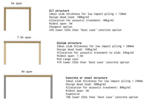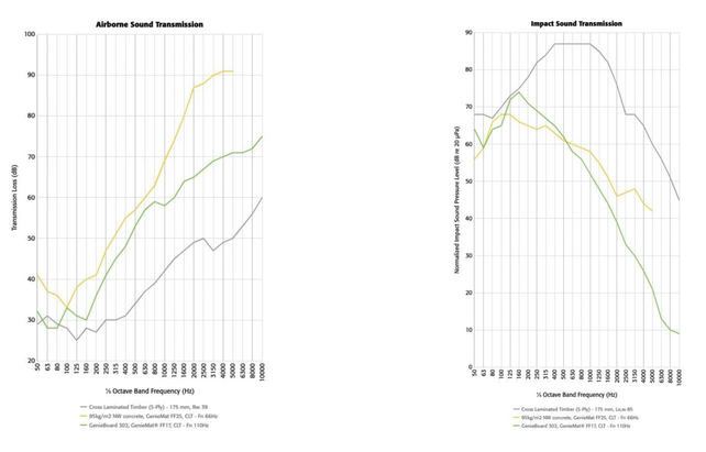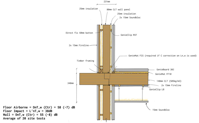 A A A Volume : 44 Part : 2 Quantifying and Reducing Embodied Carbon in the Acoustic Design of Mass Timber Buildings James Bligh 1 Pliteq Iron Gate House, AldgateABSTRACTAn adoption of mass timber construction is the construction industry’s best shot at reducing its significantly large contribution to global CO₂ emissions and to play its part in slowing down the climate crisis. Acoustic design in mass timber buildings typically relies on mass and facing materials in order to meet design criteria, and can account for a high proportion of the embodied carbon (CO₂e) per m² on a build. In order to fit with the ethos of mass timber construction; low embodied carbon, reusable, cradle to cradle materials must be adopted. This paper presents the findings of a study into the relationship of acoustic performance and CO₂e, and proposes alternate approaches that reduce the CO₂e/m² of the acoustic design by up to 66% with little to no detriment to acoustic performance. Through single variable analysis in third party laboratory testing, and in situ testing, it has been found to be possible to utilise low CO₂e acoustic systems that reduce the CO₂e/m² in not only the acoustic design, but structural, M&E and architectural disciplines, too.1. INTRODUCTIONMass timber construction (predominantly Cross Laminated Timber [CLT] in the UK), is a method of utilizing sustainably FCS forestry commissioned timber to create building material that is used for structural support, roofs, floors and walls. It has garnered praise from most building design disciplines for its material properties – from structural loading capacity through to its biophilic appeal. Provided reforestation of these FSC supplies keeps up with demand, and in fact accelerates beyond it, the carbon sequestering capability of mass timber construction could lead to a significant reduction in the carbon emissions of the construction industry. To go theoretically further, if adopted on a global scale, mass timber could sequester more carbon than is omitted during the construction program.Reforestation, increased biodiversity and an increased use of biomass fuels all are secondary beneficial factors to mass timber construction, too.1 jbligh@pliteq.com20-24 august However, the variability in moisture content, density, surface mass and timber species from manufacturer to manufacturer can create uncertainty in the acoustic and structural design of mass timber, leading to overspecification of floor and wall systems. Given these two disciplines have a historical tendency to utilise heavyweight isotropic mass in order to achieve relevant design criteria, the CO 2 e of acoustic and structural design in mass timber buildings often account for an unnecessarily large proportion of the overall building design.This paper sets out an observed correlation in acoustic performance and CO₂e/m² in mass timber construction and proposes alternative methods of construction and design approach that greatly reduces the CO₂e/m² of the acoustic design.2. EMBODIED CARBON AS A METRIC OF SUSTAINABILITY2.1 The lifecycle of a material can be allocated an embodied carbon figure given as CO 2 e, which is obtained through a review of the CO 2 emissions generated from the entire lifespan of the material. This broadly covers raw material sourcing, manufacturing, transportation and longevity of the material (i.e. does it need replacement/maintenance throughout its life, and can it be demounted, recycled or reused at the end of life). As a result of this, a quantitative metric can and should be placed on any building material being used within a mass timber building – from the structural timber, right the way through to the light switches.2.2 Manufacturers of building materials can opt into obtaining Life Cycle Assessments (LCA) in accordance with ISO 14040:2006 or EPD (Environmental Protection Declaration) in accordance with ISO 14025:2006 in order to provide evidence of the ‘sustainability’ of their products. However, these assessments are self declarations that are peer reviewed by regulatory bodies, but do not always address secondary ancillary materials required for those products to be used effectively – for example, floating floor isolators requiring heavy mass to obtain sufficient isolation efficiency or ceiling hangers requiring multiple layers of plasterboard. As a result, seemingly low CO 2 e material products in isolation seem to fit the mass timber ethos, yet require high CO 2 e materials such as multiple plasterboard linings and wet trades such as concrete and screed in order for them to meet required acoustic performance criteria.2.3 The IPCC 6 th Assessment Report offers guidance on how to reduce CO 2 emissions in construction, which are broken into 3 leading changes that yield the largest net reduction emission reduction, as Figure 1 illustrates. The size of the orange circle reflects the size of the contribution of net emission reduction, the intensity of the color within the circle reflects the cost implication of implementing it, assuming material cost, delivery and construction cost:Figure 1: Contribution to net emission reduction by 2030 (Gt CO 2 /yr) – Construction (1)@: Use of wood products Building Elenent Energy Efficiency ~ 1.56 CO2/yr Onsite renewables ~'0.356¢ cO2/yr 2.4 The IPCC report goes further, too. It suggests that not only changes to design criteria to aid emission reduction are considered, but also the role building materials play in the net emission reduction of CO 2 are too. Figure 2 below reflects the data the IPCC report produces, in the same graphical format as Figure 1 follows:Figure 2: Contribution to net emission reduction by 2030 (Gt CO 2 /yr) – Industry (2) 2.5 As can be seen from Figure 2, the efficiency of a building material (whether that be thermal, acoustic, lighting, M&E or other performance based metric) can have a large impact on net emission reduction. This can be interpreted as its ability to per