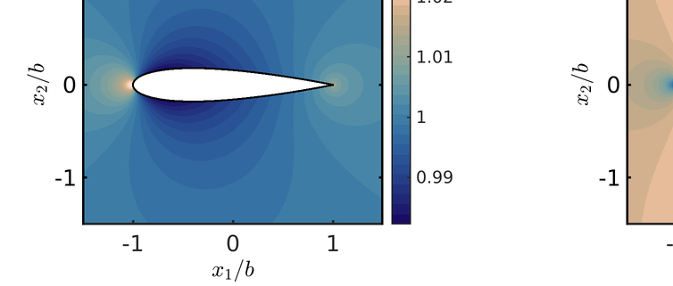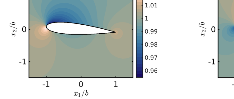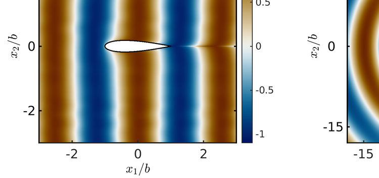A A A Volume : 44 Part : 2 Sound generation by entropy waves interacting with bladesJuan Guzmán-Iñigo 1Department of Mechanical Engineering, Imperial College London London SW7 2AZ, UKAimee S. Morgans 2Department of Mechanical Engineering, Imperial College London London SW7 2AZ, UKABSTRACT Convective temperature fluctuations (also known as entropy waves or hot / cold spots) generate sound when passing through regions of significant flow acceleration. This is called entropy noise. Entropy noise can be generated by nozzles, as happens in rocket engines, or by turbine blade rows, as in gas turbine engines. While several analytical models have been developed for the former case, not many models exist for the latter due to the more complex physical mechanisms involved. When entropy waves pass through nozzles and blade rows, sound is produced by the acceleration of the entropy waves. In blade rows, three additional mechanisms are in play: (i) the entropy waves are turned, (ii) unsteady forces are induced on the aerofoils by the density fluctuations, and (iii) vorticity is shed from the trailing edges of the blades. All these mechanisms are strongly coupled and a ff ect the total entropy noise generated by the blade rows. In this work, we explore numerically the importance of the last two mechanisms. To this end, we present numerical simulations of entropy waves interacting with three canonical aerofoils: a symmetric NACA 0018 aerofoil at zero incidence, the same aerofoil at an angle of attack, and a flat plate at an angle of attack.1. INTRODUCTIONUnsteady combustion is, through unsteady heat release rate, a source of flow disturbances. In gas turbines, these disturbances are the origin of two distinctive sources of noise [1,2]: direct and indirect sources. Direct combustion noise is produced by unsteady heat release rate acting as a monopole source of acoustic fluctuations. Unsteady combustion also generates advective disturbances in the form of vorticity, temperature, and mixture-composition fluctuations. Those fluctuations are silent when advected by uniform flows but generate noise when passing through the nozzle guide vanes (NGVs) at the exit of the combustors. This noise component is termed indirect combustion noise. Entropy noise [3–5] is believed to be its main sub-component and is produced by the acceleration of convective temperature fluctuations (also known as entropy waves or hot / cold spots). Entropy noise contributes to the total exhaust noise of aeroengines, via the downstream propagating component [6]. It also modifies the thermoacoustic stability of the combustor, via the upstream1 j.guzman-inigo@imperial.ac.uk2 a.morgans@imperial.ac.uka slaty. inter.noise 21-24 AUGUST SCOTTISH EVENT CAMPUS O ¥, ? GLASGOW propagating one [7]. Thermoacoustic instabilities [8] arise from the two-way coupling between unsteady combustion and pressure oscillations within the combustor. They lead to large-amplitude oscillations which can severely damage the engine. It is, therefore, a priority in the design of new engines to predict and suppress such instabilities. The correct prediction of thermoacoustic instabilities in the combustors of gas turbines requires the accurate description of the entropy noise generated at the blade rows of the NGV. To date, not many models exist that e ffi ciently quantify this noise component. The most advanced models are based on the actuator-disk theory of Cumpsty and Marble [9, 10]. This approach is based on the assumption that the entropy wavelength is large compared to the length of the blade (compact assumption) and considers flow fluctuations to be plane both upstream and downstream of the row, undergoing a discontinuous jump of strength through it. Mishra and Bodony [11] and Leyko et al. [12] compared the results of this theory with numerical simulations, showing that disk actuator theory is only valid at low frequencies. Extensions of this method have been proposed [13–15] but they remain limited to low frequencies and plane entropy waves. A promising approach to model entropy noise in blade rows at higher frequencies is rapid distortion theory (RDT) [16]. This theory, which recast the linearised Euler equations as a wave equation with a source term due to entropy, was used by Bodony [17] and Guzman-Iñigo et al. [18, 19] in combination with the Green’s function method to obtain models for isolated blades. RDT was also used with the Wiener-Hopf method to obtain solutions for the entropy noise generated by cascades of aerofoils [20,21]. All the aforementioned models assume that the aerofoils thickness, camber and angle of attack are small (thin-aerofoil assumption). This assumption is too restrictive for turbines, where the positive pressure gradient allows for high loads on the blades. Current work is ongoing to relax this assumption. Alternatively, Emmanuelli [22] evaluated the suitability of the CHEOPS-Nozzle model [23, 24] - originally developed for nozzles - for 2D stators . The CHEOPS-Nozzle model is based on the linearised Euler equations and assumes that the acoustic variables, namely perturbation pressure and velocity, are one-dimensional while retaining the 2D / 3D distribution of the perturbation entropy. This approach successfully predicts the entropy noise generated in nozzles but substantially over-predicts it in turbines. This di ff erence shows that di ff erent physical mechanisms are involved in the entropy noise generated by rows of blades compared to nozzles. In nozzles, the main source of sound is the dipole acoustic source produced by the acceleration of entropy disturbances [3, 25]. In turbines, this source coexists with two additional mechanisms. First, the scattering of entropy by the blades produces vorticity at their trailing edges which will act as an additional source of sound. Second, the density fluctuations associated to variations of entropy will induce unsteady forces on the blades (second law of Newton) and these force