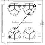 A A A Volume : 44 Part : 2 Precision of room acoustic modelling in open-plan offices Jukka Keränen, Pekka Saarinen, Valtteri Hongisto Turku University of Applied Acoustics, Acoustics Laboratory Joukahaisenkatu 7, FI-20520 Turku, FinlandABSTRACT Room acoustic models can predict parameters that describe acoustic conditions in open-plan offices. An open-plan office of 81 m 2 was experimentally studied. Twenty-two room acoustic conditions were built using different combinations of absorption materials, and office screens. The conditions were measured according to ISO 3382-3. The conditions were modelled using Model A, a software based on raytracing, and Model B, a simple empirical model. The precision was assessed by the difference of predicted and measured single-number values (SNVs) of ISO 3382-3. The mean prediction accu- racy of L p ,A,S,4m was 3.2 dB and 2.0 dB for Models A and B, respectively. The mean prediction accu- racy of D 2,S was 1.2 dB and 2.4 dB for Models A and B, respectively. For Model A, the predicted and measured SNVs were similar in conditions with low sound absorption and low screen height. The agreement was worse in conditions with high sound absorption on the ceiling and walls, and over 1.6-m-high sound-absorbing screens. For Model B, the agreement of D 2,S was a little less precise in most conditions. L p ,A,S,4m with Model B was more precise than with Model A in conditions with high screens and high sound absorption, but less precise in other conditions.1. INTRODUCTIONSpeech is dominant sound source in open-plan and activity-based offices [1]. Distraction of speech can be controlled, e.g., using sound absorption materials, screens, and active masking sound systems. The effect of room acoustic improvements on the acoustic performance of the office can be measured according to ISO 3382-3 [2]. It defines five single-number-quantities: spatial decay rate of A- weighted sound pressure level (SPL) of speech, D 2,S [dB], A-weighted SPL of speech at 4-meter- distance from the speaker, L p,A,S,4m [dB], A-weighted SPL of background noise, L p,A,B [dB], distrac- tion distance r D [m], and comfort distance, r C [m]. The single-number values (SNVs) have also been predicted in case studies. The prediction methods were based on raytracing method [3-6] or empirical models [7,8]. Our study investigates the predic- tion accuracy of SNVs using the raytracing method [9] and the empirical model [7] in 22 room acous- tic conditions built in an open-plan office. The predicted values are compared to measured values, which have been already published [10]. 2. MATERIALS AND METHODS2.1. Open-plan office and 22 studied conditions The studied open-plan office (81 m 2 ) involved 12 workstations (Figure 1). Twenty-two room acoustic conditions were built in the office. The conditions (Table 1) varied four parameters: ceiling absorption (high or low), wall absorption (high or low), screen absorption (`-´, high or low), and screen height (`-´, 1.3, 1.7, or 2.1 m). The high ceiling absorption was implemented using 20 mm mineral wool tiles in the suspended ceiling (90% coverage) and low ceiling absorption using unperforated gypsum tiles. The high wall absorption was implemented by mounting 40 mm mineral wool panels on the wall surface (20% coverage). The low wall absorption was when the panels were not mounted. Two types of screens were used around the workstations: sound-absorbing office screens (high) and textile coated office screens (low). The screens were built to three different heights. The screen absorption and height are `-´ when the screens were removed.Table 1: The investigated conditions. Description of sound absorption, screen height, and absorption coefficients for Mo del B.Screen Condition height h [m] α c α f 1 high high high 2.1 0.85 0.8 2 high high high 1.7 0.85 0.7 3 high low high 2.1 0.85 0.6 4 high low high 1.7 0.85 0.5 5 high high high 1.3 0.85 0.6 6 high high low 1.3 0.85 0.4 7 high low high 1.3 0.85 0.4 8 high low low 1.3 0.85 0.2 9 low high high 2.1 0 0.8 10 low low high 2.1 0 0.6 11 low high high 1.7 0 0.7 12 high high - - 0.85 0.2 13 low low high 1.7 0 0.5 14 high low - - 0.85 0 15 low high high 1.3 0 0.6 16 low high low 1.7 0 0.5 17 low high low 1.3 0 0.4 18 low low high 1.3 0 0.4 19 low low low 1.7 0 0.3 20 low low low 1.3 0 0.2 21 low high - - 0 0.2 22 low low - - 0 0Sound absorption Abs. coefficients ceiling / walls / screens ceiling / furniture2.2. Measurements The room acoustic measurements are described in detail in [10]. Spatial decay of speech was deter- mined according to ISO 3382-3 [11] using a calibrated omnidirectional loudspeaker that produced loud pink noise. The SPL of the pink noise was measured in six workstations that were on two meas- urement paths (Figure 1). The SNVs were determined individually for both paths in all the 22 condi- tions. The mean SNVs were determined for all the 22 conditions. Figure 1: The open-plan office with 12 workstations. The sound source was in the corner (O). Themeasurement positions ( ) were in six workstations. Two measurement paths were used.2.3. Model A A simulation software [9] based on raytracing method was used to predict the spatial decay of speech in the workstations (Figure 1). The SNVs were determined on both paths in the same way as in the measurements (Sec. 2.2).The first model was created for condition 22 (low ceiling absorption, low wall absorption, no screens). The dimensions and locations of furniture and other midsize objects in the room were precisely measured and replicated in the model. The sound absorption coefficients were defined for the boundary surfaces and furniture that were the same in all the predicted conditions. This model was used to “calibrate” the predictions by comparison to measured results of SPL of speech and reverberation time in condition 22. The other conditions were modeled by creating variations of the first model. The variations involved the additional absorption materials,
