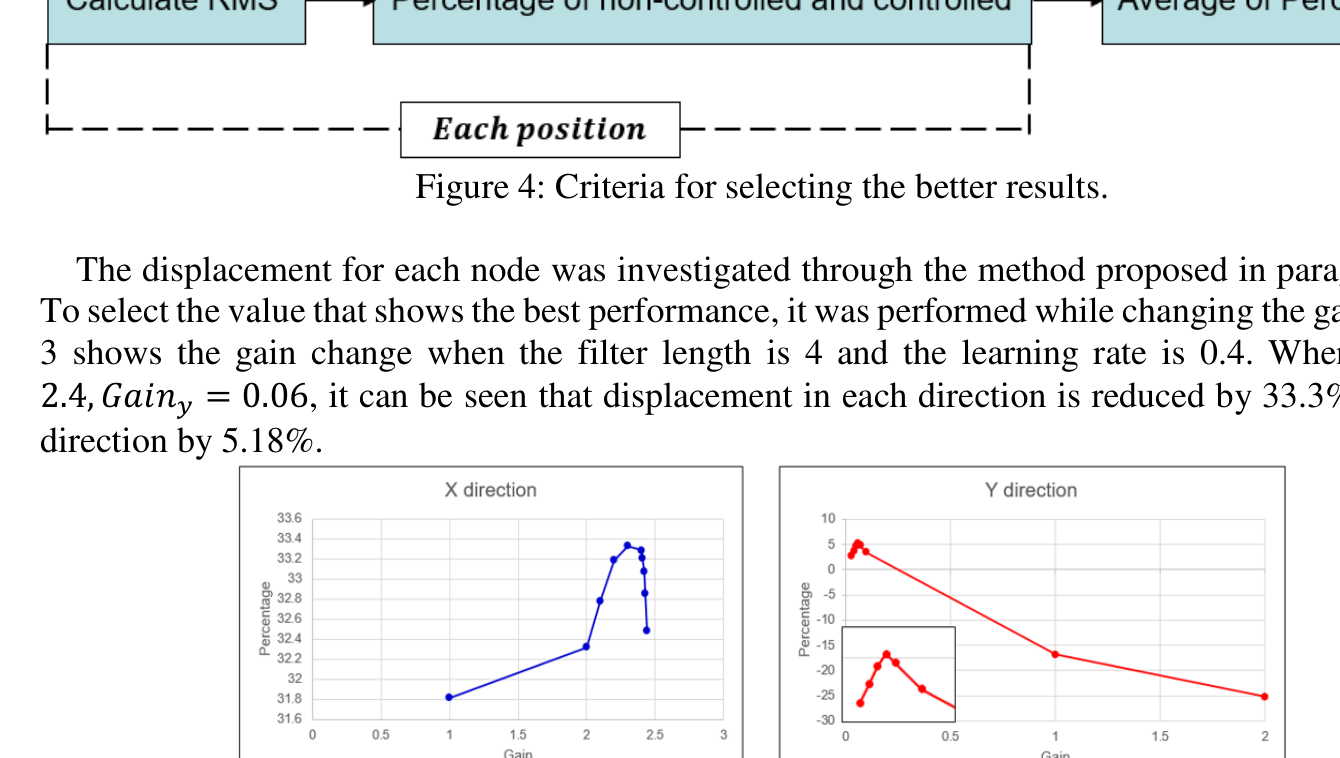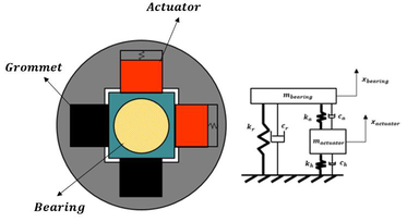 A A A Volume : 44 Part : 2 Modeling, analysis, and control of shaft transverse vibration from rotating systems through active bearing concept Junhee Kwon 1 Yeongnam University 280 Daehak-Ro, Gyeongsan, Gyeongbuk 38541, Republic of Korea Dongwoo Hong 2 Yeongnam University 280 Daehak-Ro, Gyeongsan, Gyeongbuk 38541, Republic of Korea Byeongil Kim 3 Yeongnam University 280 Daehak-Ro, Gyeongsan, Gyeongbuk 38541, Republic of KoreaABSTRACT Rotating parts are widely applied to mechanical systems such as pumped-storage hydroelectricity, nuclear power plant, machining tools and so on. While operating, they can be easily damaged or destroyed by unbalanced mass, bending, torsion and misalignment. In order to solve this problem, rotor vibration control can be conducted through active bearing concept. In this work, active bearing system which consists of piezo actuators and rubber grommets is proposed and applied to a rotating system motivated from a pumped-storage hydroelectricity, for performing active vibration control. The main point of this paper is to prevent damage or failure caused by harsh transverse vibration through active bearings. First, the rotating system is modeled by transfer matrix method (TMM) based on Euler-Bernoulli beam theory and in order to check accuracy of this model, the responses of TMM are compared with the responses from the finite element method (FEM). For implementing active control in real time, normalized least mean square (NLMS) algorithm is utilized. The results show that the proposed active bearing concept shows great performance on the attenuation of shaft transverse vibration.1. INTRODUCTIONRotor unbalance can have a critical effect on damage to mechanical systems such as bearings and gears and can significantly shorten the life span of rotating equipment. Since it is impossible to manufacture a perfectly balanced rotor, methods are being sought to minimize the effect of unbalance. To solve this problem, Cao et al [1] proposed Active Magnetic Bearing (AMB) performance comparison of two analytical methods. Kim et al [2] proposed a new type of compact, high-1 rnjswns02@ynu.ac.kr2 dongwoo229@naver.com3 bikim@yu.ac.kr performance five-axes AMB with solid cores and rotor. Dede et al [3] proposed analytical method for rotor system using FEM and Lumped Parameter Method.In this paper, Rotor modeling proceeds with FEM and TMM and analyzes the difference between the two analysis methods to verify that the TMM model is correct. Also, a novel active bearing composed piezo actuators and rubbers are proposed. After coupling the active bearing to the verified TMM-based model, the signal is traced through NLMS adaptive algorithms and simulation is performed by controlling the actuator through the traced signal. The simulation results show that the displacement in each direction is greatly reduced.2. Design of the rotor systemIn this section, rotor system motivated from a pumped-storage hydroelectricity (See Figure 1) The blue and green mean shaft, yellow means disk including unbalance mass.. Figure 1: Rotor system motivated from a pumped-storage hydroelectricity.2.1. Finite Element Method The FEM-based modeling using Euler-Bernoulli beam theory consists of 26 elements and 27 nodes. Mass matrix, stiffness matrix and state vector used for modeling for one element are as follows.156 + 𝑚 𝑖 22𝐿 54 −13𝐿 22𝐿 4𝐿 2 + 𝐼 𝑑 13𝐿 −3𝐿 2𝜌𝐴𝐿 420 [M 1 =] (1)54 13𝐿 156 −22𝐿 −13𝐿 −3𝐿 2 −22𝐿 4𝐿 26 + 𝑘 𝑖𝑗 3𝐿 −6 3𝐿 3𝐿 2𝐿 2 −3𝐿 𝐿 2𝐾 1 = 2𝐸𝐼]𝐿 3 [(2)−6 −3𝐿 6 −3𝐿 3𝐿 𝐿 2 −3𝐿 2𝐿 2q = [𝑥 1 𝜓 1 𝑥 2 𝜓 2 ] 𝑇 (3)The m i , 𝑖 𝑑 and k ij mean additional mass, moment of inertia and stiffness, respectively, such as disks and bearings. Damping matrix is constructed taking in to account the gyroscope effect of the disk element (See Equation 5). I d 𝜓 ̈ 𝐷 + 𝐼 𝑝 Ω𝜃 ̇ 𝐷 = 𝑀 𝑦𝐷𝐿 + 𝑀 𝑦𝐷𝑅 I d 𝜃 ̈ 𝐷 −𝐼 𝑃 Ω𝜓 ̈ 𝐷 = 𝑀 𝑥𝐷(4)𝐿 + 𝑀 𝑥𝐷𝑅0 0 0 0 0 0 0 Ω𝐼 𝑝 0 0 0 0 0 −Ω𝐼 𝑝 0 0]G D = [(5)The equation of motion is derived by assembling the matrices mentioned above. The equation of motion is abbreviated as Equation (7), and the value of state at each point can be known through matrix calculation.𝑞 𝑦 ̇ ] + [𝐾 𝑥 0 0 𝐾 𝑦 ] [𝑞 𝑥[ 𝑀 𝑥 0 0 𝑀 𝑦 ] [𝑞 𝑥𝑞 𝑦 ̈ ] + [ 0 𝐺 𝑥 𝐺 𝑦 0 ] [𝑞 𝑥𝑞 𝑦 ] = [𝐹 𝑥𝐹 𝑦 ](6)𝐹 𝑦 ] = [𝐾 𝑥 −Ω 2 𝑀 𝑥 Ω 𝐺 𝑥 Ω 𝐺 𝑦 𝐾 𝑦 −Ω 2 𝑀 𝑦] [ 𝑞 𝑥[ 𝐹 𝑥𝑞 𝑦 ](7)−1𝑞 𝑥 𝑞 𝑦 ] = [𝐾 𝑥 −Ω 2 𝑀 𝑥 Ω 𝐺 𝑥 Ω 𝐺 𝑦 𝐾 𝑦 −Ω 2 𝑀 𝑦[ 𝐹 𝑥𝐹 𝑦 ][](8)2.2. Transfer Matrix MethodThe TMM-based modeling using Euler-Bernoulli beam theory. The shaft, mass, disk, bearing transfer matrix are expressed in Equations (9) to (12).[ 1 𝐿 𝐿 2𝐿 36𝐸𝐼 0 0 0 02𝐸𝐼𝐿 20 1 𝐿 𝐸𝐼2𝐸𝐼 0 0 0 00 −𝐼 𝑑 Ω 2 1 𝐿 0 jΩ 2 𝐼 𝑝 0 0 0 0 0 1 0 0 0 0T shaft =(9)0 0 0 0 1 𝐿 𝐿 2𝐿 32𝐸𝐼6𝐸𝐼𝐿 20 0 0 0 0 1 𝐿 𝐸𝐼2𝐸𝐼 0 −𝑗Ω 2 𝐼 𝑝 0 0 0 −𝐼 𝑑 Ω 2 1 𝐿 0 0 0 0 0 0 0 1 ][ 1 0 0 0 0 0 0 0 0 1 0 0 0 0 0 0 0 0 1 0 0 0 0 0 m d Ω 2 0 0 1 0 0 0 0 0 0 0 0 1 0 0 0 0 0 0 0 0 1 0 0 0 0 0 0 0 0 1 0 0 0 0 0 𝑚 𝑑 Ω 2 0 0 1]T mass =(10) [ 1 0 0 0 0 0 0 0 0 1 0 0 0 0 0 0 0 −𝐼 𝑑 Ω 2 1 0 0 𝑗𝐼 𝑝 Ω 0 0 𝑚 𝑑 Ω 2 0 0 1 0 0 0 0 0 0 0 0 1 0 0 0 0 0 0 0 0 1 0 0 0 −𝑗𝐼 𝑝 Ω 0 0 0 −𝐼 𝑑 Ω 2 1 0 0 0 0 0 𝑚 𝑑 Ω 2 0 0 1]T disk =(11)[ 1 0 0 0 0 0 0 0 0 1 0 0 0 0 0 0 0 0 1 0 0 0 0 0 −(𝑘 𝑥𝑥 + 𝑗𝑐 𝑥𝑥 Ω) 0 0 1 𝑘 𝑥𝑦 + 𝑗𝑐 𝑥𝑦 Ω 0 0 0 0 0 0 0 1 0 0 0 0 0 0 0 0 1 0 0 0 0 0 0 0 0 1 0 𝑘 𝑦𝑥 + 𝑗𝑐 𝑦𝑥 Ω 0 0 0 −(𝑘 𝑦𝑦 + 𝑗𝑐 𝑦