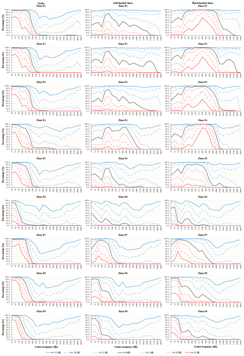 A A A Volume : 44 Part : 2 Masking effect of HVAC noise on walking sounds on concrete floors Jesse Lietzén 1 , Mikko Kylliäinen 2 Tampere University Unit of Civil Engineering P.O. Box 600 33014 Tampereen yliopisto, Finland Ville Kovalainen 3 AINS Group Department of Acoustical Engineering Ilmarisenkatu 18 A 20520 Turku, FinlandABSTRACT Background noise masks living sounds in apartment buildings. Depending on the sound insulation properties of the structures of the apartments, background noise affects the audibility of the perceived airborne and impact sounds from neighboring dwellings. This preliminary study focused on the masking effect of the background noise generated by HVAC systems on the impact sounds generated by walking on concrete floors. The study was carried out by determining the signal-to- noise ratios of walk induced sound levels on the concrete floors and measured background noise levels. The walking sounds were generated by walking with socks and shoes on nine concrete floors, and the sound pressure levels were measured in a receiving room below the floors. These walking sounds were compared with background noise levels which consisted of the results collected in 210 measurements in Finnish apartment buildings. The results of the study indicate that the background noise masks sound from walking with socks and shoes differently.1. INTRODUCTIONLiving sounds comprise both airborne and impact sounds caused by human activities such as talking, music, children playing, and walking. A subjective perception of sound insulation against living sounds between neighboring dwellings is affected by the level and the character of the sounds as well as the sound insulation properties of the structures between rooms. Furthermore, the perception of sound insulation depends on the background noise of the receiving room due to sound masking effect [1]. In apartment buildings, the background noise usually occurs due to environmental sound sources, such as traffic, and HVAC systems.In case of airborne sound insulation, it has long been recognized that the masking effect is an important factor for the perceived sound insulation [2–4]. Increasing background noise in buildings, leads to improved speech privacy between rooms [5]. The background noise also affects the perception of drum sounds, i.e., the walking sounds generated in the same room with listeners [6].1 jesse.lietzen@tuni.fi 2 mikko.kylliainen@tuni.fi 3 ville.kovalainen@ains.fi Furthermore, the masking effect is a relevant issue for the perceived impact sound insulation, however, at low-frequencies, it is possible that the background noise cannot affect the audibility of the walking induced impact sounds [7, 8].The purpose of this preliminary study was to investigate the masking effect of HVAC noise on walking sounds on concrete floors. This study combines data from two studies carried out in 2012. First, the data includes laboratory measurements of walk induced impact sounds on nine concrete floors. Secondly, field measurement data from background noise level spectra measured in 210 Finnish apartment rooms have been used. To study the masking effect of the HVAC noise, signal- to-noise ratios (SNR) of walk induced sound levels and background noise were determined.2. MATERIALS AND METHODS2.1. Walking sounds on concrete floorsThe experiments were carried out at a laboratory, where the bearing floor structure was a 265 mm thick concrete hollow core slab (400 kg/m 2 ) [9]. The floor, on which the walking tests occurred, lied between vertically adjacent source and receiving rooms. The measured reverberation times of the receiving room corresponded well with those of typical furnished rooms in Finnish dwellings [10]. Therefore, the sound spectra measured in the receiving room can be considered to correspond well with the typical spectra in residential dwellings.In addition to the bare floor (F1), the experiments were carried out on eight covered floors (F2– F9) to cover the typical impact sound insulation spectra found in dwellings. The size of the floor covering was 3,0 x 4,0 m 2 in each case. Table 1 shows the layers of floor surface structures for all the studied floors, as well as the weighted reduction of impact sound pressure levels Δ L w for floor coverings, and dynamic stiffnesses s ’ for mineral wools. Furthermore, the measured single-number quantities (SNQ) L ’ n,w and L ’ n,w + C I,50-2500 have been shown for each floor in Table 1. These standard measurements were carried out by using a tapping machine. Note that in case of negative spectrum adaptation terms C I,50-2500 , the value of the term in the sum L ’ n,w + C I,50-2500 was 0 dB. Tab le 1: The structural layers of floor coverings on the nine studied floors, and SNQs of the floo rs.Denotation Structural layers of floor covering L ’ n,w L ’ n,w + C I,50–2500Floor F1 No covering 80 dB 80 dBFloor F2 Cushion vinyl, Δ L w = 2 dB 78 dB 78 dBFloor F3 Cushion vinyl, Δ L w = 21 dB 59 dB 59 dBFloor F4 Multilayer parquet and soft underlay, Δ L w = 20 dB 60 dB 60 dBFloor F5 Wall-to-wall carpet, Δ L w = 21 dB 59 dB 59 dBFloor F6 Wall-to-wall carpet, Δ L w = 37 dB 43 dB 47 dBMultilayer parquet 14 mm Soft underlay 2 x plasterboard 15 mm (30 kg/m 2 ) Mineral wool 13 mm, s ’ = 16,1 MN/m 3Floor F751 dB 56 dBMultilayer parquet 14 mm Soft underlay 2 x plasterboard 15 mm (30 kg/m 2 ) Mineral wool 50 mm, s ’ = 11,5 MN/m 3Floor F844 dB 53 dBMultilayer parquet 14 mm Soft underlay 4 x plasterboard 15 mm (60 kg/m 2 ) Mineral wool 50 mm, s ’ = 11,5 MN/m 3Floor F942 dB 48 dB The present standardized SNQs expect that the main impact sound source is walking with hard- heeled shoes. This sound type does not necessarily reflect the most typical impact sounds in all countries [11–14]. Therefore, three male walkers W1, W2 and W3 (Table 2) wore socks, soft- heeled shoes, and hard-heeled shoes in the walking sound experiments. The same personal footwear was used through the tes
