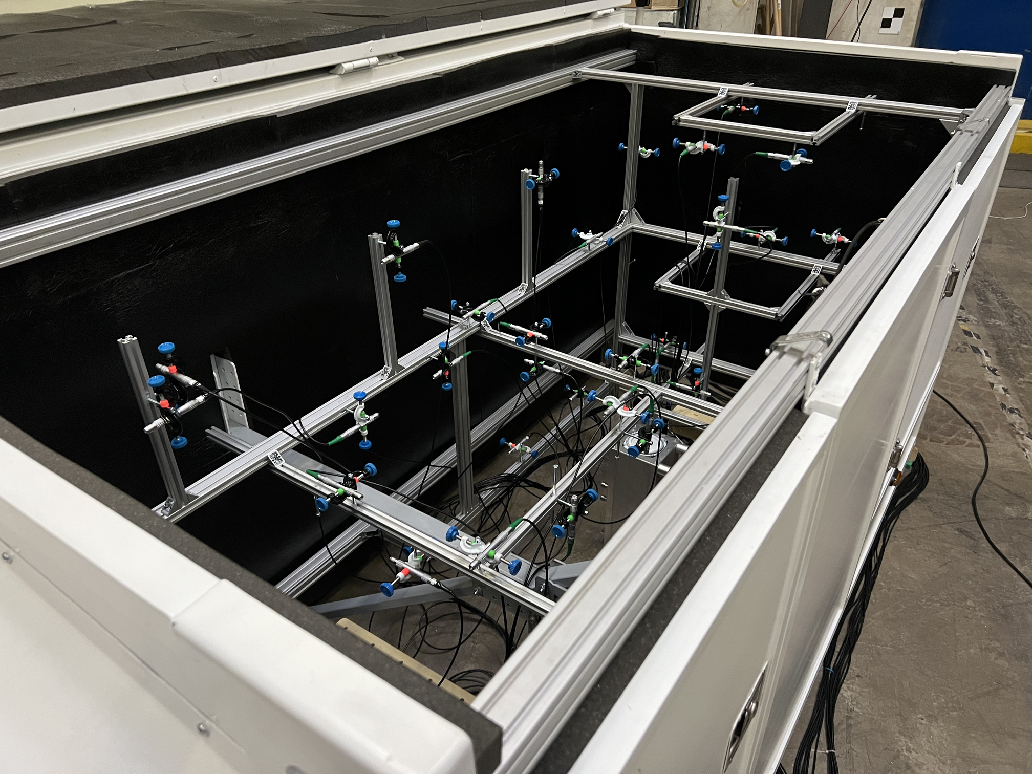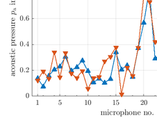 A A A Volume : 44 Part : 2 Inverse scheme for sound source identification in a vehicle trailerJonathan Nowak 1TU Wien Getreidemarkt 9, 1060 Vienna, AustriaReinhard Wehr 2AIT Giefinggasse 4, 1210 Vienna, AustriaManfred Haider 3AIT Giefinggasse 4, 1210 Vienna, AustriaManfred Kaltenbacher 4TU Graz In ff eldgasse 18, 8010 Graz, AustriaABSTRACT Tire / road noise is a highly relevant topic for improving the comfort and experience of drivers and residents living in high-tra ffi c areas. With growing numbers of electric cars, the relevance of tire noise even increases since it is the dominant sound source in the middle-speed range. We want to further investigate the acoustic sources relevant to tire / road interactions. Therefore, we apply di ff erent sound source localization algorithms to measurement data acquired inside a large measurement trailer equipped with microphone arrays. The methods for sound source identification used are well-known beamforming-based algorithms and a new inverse scheme using finite element simulations. The latter scheme requires the identification of the acoustic properties of the trailer in the stationary case. In this contribution, we present the characterization process and results of the sound source localization in this stationary case.1. INTRODUCTIONNorms like CPX (Close Proximity Method) or OBSI (On-Board Sound Intensity Method), both used for the acoustic characterization of road surfaces, require sound pressure or intensity level measurements. However, no sound source localization at the tire is performed.1 jonathan.nowak@tuwien.ac.at2 reinhard.wehr@ait.ac.at3 manfred.haider@ait.ac.at4 manfred.kaltenbacher@tugraz.ata slaty. inter.noise 21-24 AUGUST SCOTTISH EVENT CAMPUS O ¥, ? GLASGOW At AIT, the Austrian Institute of Technology, a new trailer for CPX measurements was built. This trailer shall be used for di ff erent sound localization algorithms at the rolling tire. One of these methods is a new approach that uses microphone array measurements and finite element (FE) simulations. With this inverse method, the boundary conditions of the given measurement setup can be taken into account. Thus, determining the correct acoustic properties of the trailer is crucial. In this contribution, the vehicle trailer’s characterization process and the FE model’s validation are presented, and sound source localization results are shown.2. MEASUREMENTS SETUPIn this section, the measurement setup of the characterization process is presented. Figure 1 shows the inside of one compartment of the trailer. The trailer has two mirror-symmetric compartments with one tire in each compartment. They are closed on all sides and the top but completely open at the bottom. Inside the trailer, 33 microphones are mounted in a 3D array, such that the microphones surround the sound source. As in this preliminary study, the trailer is stationary, a loudspeaker is used as an acoustic source instead of a rolling tire. This loudspeaker is exited with sinusoidal frequencies between 200 ≤ f / Hz ≤ 1600. The electric current through the loudspeaker due to the excitation signal is measured parallel to the acoustic signals. With previous laser-scanning vibrometer measurements, the amplitude and phase of the membrane can be determined via the measured electric current, which is later used as excitation in the FE model. On the inside of the trailer compartment, porous absorbers are mounted for sound insulation and to absorb the radiated sound.Figure 1: Used CPX trailer.3. SOUND SOURCE LOCALIZATION – INVERSE SCHEMEThe Inverse Scheme is a new approach for sound source localization. It identifies the acoustic sources located in a predefined source region Ω sc , see Figure 2, via solving the inverse problem of reconstructing the source distribution in the source region by minimizing the di ff erence between the measured and simulated acoustic pressure at given microphone positions x i . Sound sources are modeled as complex-valued monopole source strengths e σ at each node of the source region. Since the inverse problem is ill-posed, a Tikhonov regularization is used. The optimization is gradient-based, and for its calculation, the adjoint method is used. Details on the mathematical formulation can be found in [1,2]. Figure 2: Computational domain of the Inverse Scheme.4. FORWARD MODELIn contrast to known methods for sound source localization that use microphone arrays and analytic approaches as a source model, one advantage of the Inverse Scheme is that the boundary conditions, i. e. partially reflecting acoustic absorbers or scatterers can fully be taken into account. This, of course, requires knowledge of the material properties of the acoustic absorbers and obstacles. In other words, a good FE forward model is required to expect good results via the Inverse Scheme. In this section, the forward model is presented, and a comparison between measurements and simulations is performed.4.1. Governing equations The forward problem in its strong form is defined in the frequency domain as∇· ∇ p a + k 2 p a = σ in Ω , (1)also known as the Helmholtz equation. In Equation (1) p a = p a ( x , ω ) denotes the acoustic pressure in frequency domain, ω the angular frequency, k = ω/ c 0 the wave number, σ the sound sources and Ω the computational domain. Since we solve the forward problem via the FE method, we derive the weak form of Equation (1) by multiplying with an arbitrary (complex-valued) test function ϕ and integrating by parts which leads to Z ∇ p a · ∇ ϕ − k 2 p a ϕ d x = − Zσϕ d x + Z∂ Ω ∇ p a ϕ · d s ∀ ϕ ∈ V . (2)Here, σ is a sound source distribution in the volume. Further, V denotes the function space of the test functions ϕ , which is a real Hilbert space [1]. With the linearized conservation of momentum, which reads in the frequency domain asj ωρ 0 v a = −∇ p a , (3)where v a denotes the acoustic particle velocity, we can rewrite the surface integr