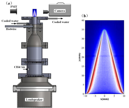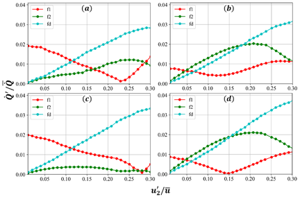 A A A Volume : 44 Part : 2 The response of a conical flame to a dual-frequency excitationJianyi Zheng 1 , Lei Li 2 , Guoqing Wang 3 , Liangliang Xu 1 ,Sirui Wang 1 , Xi Xia 1 , Fei Qi 1 1 School of Mechanical Engineering, Shanghai Jiao Tong University, 800 Dong Chuan Rd, Minhang, Shanghai, 200240, P. R. China 2 National Key Laboratory of Science and Technology on Aero-Engine Aero-thermodynamics, Research Institute of Aero-Engine, Beihang University, Beijing, 100191, P. R. China 3 King Abdullah University of Science and Technology (KAUST), CCRC, Thuwal, 23955-6900, Saudi ArabiaABSTRACT This work investigates the response of a conical premixed flame to a dual-frequency excitation, based on the integrated CH* signal collected from a photomultiplier tube (PMT), the upstream velocity disturbance measured by a hotwire, and the chemiluminescence signal captured by high-speed imaging. The results show that, in addition to the excitation frequencies, a notable flame response can also be observed at the interaction frequency, where the corresponding velocity fluctuation is relatively small. This result means that, at the interaction frequency, the velocity fluctuation contributes little to the flame response. Such interacted response generally occurs at intermediate excitation frequencies but disappears as either excitation frequency is below the cut-off frequency. And it increases linearly with the excitation amplitude, with nearly zero dependence on the phase difference. Furthermore, the flame front is extracted based on the chemiluminescence images to analyze the flame area fluctuation. The resultant phase response implies that the fluctuation of the difference frequency propagates downstream convectively, similar to that of the excitation frequencies. Interestingly, the flame area fluctuation at the difference frequency shows significant response and a low-pass characteristic, whereas the CH* fluctuation approaches zero at those low frequencies. 1. INTRDUCTIONThe resonant coupling between the unsteady combustion heat release and the acoustic system leads to combustion instabilities in aero-engines or land-use turbine combustors[1–3]. When combustion instability occurs, the flame surface is usually disturbed by acoustic waves at one fundamental, harmonic, or multiple frequencies. The periodically oscillating heat release rate in turn power the acoustic wave inducing extremely harmful large-amplitude pressure pulsations[4].The low-order acoustic network model is a general approach to analyzing and predicting the combustion instability, in which the acoustic part is described by the transfer matrix, and the flame response is generalized by a compact flame release heat model. The combustion oscillation frequency and amplitude of the system can be determined by solving the above models, which require accurate flame response characteristics at specific frequencies. Studying the unsteady heat release by exciting laminar premixed flame with loudspeakers is an effective method to investigate the interaction of acoustic waves and flames. This has prompted many experimentally[5–7] and analytically[8– 10]studies on the dynamics of laminar premixed flames under acoustic excitation. In addition, numerical simulation[11–14] can also be used to solve the problem. To accelerate the calculation, broadband signals containing a large number of frequencies are used as disturbances[15–17] in simulation, which may cause the superposition of interaction disturbances and original responses, resulting in deviations in simulation results. Besides, multiple thermoacoustic modes can coexist at the same time during combustion instability with multiple frequencies mutually synchronized[18,19]. The above problems emphasize the importance of investigating the flame response characteristics under multiple frequencies.There has been much research on flame response under single frequency excitation. The G- equation-based laminar premixed flame model has been able to predict the linear flame response under single-frequency excitation. Fleifil et al. [20] derived a first-order filter model to describe the responses of the flame to the axial acoustic disturbances in a simple Poiseuille flow. Ducruix et al. [21] extended such a model to general axisymmetric conical flames with a uniform, one-dimensional velocity excitation. Inspired by the experimental measurements[22], Schuller et al. substituted the uniform velocity excitation with a convective wave and obtained a better agreement with the experimental results[23]. Birbaud et al. then identified the propagation mode in the fresh stream based on a Strouhal number and emphasized the influence of the feedback effect of the flame front on the fresh stream dynamics[24]. Cuquel et al. investigated the influence of confinement sidewalls on the response of premixed conical flame, which helps to transpose results gathered on single burners to multiple injection configurations when the burnt gases cannot fully expand due to the presence of neighboring flames[25]. The stretch effect was reported to affect the flame speed fluctuation, which becomes comparable to that of the flame surface area and is responsible for the experimentally observed filtering effect in which the flame wrinkles developed at the flame base decay along the flame surface for large frequency disturbances[26,27]. Cuquel et al. demonstrated the important role of flame foot oscillations in controlling the saturation of the phase lag[28]. Under the excitation of a single-frequency acoustic disturbance, the experimental study also found that the flame does not always exhibit a linear response, and changing the perturbation amplitude can lead to the nonlinear response of the flame[29,30], whose non-linearity is mostly in the phase of the transfer function and manifests itself as a roughly constant phase at high forcing amplitude.Compared to flames perturbed by a single-frequency acoustic wave, flames subjected to mul