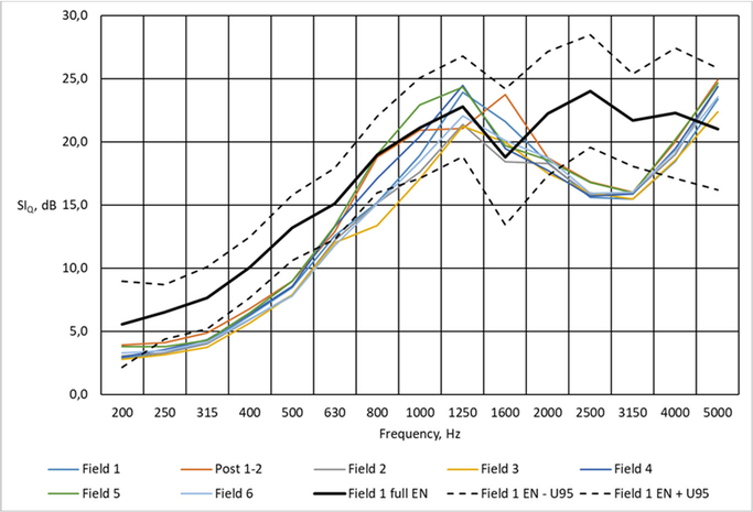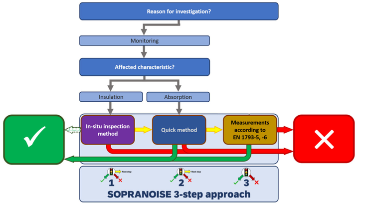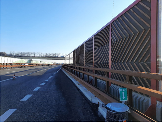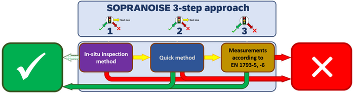 A A A Volume : 44 Part : 2 Characterizing noise barriers: SOPRANOISE final report and outcomes Jean-Pierre Clairbois 1 A-Tech / Acoustic Technologies Boulevard Jamar 19 box A 0.01, 1060 Brussels, Belgium Massimo Garai, Paolo Guidorzi 2 University of Bologna, DIN Department of Industrial Engineering Viale Risorgimento 2, 40136 Bologna, Italy Wolfram Bartolomaeus, Michael Chudalla, Fabio Strigari 3 Federal Highway Research Institute, Brüderstraße 53, 51427 Bergisch Gladbach, Germany Marco Conter, Andreas Fuchs 4 AIT Austrian Institute of Technology Giefinggasse 4, 1210 Vienna, Austrian Christophe Nicodeme 5 ERF - European Union Road Federation Rue Belliard20 Box 7, 1040 Brussels, Belgium ABSTRACT SOPRANOISE targets a three-step approach for assessing the in-situ intrinsic acoustic performance of road/railway noise barriers in regard to airborne sound insulation and sound reflection under direct sound field conditions. This approach goes from the in-situ inspections method (targeting at the acoustic effect in the far-field) to the standardized measuring methods EN 1793-5 and 6, with “quick and safe” measuring methods in between. Papers about SOPRANOISE have already been presented in 2020 and 2021 as progress reports. The research ended in March 2022 and the final outcomes are now presented. The main part of the pending work has been done within Work Package 4 (WP4). Herein, a new “quick and safe” method was designed and validated both in the lab and in situ. The new measuring equipment is portable, lightweight and uses a linear antenna; the measurement itself is fully automated and the results show a very good correlation with full EN 1793-5/-6 results. WP4 results are particularly successful and, together with the in-situ inspection, those methods are ready to be submitted to the relevant CEN/TC226/WG6 working group to draft a new framework on noise barriers assessment. All main reports are public available on the SOPRANOISE and CEDR webpages. 1 jpc@atech-acoustictechnologies.com 2 massimo.garai@unibo.it , paolo.guidorzi@unibo.it 3 bartolomaeus@bast.de , chudalla@bast.de , strigari@bast.de 4 marco.conter@ait.ac.at , andreas.fuchs@ait.ac.at 5 c.nicodeme@erf.beinter noise 21-24 AUGUST SCOTTISH EVENT CAMPUS GLASGOW 1. INTRODUCTIONInitiated by a call from the Conference of European Directors of Roads (CEDR) about “Noise and Nuisance”, the SOPRANOISE (Securing and Optimizing the Performance of Road traffic noise barriers with New methOds and In- Situ Evaluation) project started in December 2019 and ended in March 2022: its aim was to improve the assessment of the acoustic characteristics of noise barriers installed along roads and/or railways. Its first results have been presented as progress reports in 2020 [1] and in 2021 [2]. The pending tasks were Task 4.3 “Validation of quick methods by comparison with full methods in-situ” and Task 4.4 “Report on the new quick methods”; as well as Task 5.3 “Assessment of the intrinsic performance” and Task 5.5 “Guidelines and scientific report”. This paper is concentrated on the successful new quick method being now named the “SOPRA” method, and on its insertion within the SOPRANOISE 3-step approach that will soon be proposed to European standardization. This approach greatly improves and facilitates the assessment of the acoustic performances of noise barriers, from the simplest but inexpensive “in-situ inspections”, up to the most complex but accurate measurements according to “full EN 1793-5 [3] and 1793-6 [4]”. The new SOPRA method fills the gap in between. With this approach, it is now possible to establish relevant information throughout the whole lifecycle of noise barrier projects to improve their use. All the deliverables of the SOPRANOISE research are available on the website platform https://www.enbf.org/sopranoise/outcome/ .2. QUICK AND SAFE METHODS ALONGSIDE ROADSWork package 4 is managed by the University of Bologna (UNIBO). Task 4.1 and Task 4.2 have already been presented in [2]: therein, the new method was developed and tested in the laboratory. From now on, this method is named the “SOPRA” method. The next step was, still continuing to improve the method, to validate it alongside real highway sites: this has been done in Task 4.3.2.1. The SOPRA method The SOPRA measurement procedure is similar to that of the standards EN 1793-5 [3] and 1793-6 [4]. It integrates the necessary simplifications to apply those “full methods” in a much simpler, quick and much less expensive way with the least possible changes but keeping the fundamental principles of the EN standard methods. Main changes are the use of a vertical 6 microphones array (keeping a 0,4 m distance between two successive microphones) instead of the 9 microphones square array (0,4 by 0,4 m), and a completely redesigned measuring equipment that can widely simplify the in-situ measurements (see Figure 1).ny ba \ — UNIBO UNIBO _Figure 1: UNIBO (left) and AIT (right) equipment, loudspeaker units and microphone line arrays. 2.2. UNIBO measuring equipment The UNIBO equipment has been already presented in [2], it has the following characteristics: it is lightweight, portable, autonomous (battery operated), operates with wireless connections (see Figure 2), designed for both sound absorption and airborne sound insulation measurements, with a new control and processing unit which is easy and quick to use with interactive controls (see Figure 3), including environmental conditions recording (air, temperature, wind, etc.).Figure 2: UNIBO wireless system at the loudspeaker unit and at the control and processing unit.Figure 3: UNIBO new control & processing unit.2.3. AIT measuring equipment The AIT equipment respects the same needs/characteristics as the UNIBO one, being very similar but not identic: AIT control unit uses a Raspberry Pi 4, while the UNIBO equipment uses a Teensy 4.1 system / Arm Cortex-M7 processor; both setups use wireless conne