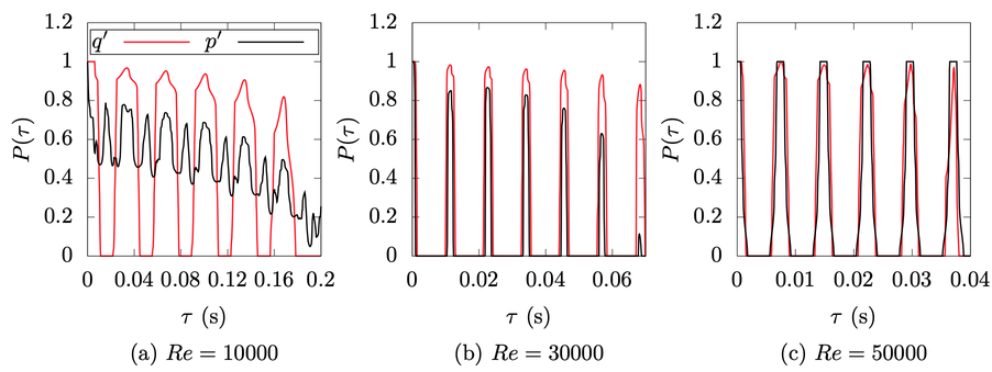 A A A Volume : 44 Part : 2 Nonlinear Dynamical Features of Vortex-Acoustic Lock-On in a Backward-Facing Step CombustorJoel Varun Vasanth 1Indian Institute of Technology, Madras Chennai 600036, IndiaSatyanarayanan Chakravarthy Indian Institute of Technology, Madras Chennai 600036, IndiaABSTRACT Unstable shear layers characteristic of step combustors display strong vortex shedding and play a dominant role in combustion instability. Past non-premixed flame experiments with Reynolds number (Re) as the bifurcation parameter showed that during instability, the frequency of acoustic oscillations locks-on to the natural vortex shedding mode for a range of Re. In the present work, we study the dynamical features of this type of lock-on. We employ a vortex model to bring out the nonlinearity in the flame response to vortical perturbations. This is coupled with a Galerkin model for the acoustic field. Regimes of aperiodic oscillations, low-amplitude lock-on and high-amplitude lock-on are predicted in agreement with experimental trends. A transition to instability during lock-on via a supercritical Hopf bifurcation is observed with an increase in limit cycle amplitudes. Synchronisation between the acoustic pressure and vortex-driven heat release perturbation is studied using recurrence analysis. The system transitions from asynchronous to phase synchronisation in the low-amplitude lock-on regime, characterised by an increasing degree of phase correlation. In the high-amplitude lock-on regime, a state of generalised synchronisation exists, where in addition to the phase, the amplitudes also show strong correlation.1. INTRODUCTIONFlow fields past flame-holding devices in industrial and aircraft burners consist of spatially developing shear layers with regions of reverse flow that are inherently hydrodynamically unstable [ 1 ]. The resulting vortex shedding is a major factor contributing to combustion instability [ 2 ].A unique feature of vortex-dominated combustion instability is vortex-acoustic lock-on. This has been experimentally observed by varying parameters of the flow such as the air flow Reynolds number, Re , in several flow configurations - a non-premixed backward-facing step (BFS) combustor [ 3 ], a partially premixed blu ff -body combustor [ 4 ] and recently a blu ff -body combustor1 joelvarunvasanth@gmail.coma slaty. inter.noise 21-24 AUGUST SCOTTISH EVENT CAMPUS O ¥, ? GLASGOW with syngas fuel mixtures [ 5 ]. In [ 3 ], it was observed that, at a certain Re in the non-premixed BFS combustor, the dominant mode switches from f a to f v and remains locked on to f v with further increase in Re, accompanied by a nonlinear rise in p ′ RMS amplitudes. Similar observations of lock-on were made in [ 4 ] by varying combustor length, both air and fuel flow rates, and injection and blu ff -body locations. Baraiya et al [ 5 ] observed lock-on with the shear layer mode and the third and sixth harmonic of the longitudinal duct acoustic modes.Modelling approaches must include a vortex-based flame response in addition to an acoustic flame response to incorporate the competing e ff ects of either mode during lock-on. Vortex kicked-oscillator models [ 6 ], [ 7 ], [ 8 ]. They assume an unsteady heat release rate proportional to the circulation of a growing vortex at the location of the step edge. However, a clear-cut lock-on regime has not been predicted since a framework for dynamical evolution of the flame to capture flame-vortex interactions is lacking.Many studies on lock-on in the context of externally forced thermoacoustic systems have recently been performed [ 9 ], [ 10 ], [ 11 ]. These studies also characterise the nonlinear dynamics of lock-on. General results show a lock-on as a synchronisation of the self-excited thermoacoustic oscillation with the forcing frequency as the forcing amplitude is increased, via a quasiperiodic route. Low order models to mimic such dynamics were proposed, such as the forced van der Pol oscillator [ 11 ] and the Landau-Stuart model [ 12 ]. However, the modes considered in the above studies were all acoustic in nature and contributions from hydrodynamically self-excited oscillations were not dealt with.The forcing of hydrodynamically self-excited modes were studied by [ 13 ] and [ 14 ] in unconfined jet di ff usion flames, where lock-in of the hydrodynamic mode to the forcing frequency was observed. These studies, including those above, involve a unidirectional coupling from the applied forcing to the acoustic or hydrodynamic modes. What is required from the point of view of lock-on, is a bidirectional coupling. Further, these studies included scenarios where the vortex shedding oscillation frequency locks-on to the acoustics and not the other way around. Thus, developing a model to capture this latter type of lock-on and study the dynamical characteristics is of interest to the current work.We develop individual submodels for each of the three participating processes – flame, vortex shedding and acoustics, to enable their simultaneous evolution in a fully three-way coupled manner. For the non-premixed flame, we extend the use of a two-dimensional thermo-di ff usive model in a BFS combustor to include the e ff ect of the vorticity field, relaxing the assumption of uniform flow. For the 2D flow, we perform a Schwartz-Christo ff el conformal mapping of the step geometry and represent the velocities using complex potentials. This overcomes the localised vortex burning assumption in kicked-oscillator models and introduces the Arrhenius-type and convective nonlinearities of the acoustic driving as imposed on the base flow. Along with the Galerkin method for the acoustics, the resulting coupled simulations are compared with experimental results. Synchronisation between the acoustic pressure and heat release perturbation is then studied using phase space reconstruction.2. MODELLING2.1. Flow Modelling We assume an two-dimensional, inviscid, laminar flow in a backward facing