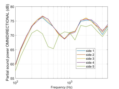 A A A Volume : 44 Part : 2 Improved methods for source characterization on trains Karl Bolin 1 , Stefan Jacob 2 and Mats Åbom 3 Dept. of Mechanics-The Marcus Wallenberg Laboratory KTH-Royal Inst. of Technology SE-100 44 StockholmABSTRACT One problem for railway noise predictions is to characterize noise from various auxiliary equipment, e.g., fans, compressors, transformers. The noise from such sources can be a dominating contribution under low-speed operation or stand still. To better handle this problem the EU-project TRANSIT investigates improved methods for acoustic source characterization. As a starting point it is assumed that an acoustic source is enclosed by a control surface. The surface is sub-divided into smaller areas and each area is assumed to act as an acoustic one-port coupled to all the other areas. The properties of each area can then be described by its volume flow and internal impedance. The resulting acoustic pressure at a receiving point, can finally be expressed as a product of the source volume flows and a matrix representing the acoustic installation effects (“source+radiation impedances”). To simplify the method one can assume uncorrelated sources and use an ISO procedure for sound power to determine the volume flows. The acoustic installation effects can be obtained using a monopole point source to measure or calculate the pressure at selected receiving positions. 1. INTRODUCTIONThis paper will summarize work done in the EU-project TRANSIT ( Contract No. 881771 ) concerning a source characterization method first proposed by KTH in the ACOUTRAIN project [1,2].2. THEORY2.1. The complete model The starting point is the assumption that we have a linear and time-invariant acoustic source or system. In the frequency domain such a system can be described as an acoustic multi-port or black- box model [3]:, s s = + y K x y (1)1 kbolin@kth.se 2 sjacob@kth.se 3 matsabom@kth.se where x , y are column state vectors containing complex (Fourier) amplitudes at a certain frequency, K is a matrix relating in- and output and the sub-script s denotes the source strength. For air-borne sound which is the main interest here one can select acoustic pressure ( p ) and volume flow ( Q ) as the state variables defining the state vectors. This lead either to an impedance ( Z ) or mobility ( M ) type of source model:, s s = − p p Z Q (2) . s s = − Q Q M p (3) Here the usual convention that the volume flow is positive out from the source regions is assumed. One can also note that: . Of course, in principle Eqs. (2) and (3) are equivalent and one can use either one. But one important difference is that Eq. (2) will express a source as a set of “dipoles”, while Eq. (3) corresponds to a set of “monopoles”. This difference is important in practice since when applying these models, the transmission to various receiving points must be known. To measure these transmissions can involve cases where it is much easier to apply reciprocity, i.e., interchange source and receiver. This is not a problem with the mobility formulation since then p and Q are used. Of course, assuming one has access to a calibrated monopole source, e.g., as described by Ref. [4]. But for the impedance formulation one needs to use reciprocity for a “dipole”, which implies to measure acoustic velocity. This is possible but certainly more difficult and sensitive to various measurement errors. Despite this drawback the impedance approach has been studied and proposed for instance by Pavic [5]. Assume now a source producing air-borne sound which can be enclosed by a reference surface. This surface is arbitrary but often chosen as the smallest volume that entirely enclose the source in question, see Figure 1. The surface of the reference surface can be subdivided into smaller patches (n=1,2,……) each corresponding to a certain acoustic pressure (average over the patch) and volume flow. Together these pressures and volume flows can be used to define the source multi-port on the reference surface as described by Eqs. (2) and (3). Of course, a detailed accuracy of the model at each frequency would require that the patches are smaller than a wavelength. However, assuming one is mainly interested in frequency band averages (say 1/3-oct) and to predict dBA-values, then a set of patches not resolving the wavelength can be sufficient. This statement can be considered to already be partly validated by the work done in the ACOUTRAIN project [1,2].1 s s − = Z MFigure 1: Illustration of the source multi-port model.For each patch one can associate an impedance Z mn , i.e., relating the volume flow to the acoustic pressure received at any position m. For points on the reference surface Z mn corresponds to the radiation impedance Z mn,r or Z r . This can be used to rewrite Eq. (3) in the form: ( )1 s s r s r s − = − = + Q Q M Z Q Q E M Z Q ,where E is the unit matrix. From knowledge of the volume flows on the reference surface Q one can finally compute the pressure at any receiving point using the transfer impedance Z mn,t or Z t :( )1 t s r s − = + p Z E M Z Q .This is the final equation which simply can be written as:s = p GQ , (4)where G mathematically can be seen as the Greens-function matrix for the source under study. This matrix contains the complete information about the source ( M s ) and how it couples to the surrounding environment ( Z r & Z t ). Note that the source strengths Q s represent ideal monopoles with infinite internal impedance i.e., they are not affected by the installation.The strategy to apply this model to characterize a source can be summarized in the following steps:i. Decide the number ( N ) of patches or sub-surfaces (monopoles) to use.ii. Test the source in a “free field” environment and start by determining G ff . N.B. This can be done by a reciprocal procedure and the number of reception points ( M ) can also be larger than N .iii. The monopole source strengths are then given b