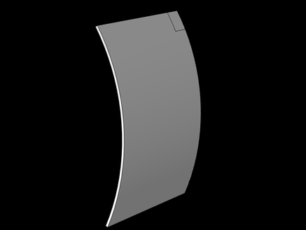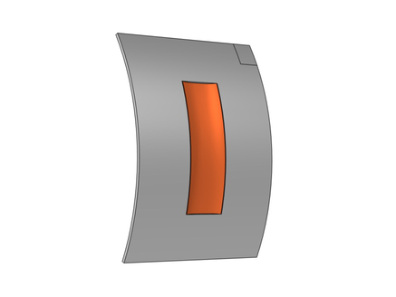 A A A Volume : 44 Part : 2 Acoustic Black holes in Curved PlatesK. Hook, J. Cheer 1 and S. Daley Institute of Sound and Vibration Research, University of Southampton, University Rd, Highfield, Southampton, UK, SO17 1BJ.ABSTRACT Acoustic Black Holes (ABHs) have been shown to produce significant vibration damping in both beams and flat plates. However, it is interesting to determine how more complex structures with singularly curved surfaces are damped by the addition of ABHs. Therefore, this paper presents an investigation into three di ff erent ABH designs that can be implemented into a curved plate. The performance of each ABH design is compared in terms of the global structural response of the curved plate.1. INTRODUCTIONAcoustic black holes can be used to e ff ectively damp structures such as beams and plates. Currently, investigations into ABHs integrated into flat plates have included designs such as embedded circular ABHs [1–13] and surface attached ABH dampers [14–19]. In curved structures, ABHs have been investigated as part of cylindrical shells [20, 21], circular beams [22] and aircraft panels [23, 24]. However, further research is needed to determine how di ff erent ABH designs compare in terms of performance and thus which design is the most suitable for implementation into singly curved plates. Therefore, this paper presents an investigation into three di ff erent designs of ABH that can be embedded into a singly curved panel. Circular ABHs have been compared to annular ABHs and longitudinal ABHs. To carry out this investigation, a Finite Element (FE) model of a curved plate has been created to test each ABH design. The total kinetic energy of the plate has been calculated and compared to the total kinetic energy of the plate with each of the embedded ABH designs. The paper is structured as follows. Section 2 contains a description of the FE model used in this investigation and includes a mesh convergence study. Section 3 contains the results that have been calculated using the FE model and is accompanied with a discussion of the findings. Finally, the conclusions of this investigation are presented in Section 4.1 j.cheer@soton.ac.uka slaty. inter.noise 21-24 AUGUST SCOTTISH EVENT CAMPUS O ¥, ? GLASGOW 2. MODEL DESCRIPTIONIn this investigation, an FE model has been used to investigate the di ff erent ABH designs that can be applied to a curved plate. The base plate design consists of a constant thickness plate with a curvature in one dimension with a radius of 0.5 m. The dimensions of the model are listed in Table 1 and a picture of the completed model is shown in Figure 1. The plate has been designed to match the sizeTable 1: Dimensions of the pipes used in the experimental setup.Variable Valuel plate 475 mmw plate 375 mmh plate 6 mmr plate 500 mmr abh 50 mml abh 275 mmh min 0.5 mm50 mmµ 3∆∆+* !"#$%& !"#$%' !"#$%ℎ !"#$%Figure 1: A diagram of the FE model, showing the curved plate structure.of the plate used in [27], however in this investigation curvature has been introduced. A total force of 1 N has been applied near one corner of the plate, directed towards the origin of the curvature radius. The boundary conditions of the plate have been set to free on all sides. Three di ff erent ABH designs have been integrated into the plate, resulting in a total of four models including the constant thickness plate. To implement these ABHs, two di ff erent power law profiles are required. The first is the standard ABH profile, defined as! µ + h min , (1)h flat ( r ) = ( h plate − h min ) rr abhwhich runs along the flat cross-section of the plate. The second ABH profile is slightly more complex, as the curvature of the plate must be taken into account in order to preserve the power law profile along the curved cross-section. The modified profile is defined as! µ + h minh curve ( r ) = ( h plate − h min ) r plate r! cos( r ) . (2)r abhThe radius of each ABH has been set to 5 cm, equating to an ABH cut-on frequency of approximately 830 Hz, which has been calculated using the method outlined in [25, 26]. The first ABH design is a traditional circular embedded ABH, which has been defined by lofting the power law profile given in Equation 1 90 degrees to the modified power law profile given in Equation 2, via an arc along the surface of the curved plate. A mirroring function has then been used to create the other 270 degrees of the ABH. The finalised model is shown in Figure 2(a) where the ABH is located in the centre of the plate. The second ABH design is a longitudinal ABH, which has been implemented by extending the power law profile given in Equation 2 along the length of the plate, perpendicular to the curvature. The ABH is located in the centre of the plate and has a total length of 275 mm, which has been chosen so that the ends of the ABH are at least a distance of r abh away from the edges of the plate. The finalised model is shown in Figure 2(b). The third ABH design is an annular ABH, which has been implemented by rotating the power law profile given in Equation 1 around the curvature of the plate to give a total ABH length of 275 mm. The length of the annular ABH has been kept the same as the length of the longitudinal ABH so that the two are comparable. The finalised model is shown in Figure 2(c). For each ABH plate configuration, a thin damping layer with a thickness of 0.5 mm has been attached to the surface of the ABH. This has been highlighted in orange in Figure 2. The damping material has been modelled based on Henley’s yellow compound [28], which has been used experimentally in [27,29].* #&'& #&'* #&'& #&'* #&'(a)(b)(c)Figure 2: The curved plate with an embedded (a) circular ABH, (b) longitudinal ABH and (c) annular ABH. A damping layer, highlighted in orange, has been attached to the surface of each ABH.Each of the four plate configurations have been meshed using quadratic mesh elements and a convergence study has been carried out where the total kin