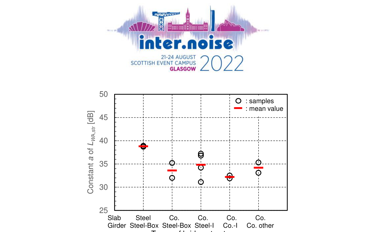A A A Volume : 44 Part : 2 Research on Power Levels of Structure-Borne Noise of Viaducts Roads KIMIKAZU IKEYA 1 NEXCO Research Institute Japan 1-4-1 Tadao Machida City Tokyo Japan TATSUAKI MORI 2 NEXCO Research Institute Japan 1-4-1 Tadao Machida City Tokyo Japan TOMOYUKI ITIKI 3 NEWS Environmental Design Inc. 2-2-22 Mizukidori Hyogo-ku Kobe City Hyogo Japan AKINORI FUKUSHIMA 4 NEWS Environmental Design Inc. 2-2-22 Mizukidori Hyogo-ku Kobe City Hyogo JapanABSTRACT The authors studied the sound power levels of structure-borne noise of viaducts generated when tires of running vehicles excite the road surface. The Acoustical Society of Japan’s Research Committee on Road Traffic Noise describes the power levels of structure-borne noise are influenced by viaduct type, running speed, and vehicle weight. This paper reports on the results of organizing the power levels per running speed and number of axles, measured by grouping large vehicles by their number of axles. The study confirmed that power levels tend to larger as the speed and number of axles increase. Based on this result, the power-level setting equation applied in the prediction method of road traffic noise was revised.1. INTRODUCTIONRoad traffic noise of viaduct roads consists of two kinds of noise: running vehicle noise and structure- borne noise. Low-rise houses along viaduct roads are affected more by structure-borne noise, as run- ning vehicle noise radiated into the air is suppressed by noise barriers and other such devices. For1 k.ikeya.ab@ri-nexco.co.jp2 mori.ta@ri-nexco.co.jp3 itki-new@wonder.ocn.ne.jp4 fuku-new@wonder.ocn.ne.jpworm 2022 that reason, it is important to accurately predict structure-borne noise to maintain a satisfactory noise- controlled environment along roads.Japan’s road traffic noise prediction model, ASJ RTN-Model 2018 [Reference 1], gives calcula- tion equations for the sound power level and propagation of structure-borne noise caused by large vehicles, grouping viaduct roads into 5 categories. In general, as locations suited for surveys are lim- ited, there is not much sound power level data on structure-borne noise compared with that on running vehicle noise. That is why ASJ RTN-Model 2018 grouped data on structure-borne noise measured at measurement sites per viaduct category and created a power-level equation from the distribution for each viaduct category. Thus, contribution is greater for sites where there are more data. Data from test runs are also included.The authors have continuously measured structure-borne noise on actual viaduct roads to accumu- late the amount of data on its power level. This paper analyzes the actual measurements taken, rean- alyzes structure-borne noise data of ASJ RTN-Model 2018 and reports on revising the power-level equation.2. STRUCTURE-BORNE NOISE MODEL IN ASJ RTN-MODEL 2018 [1]2.1. Types of Viaduct Road and Vehicle Categories Table 1 shows the classification of viaduct road types adopted in ASJ RTN-Model 2018. The viaducts are first categorized into steel bridges and concrete bridges, and then the slab and girder are further grouped into concrete and steel, then the girder is separated into I-girder and box girder. Structure- borne noise power level equations with an assumed omnidirectional point sound source are given for the 5 viaduct categories. The subject vehicles are heavy vehicles described in Table 2.Table 1. Types of viaduct road in ASJ RTN-Model 2018. Type Steel Viaduct Concrete Viaduct Slab Steel Concrete ConcreteOther than I-girderGirder structureSteel boxgirder Steel I-girder I-girderBox girder Void slabgirderIllustra-tionTable 2. Vehicle categories [1] Category CharacteristicsVehicles with overall length exceeding 4.7 m excluding large-sized ve- hicles (most vehicles in this category have 2 axles). Medium-sized buses with capacities from 11 to 29 passengers Large- sized vehi-Medium- sized vehi-Heavyclesvehi-Vehicles with gross vehicle weight of over 8 t or a maximum authorized payload of over 5 t (most vehicles in this category have 3 or mor e a x les). Large-sized buses with a capacity of 30 or more passengersclesclesworm 2022 2.2 Basic Propagation Model The ASJ RTN-Model 2018 calculates the unit pattern of the A-weighted sound pressure level of structure-borne noise using the following equation by setting a hypothetical lane in the center of the lanes at the viaduct underside at girder height, as shown in Figure 1, and assuming that an omnidi- rectional point sound source with a structure-borne noise sound power level is travelling.worm 2022Figure 1. Arrangement of hypothetical point sources for structure-borne noise in ASJ RTN-Model.L Aeq of structure-borne noise is calculated by integrating the unit pattern determined by equation (1), considering the hourly traffic volume of large vehicles.an Center oflane Cem of ane SotoA,str A,str 10 dif 8 20log W L L r ΔL (1)A,str str 10 30log W L a V (2)Where, L A,str is the A-weighted sound pressure level of structure-borne noise (dB), L W A,str is the sound power level of structure-borne noise (dB), r is the distance from the hypothetical point sound source to prediction point (m), L dif is the diffraction correction (dB) for structure-borne noise, a str is the constant of structure-borne noise sound power level equation (dB) per viaduct type, V is the running speed (km/h). 3. FIELD MEASUREMENTS3.1 Noise Measurements For taking the field measurements, 3 sites were selected on continuous multi-span viaduct alone road sections of expressways where the daily traffic count is small at about 10,000 units. The viaducts at all 3 sites were of a concrete slab steel girder structure with two lanes [2]. Fields, paddy fields and orchards were along the roads, and the residual noise at the measurement points was between 30 and 40 dB. As shown in Figure 2, measurement point R str for structure-borne noise was placed at 1.2 m on the ground directly beneath the viaduct balustrade, and measurement point R W for runnin